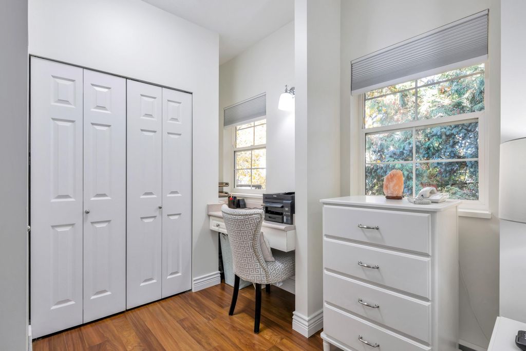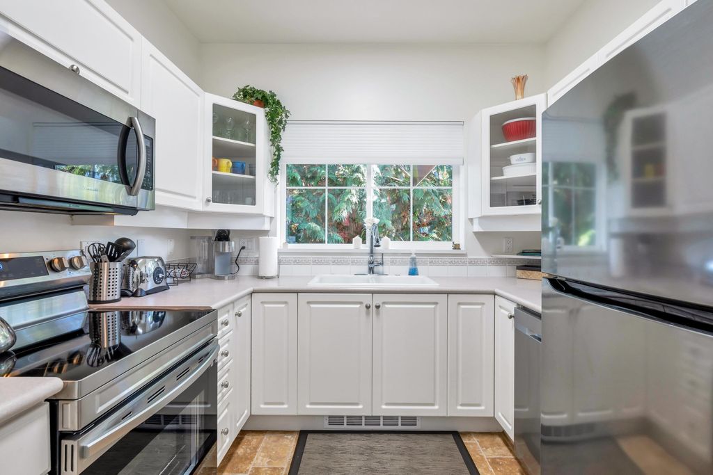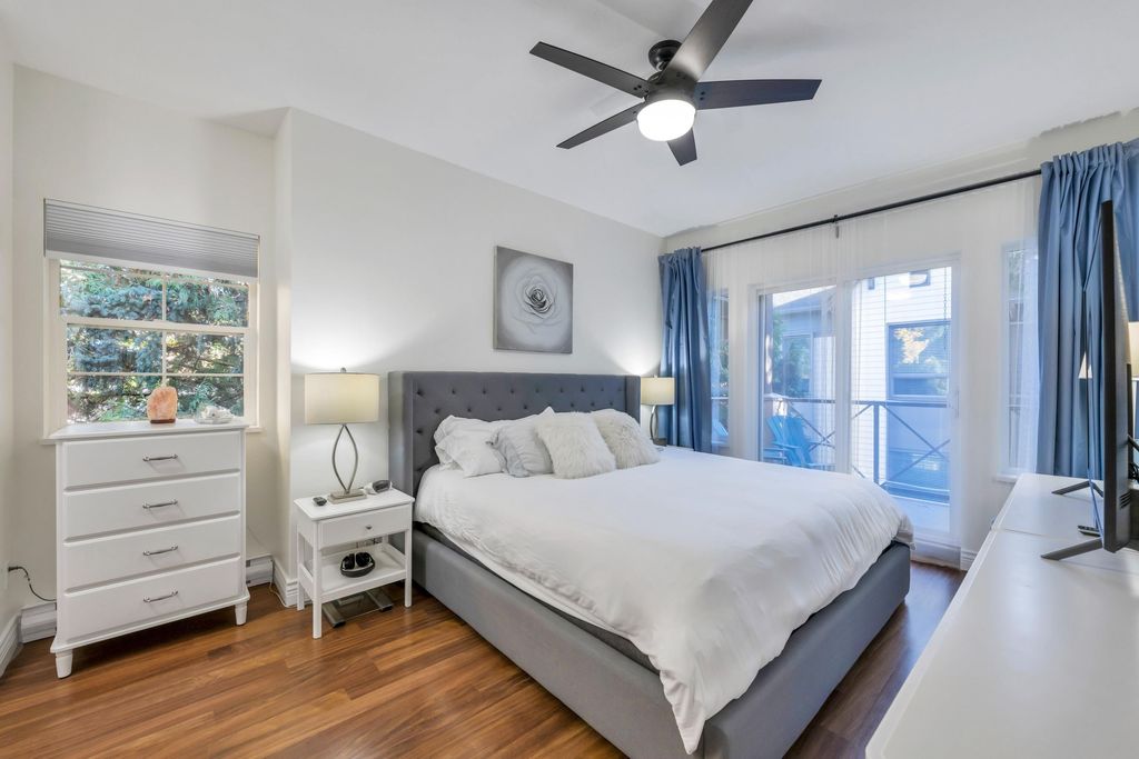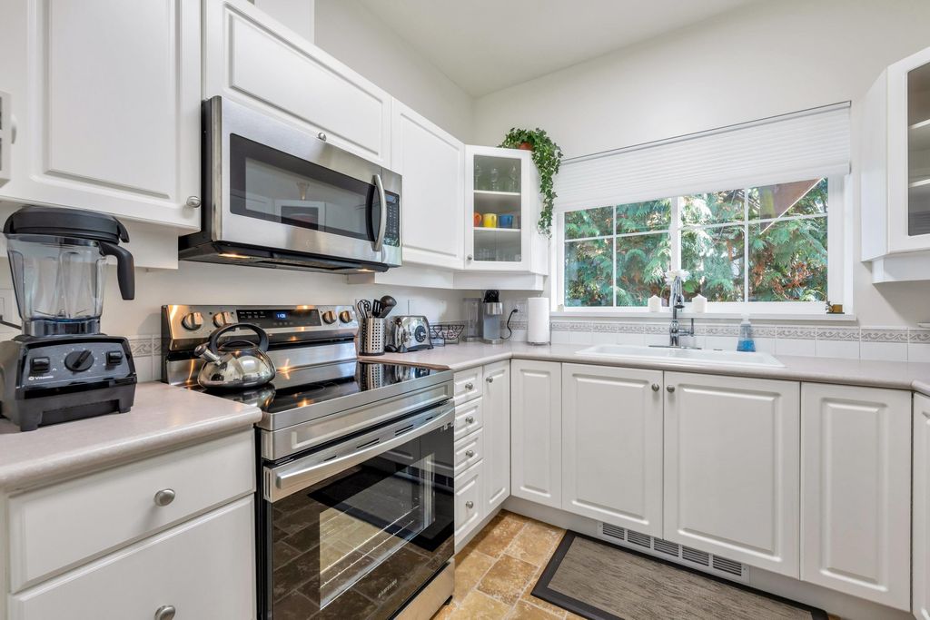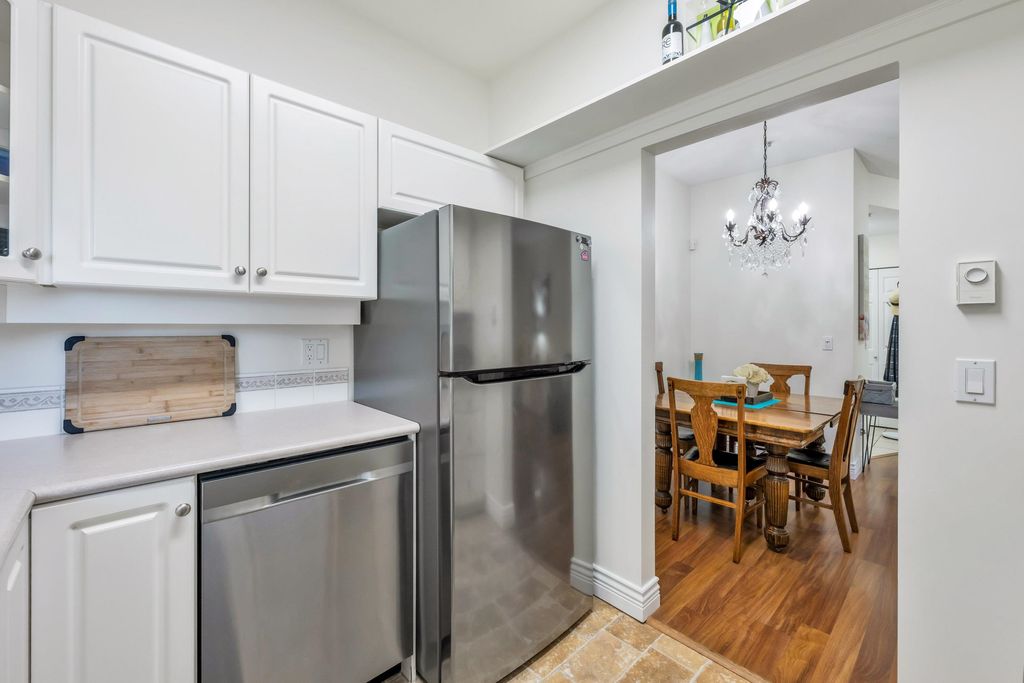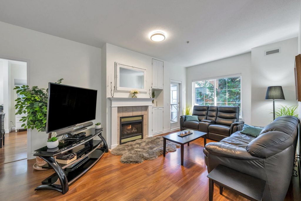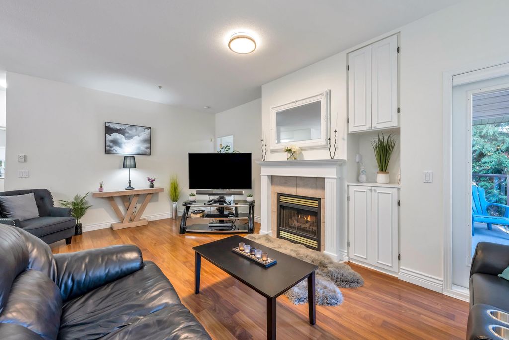 Welcome home! This top floor, corner unit in Adlington Court is the one you have been waiting for. Meticulously maintained with updated flooring, 9' ceilings and an awesome floor plan. The spacious kitchen with updated stainless appliances features a lovely large window above the sink overlooking greenery to the east. The living room with cozy gas fireplace and cute built-ins is perfect for entertaining with access to the covered patio with BBQ hookup and open to the spacious dining area. Enjoy a bright, spacious primary bedroom w/ tons of closet space and access to the patio. Well run strata, repiping recently done here too. This is a fabulous home in the perfect location and close to everything - you will LOVE living here! Book you private viewing today!