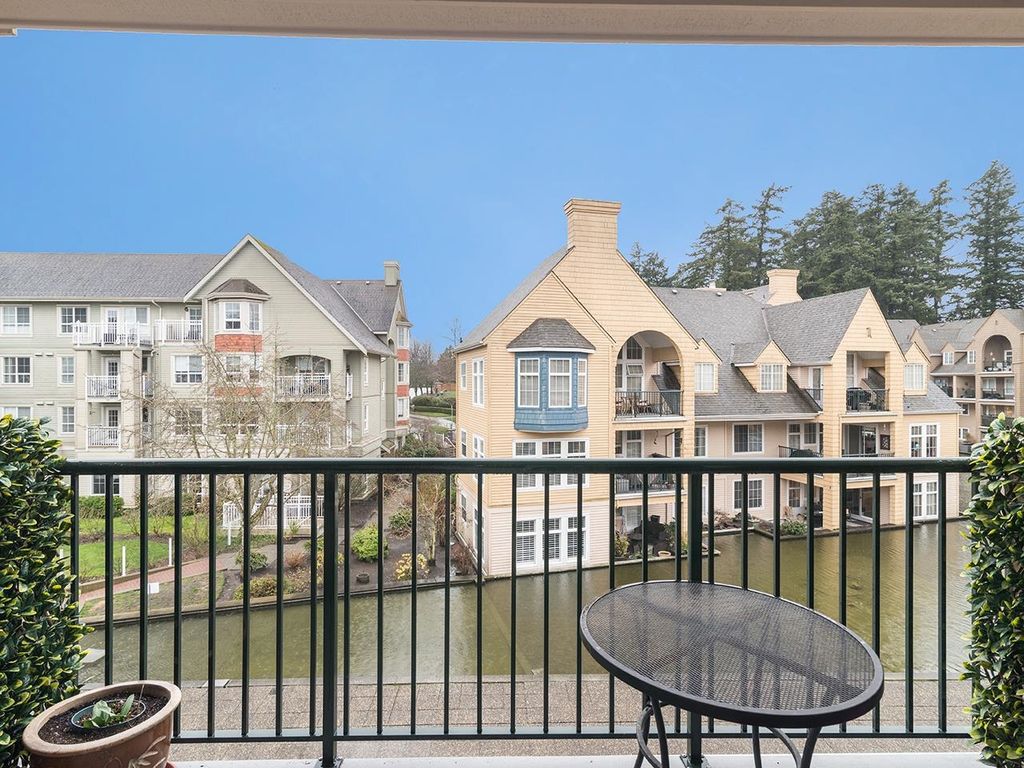 Windsor Woods! Spacious penthouse home has the sought-after lagoon and waterfall view, with a quiet location & top floor! Updated with engineered hardwood flooring and freshly painted, you can move right in. You’ll love the bright 2nd Bedroom/Den space with floor to ceiling windows and waterfall view. Primary suite features a bath with soaker tub & walk-in closet. The living room features a cozy gas fireplace and slider to the private balcony and view. Tidy open kitchen with eating bar and in suite laundry. The walk score doesn’t get any better than this… steps to the Tsawwassen Town Centre mall, with over 40 shops and services including Thrifty Foods, cafes and restaurants, clothing & gift boutiques, library and health services. A bike ride to several beaches and parks & Point Roberts.