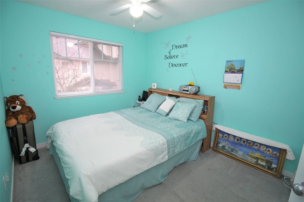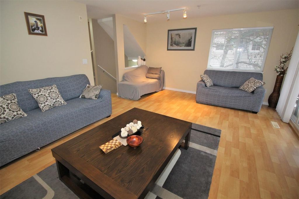 Welcome to Palette On The Park! This Corner DOUBLE Garage Unit (1885 sq ft) offers 4 beds and 3 baths. Main Floor features a big living room with a cozy fireplace, dining, family room, kitchen with island, and eating area - with access to the private backyard. Sundeck off the main dining room, and patio off the kitchen. Great outdoor space with patio and fenced yard back with side entry- perfect for kids or pets. Upstairs 3 beds, 2 full baths, and laundry. Downstairs offers huge 4th bedroom with window (no closet) and half bathroom OR use as Rec Room. Family-friendly complex with clubhouse and lots of visitor parking. Close to Tamanawis Park with walking trails, J.T. Brown Elem, Tamanawis Sec. School and Kwantlen University. Close to transit. Call today for a private showing!