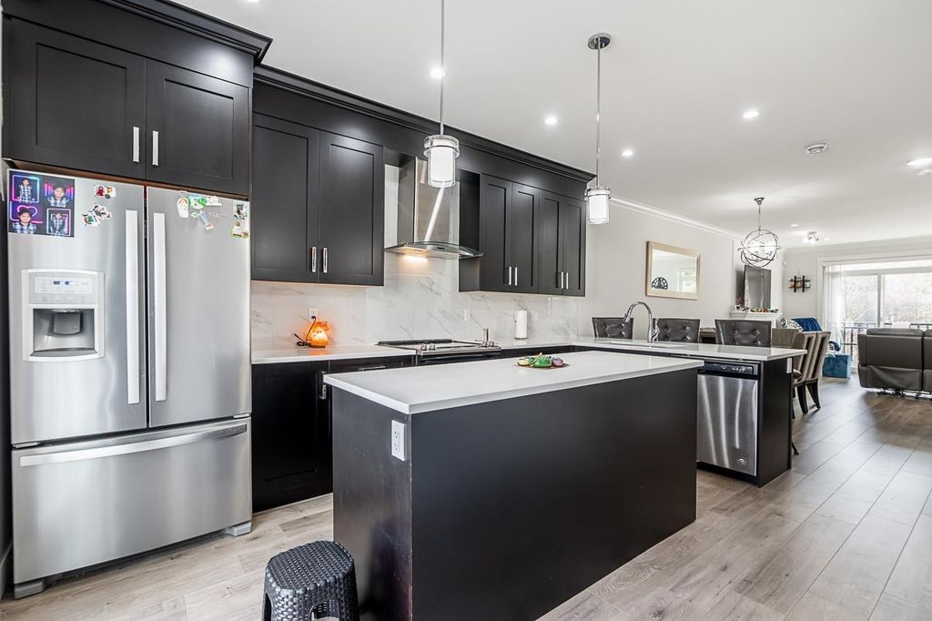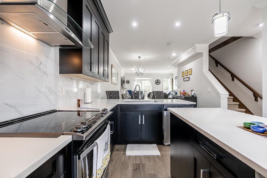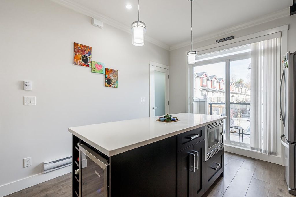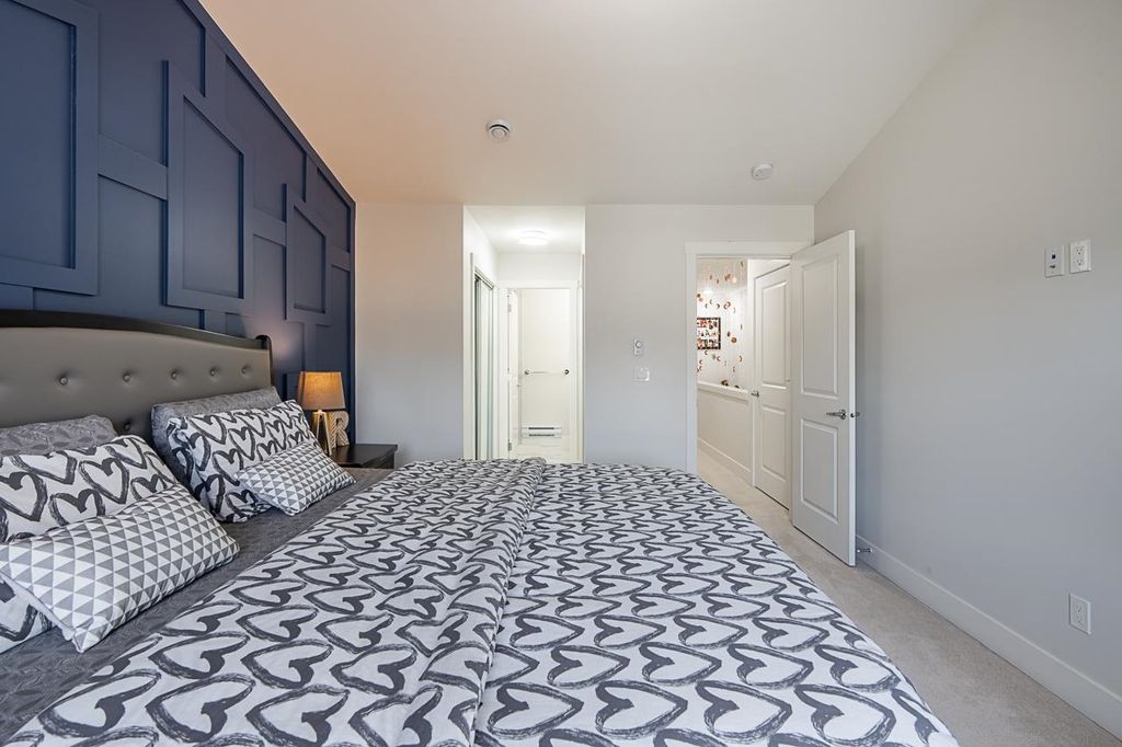 FINALLY a home which You can really call HOME!! This 2 year old beautifully kept 4 Bed, 4 Bath townhome with 2 private parking spots comes with quality finishes, feature walls in 2 bedrooms, lots of storage, and it still has most of the 2-5-10 warranty. Complex has a Club house, park and low strata fee. The open layout spacious kitchen has quartz countertops, SS appliances, closed pantry and a bar fridge. The lower floor with separate entry has one bedroom and full washroom with stand-in shower and is currently rented for $750. The backyard is great for relaxation and the rear deck is BBQ ready. The unit is at the back end of the complex, away from noise Green belt behind offers privacy and calm retreat. Open House Apr 10 2-4pm.