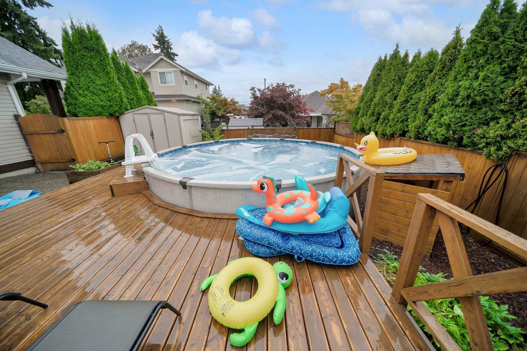 Centrally located to all the ammenities you could ever want, and soon, the new Hillcrest Skytrain Station only 2 blocks away.... close enough to walk safely to and from, along a well lit 184th St. Perfect for commuters and students. This beautifully renovated home in a pet friendly neighbourhood has all the features you want, including a large upgraded kitchen, perfect for the family chef. Lots of parking and storage and the legal 3-BD suite has it's own laundry. The roof was inspected 4 years ago and is in excellent condition. Large fenced back yard, complete with 18' above ground pool and hot tub. Current tennants are expecting to move Feb. 1st., and local rents in the area range between $2200 and $2600/month. OPEN HOUSE Schedule JAN. 2nd, 4-8pm JAN. 3rd and 4th, 10am-2pm.