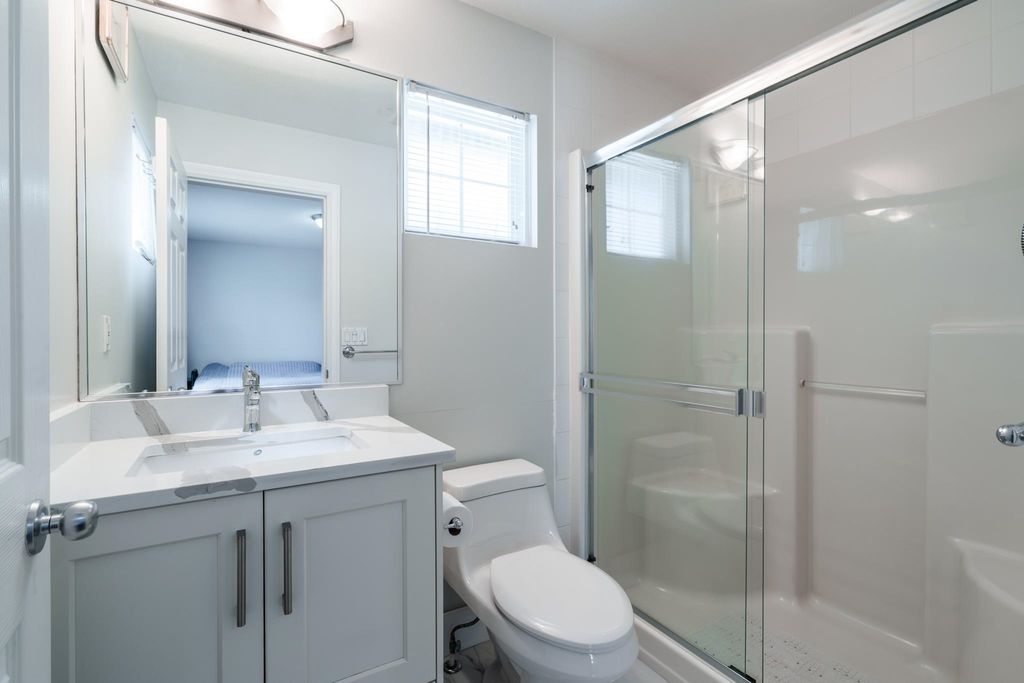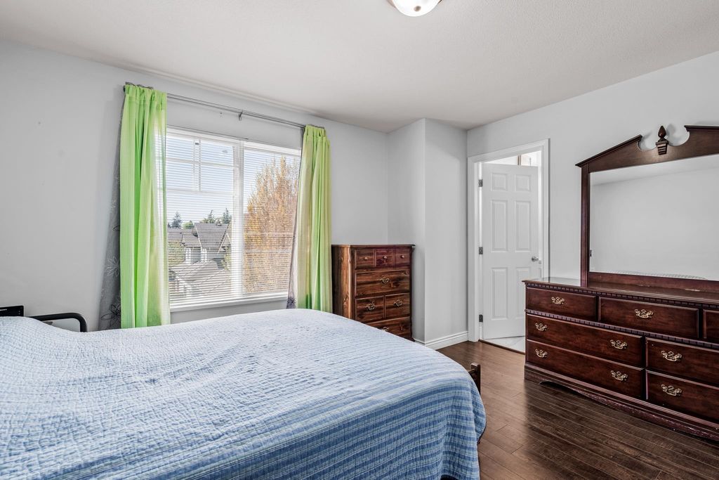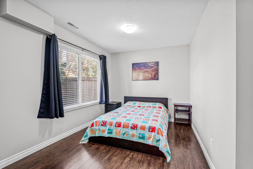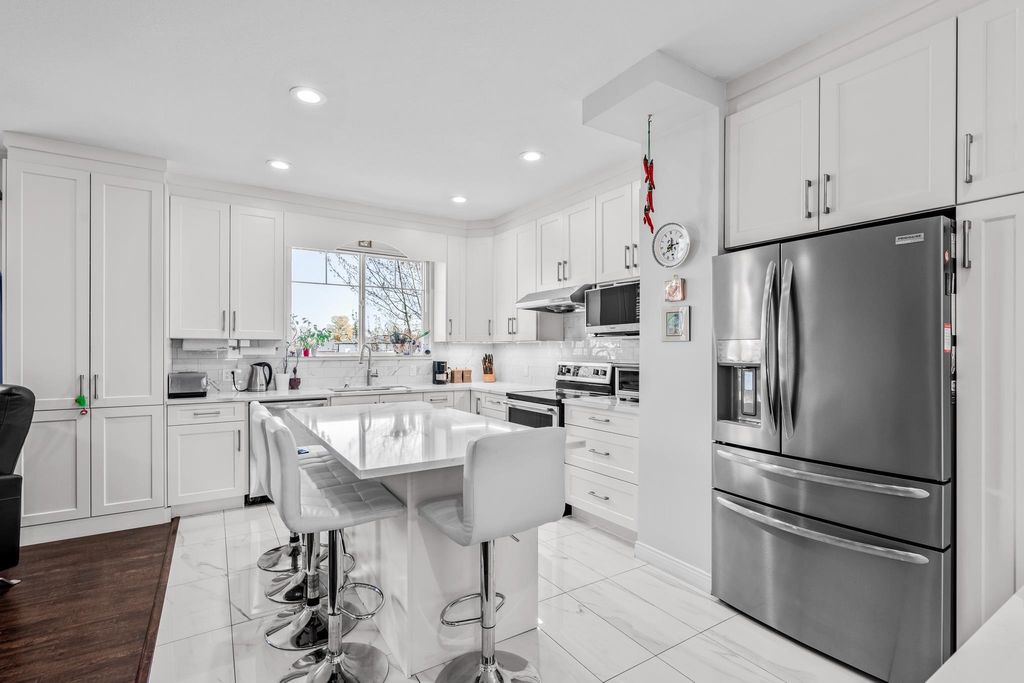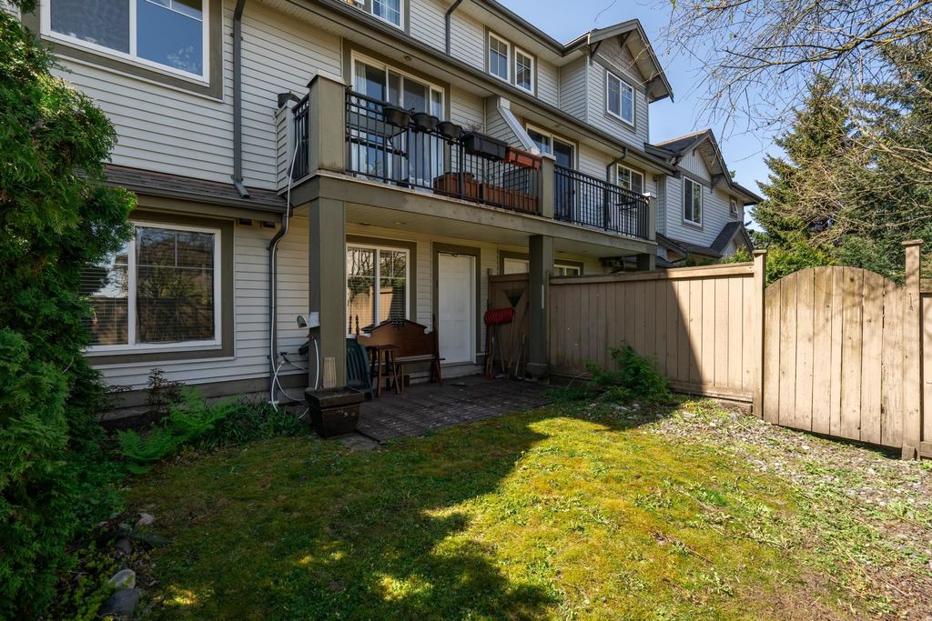 Welcome to this 4 bedroom + 4 bathroom townhome at Sequoia Green ! This oversized townhouse boasts a house sized feel, w/ double side by side garage + parking pad for 1 car. The renovated kitchen features new cabinets, stainless steel appliances, oversized island & quartz counter tops. The main floor has a powder room & a balcony which is accessible off of the kitchen & family room. Upstairs features the large primary bedroom w/ renovated ensuite + walk-in closet. Two additional large bedrooms along w/ another renovated bathroom are on the top level. The oversized 4th bedroom on the lower floor has an ensuite renovated bathroom + access to the large backyard. Enjoy low monthly strata fees of $315.26 ! Sequoia Green is in a conveniently located, close to transit, shops & restaurants.