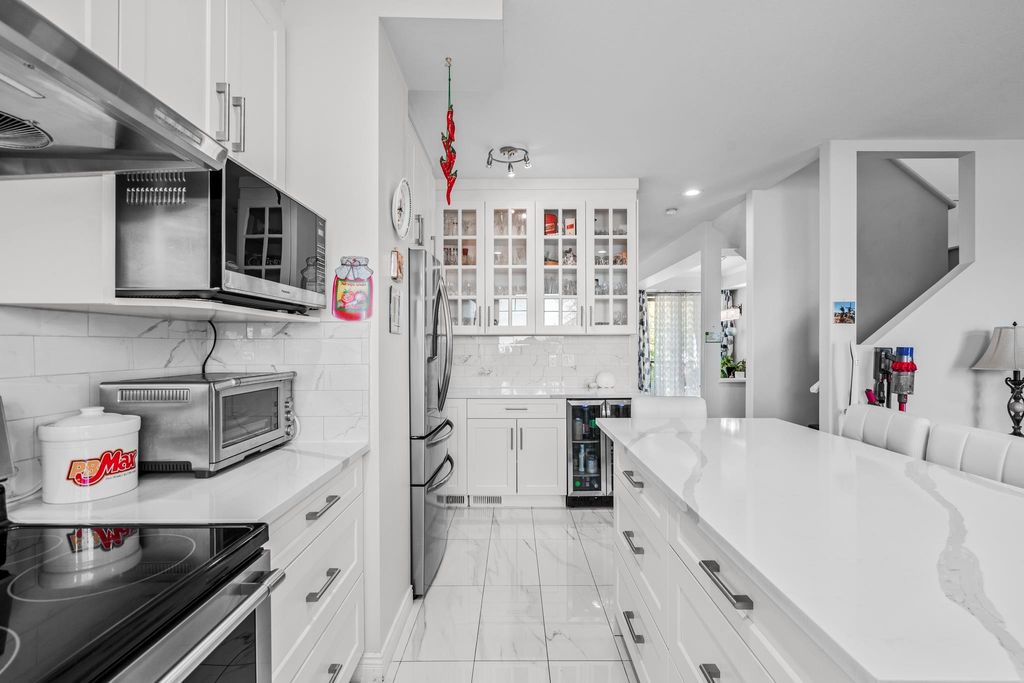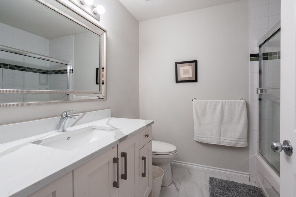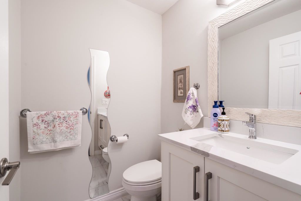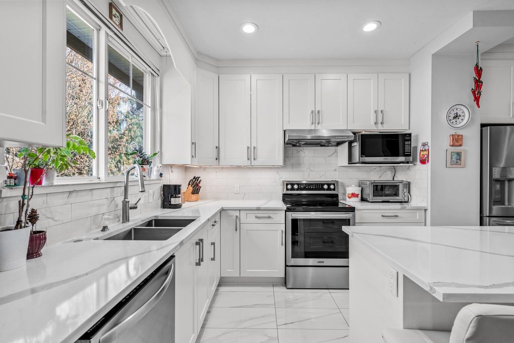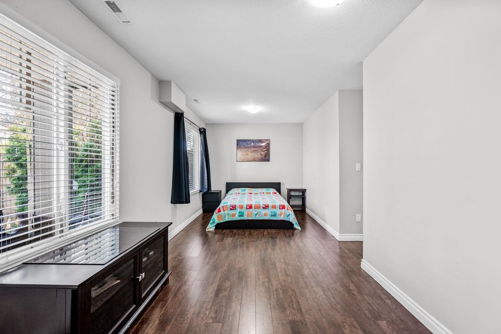 Welcome to this 4 bedroom + 4 bathroom townhome at Sequoia Green ! This oversized townhouse boasts a house sized feel, w/ double side by side garage + parking pad for 1 car. The renovated kitchen features new cabinets, stainless steel appliances, oversized island & quartz counter tops. The main floor has a powder room & a balcony which is accessible off of the kitchen & family room. Upstairs features the large primary bedroom w/ renovated ensuite + walk-in closet. Two additional large bedrooms along w/ another renovated bathroom are on the top level. The oversized 4th bedroom on the lower floor has an ensuite renovated bathroom + access to the large backyard. Enjoy low monthly strata fees of $315.26 ! Sequoia Green is in a conveniently located, close to transit, shops & restaurants.