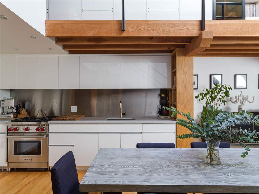 China Creek Lofts- Spectacular 1256SF, two-level loft townhome has been meticulously renovated to include spa bathroom, chef's kitchen, laundry/storage room and music room/flex space. Nestled in the heart of Mount Pleasant (between Main and Commercial), this gorgeous light-flooded loft with soaring 16ft ceilings, solid maple hardwood floors, custom railings & open concept living is a must-see! The gourmet kitchen offers Subzero fridge plus wine fridge, Wolf range with custom cabinetry & lighting. Custom built-in closets, bookshelves and storage throughout this home. The details are endless on this one. Live/work designation with parking & storage included, pets/rentals allowed. Showing by private appointment.