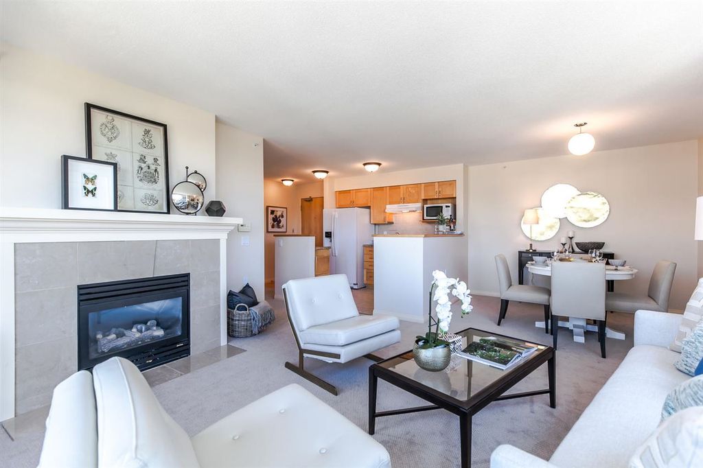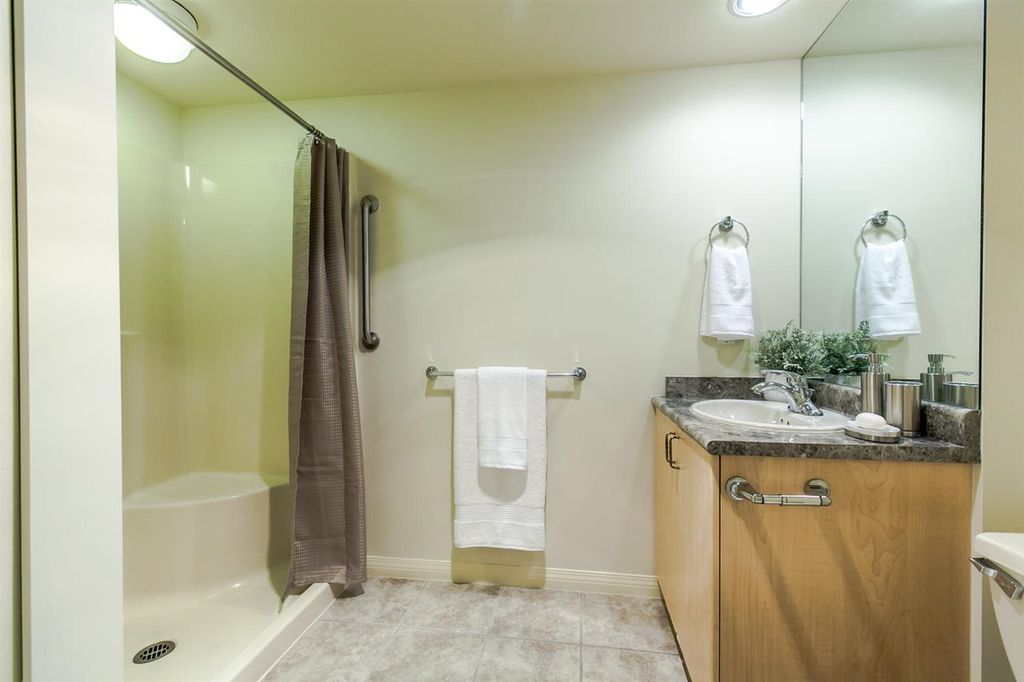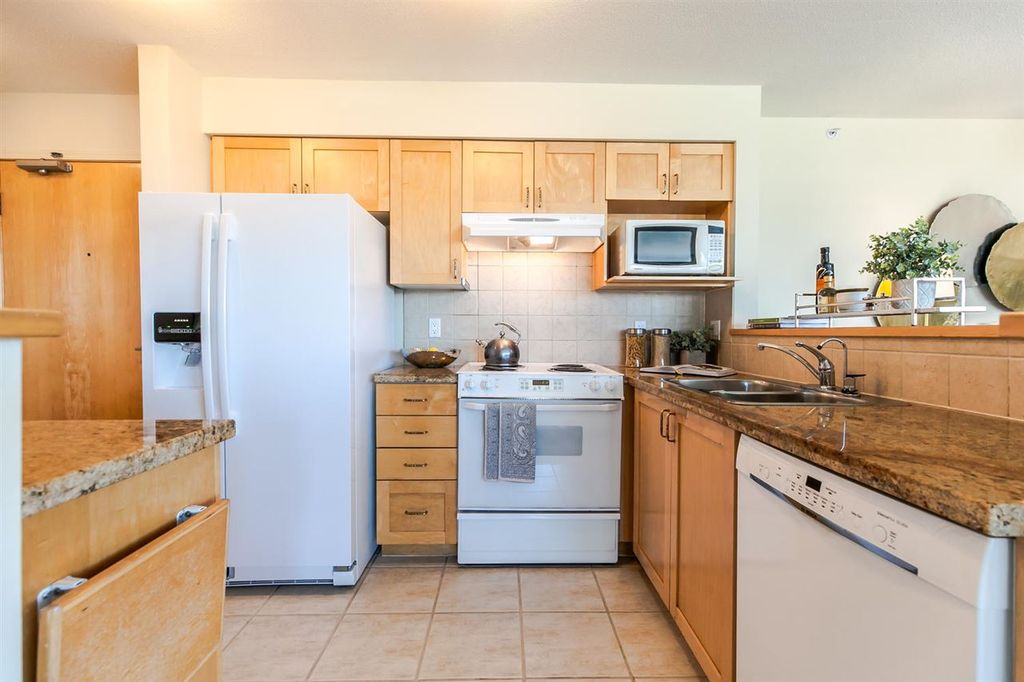 Dramatic north-facing view, sweeping from English Bay to False Creek. This is the sought-after side of the prestigious Terraces on 7th, a lively seniors residence (50+). New carpet, fresh paint, new fridge and dishwasher, along with maple cabinets and granite counter tops make this roomy suite your perfect home. Bonus: walk-in tub and extra-large storage locker. Mandatory service package for residents ($1,057/month for one, $1,502 for two) includes: weekly housekeeping, 10 meals in the dining room, entertainment, fitness centre, library, theatre, emergency response and the all-day complementary coffee shop. Need to step out? South Granville shops and restaurants, Granville Island and the waterfront walkway are minutes away.