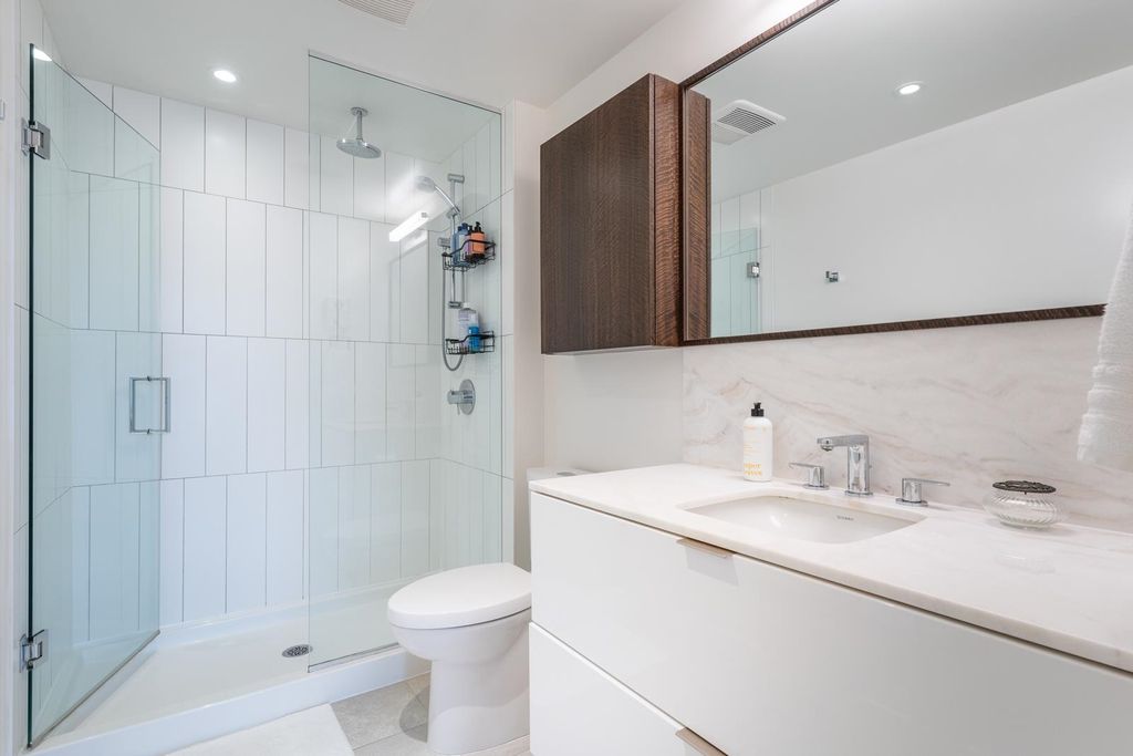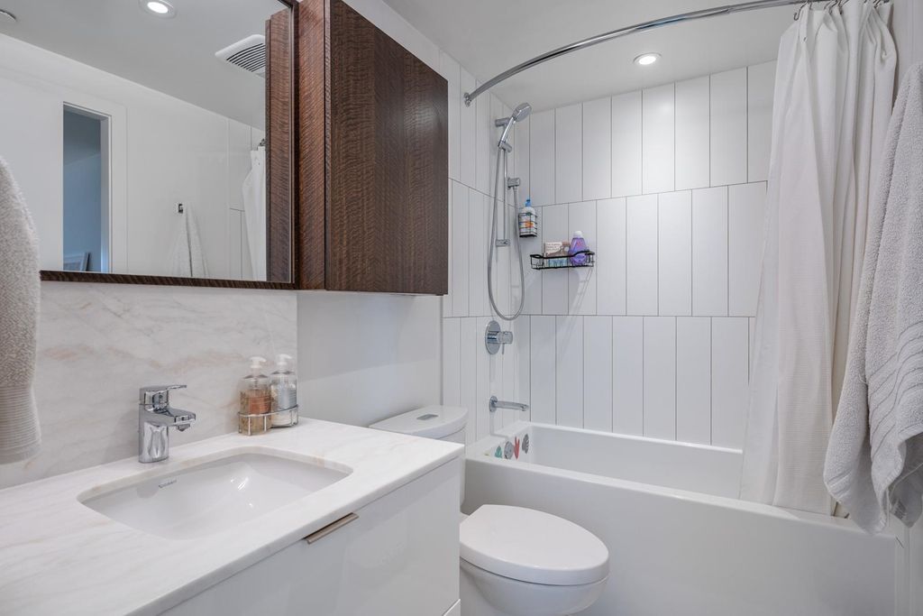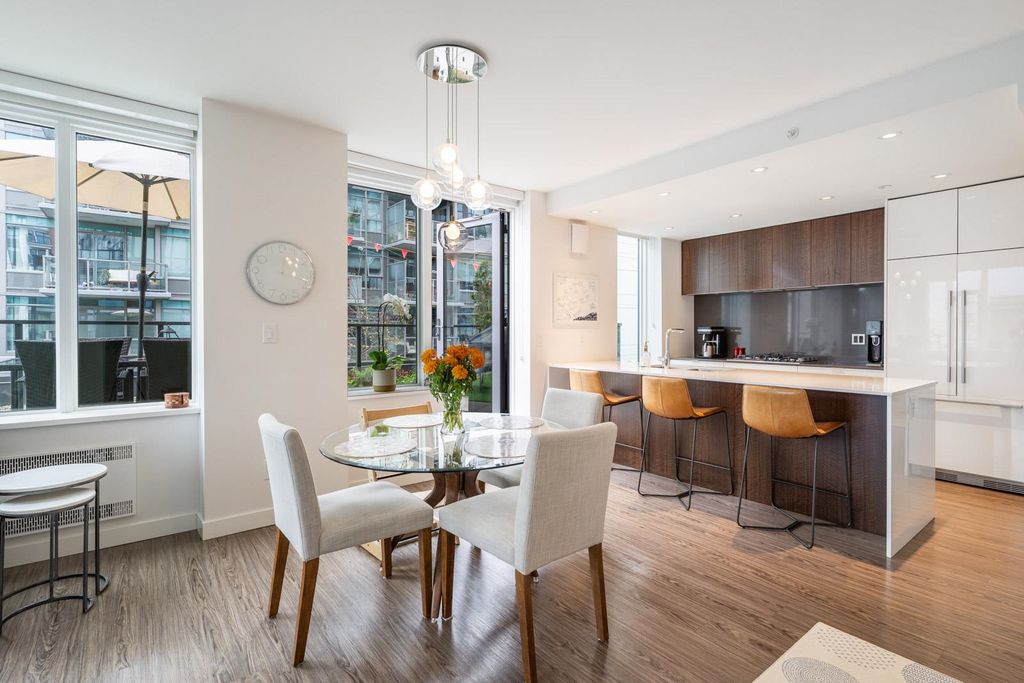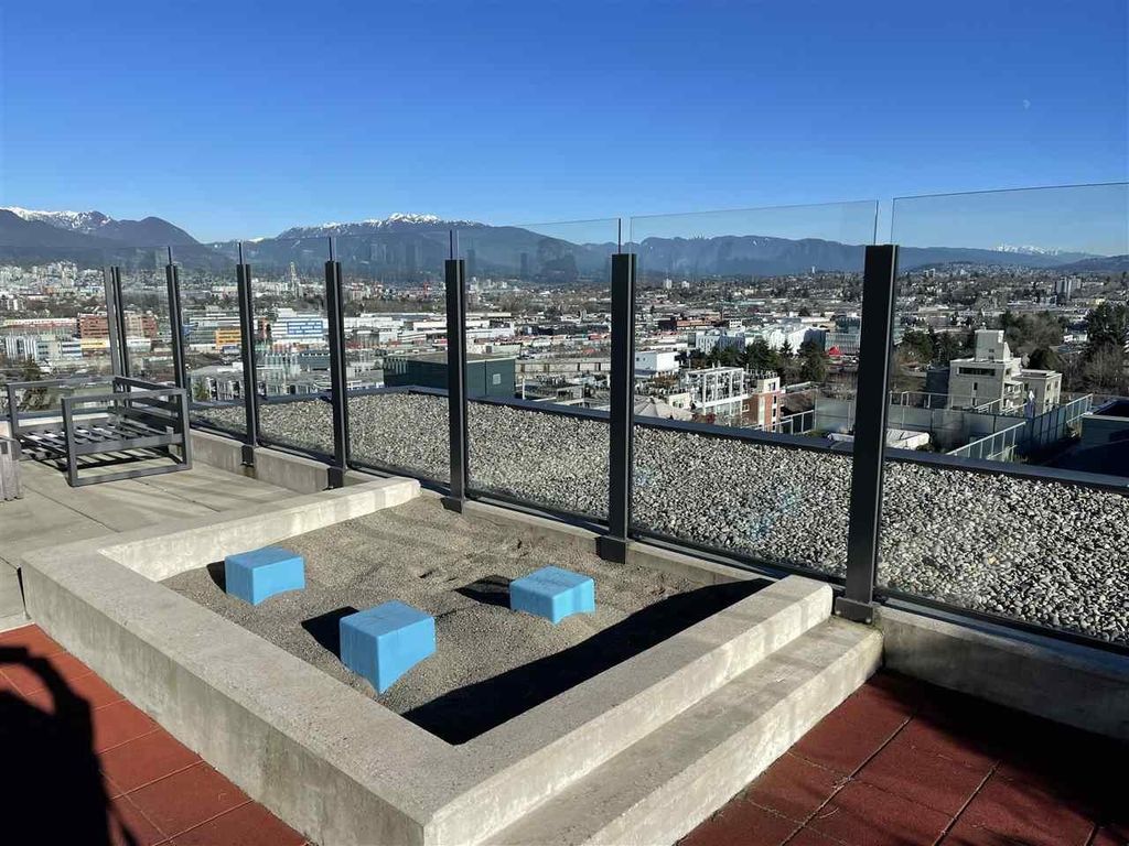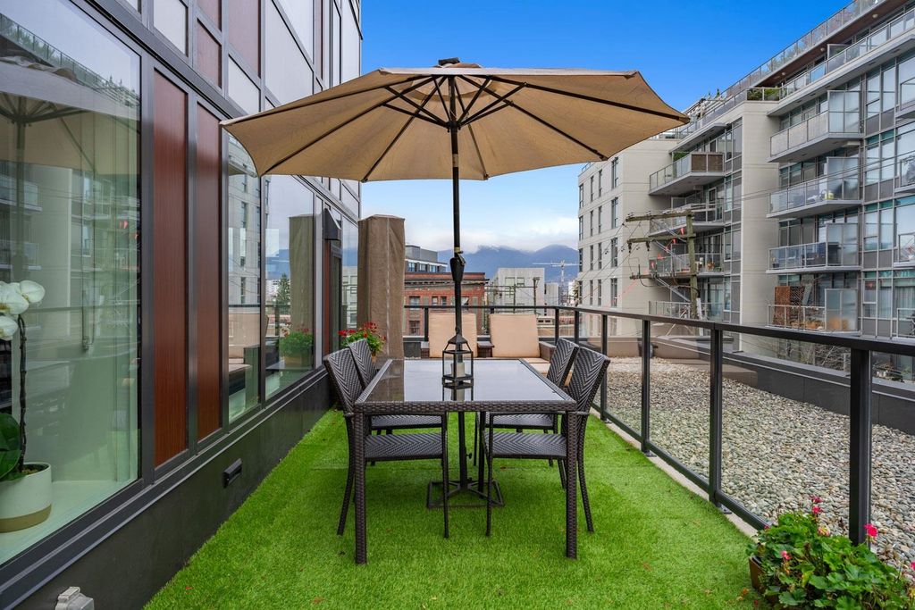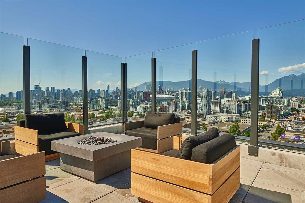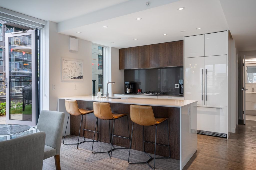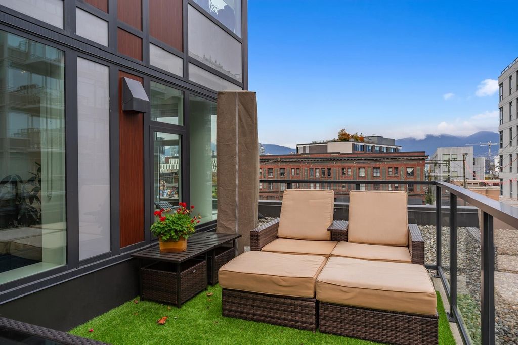 Welcome to Ellsworth! This LEED certified concrete development is located on the corner of Main and 7th, right in the heart of the trendy Mt. Pleasant neighbourhood. This spacious, modern and bright corner unit offers a fantastic floorplan with 2 bedrooms, 2 bathrooms + bonus flex/office space, w/ A/C and a huge private patio! The chef's kitchen is equipped w/ a big island, gas cooktop, integrated Fisher & Paykel appliances and quartz countertops. Building amenities include a rooftop terrace with panoramic city views, outdoor BBQ w/ firepit lounge and a kids play area. Enjoy one of the best locations in the city, surrounded by craft breweries, top rated restaurants, parks, and steps to the seawall & future Skytrain station. This beautiful property must be seen!
