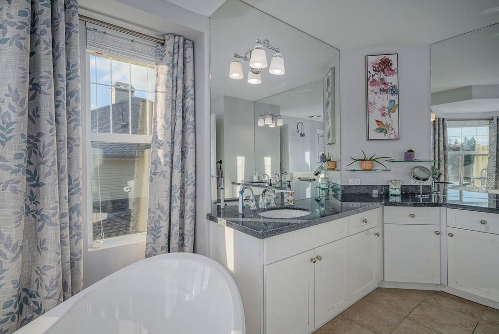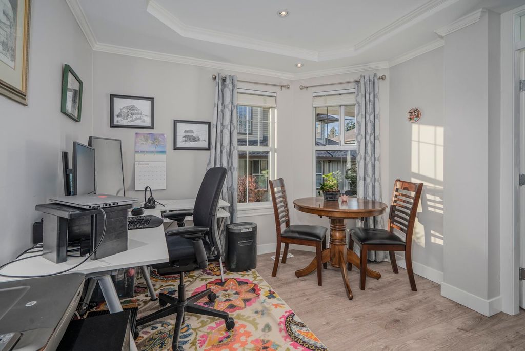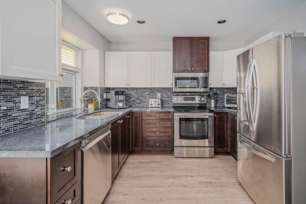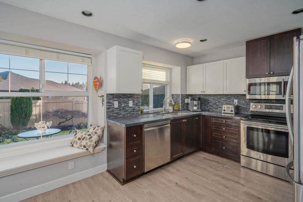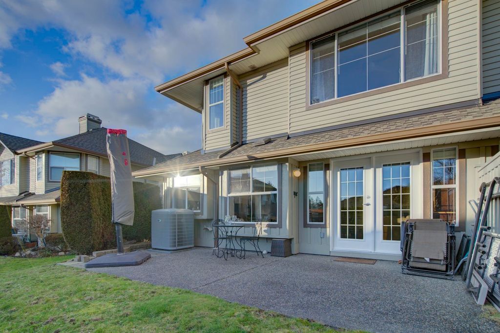 Rarely available 2,136 sqft, 3 bedroom & den END UNIT in the Oak Tree complex! This large, 2-story layout feels like a detached home featuring a NEW home office, 3 gas fireplaces, and updated laminate floors. The Master bedroom boasts a fireplace, walk-in closet, and HUGE ensuite with double vanity, corner shower, and free-standing soaker tub. The kitchen features stainless steel appliances, granite countertops; a double sink, and shaker cabinets. The patio and SOUTH-FACING YARD make for great outdoor living. NEW, high efficiency furnace, heat pump & AC. Double, SIDE-BY-SIDE garage with 220v charger plug. Just minutes away from transit, future Skytrain, Fleetwood Park Secondary, Fleetwood Park, Bear Creek Park, golf courses, sports complex, shopping, and amenities. No age restrictions