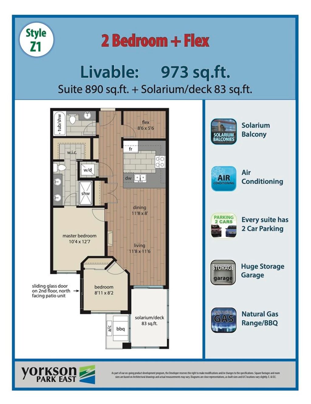 Your opportunity to own a 2 bedroom, 2 bathroom plus flex space unit in Building A at the Yorkson Park development built by Quadra Homes. The development has plenty of lush green space and is steps away from the Carvolth Park & Ride. This unit features an 83 square foot retractable glass Solarium including a gas connection for bbq. In addition, the unit includes gourmet stainless steel appliances, quartz countertops, energy efficient heat pump (AC & Heat), 9' high ceiling, wood closet system, sound dampening acoustic package, heated bathroom tile floors and more! Also, 2 underground parking stalls and a private storage locker which includes an electrical outlet to fulfill your EV needs.