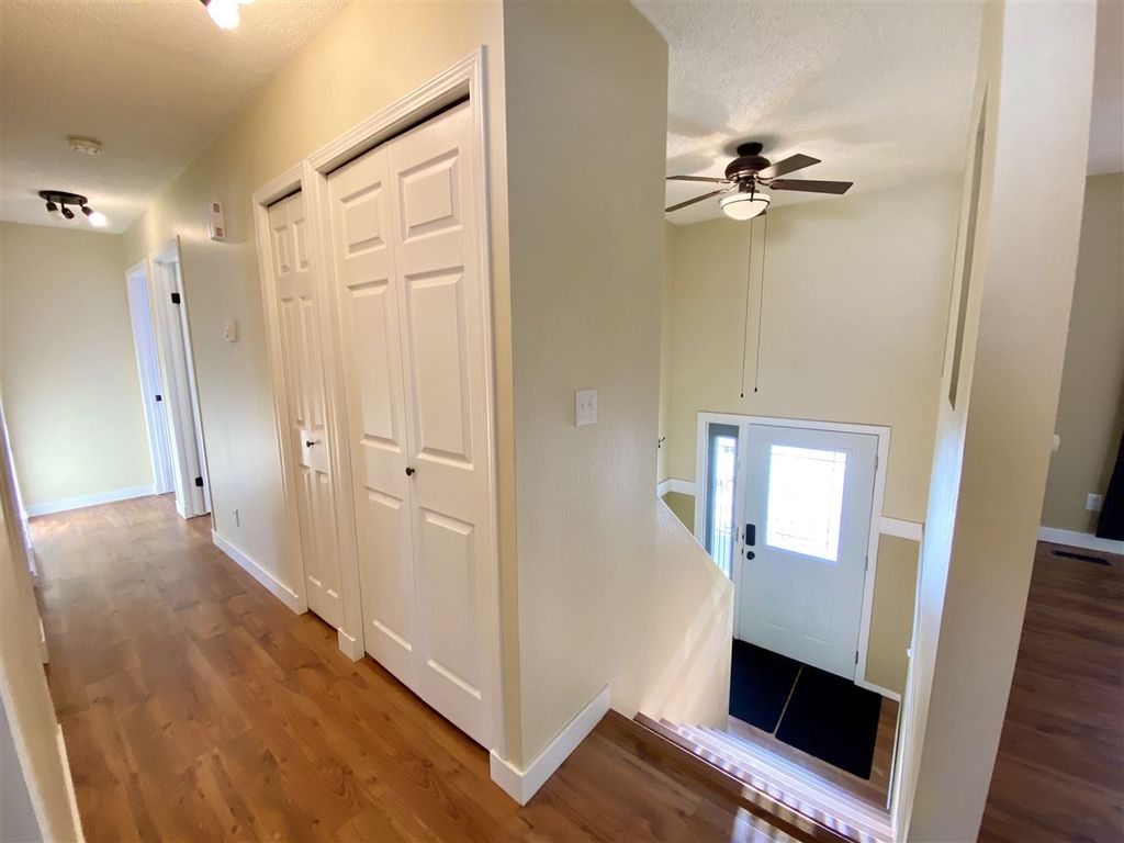 You will be impressed with this turn-key family home! 4 beds 2 baths, large living room with wood burning fireplace, U-shaped kitchen open to the dining area and patio doors leading to a spacious deck. This home has had many updates in the last few years - Including windows and doors, laminate flooring, newer appliances and hot water tank. Both bathrooms updated and a 4th bedroom added downstairs with huge walk-in closet and barn doors. This space could also be used as a family room and office. Fenced backyard with a gated 25x50 recessed rear parking area for all your toys or RV. 10x30 shed and paved driveway. Easy to show & quick possession available.