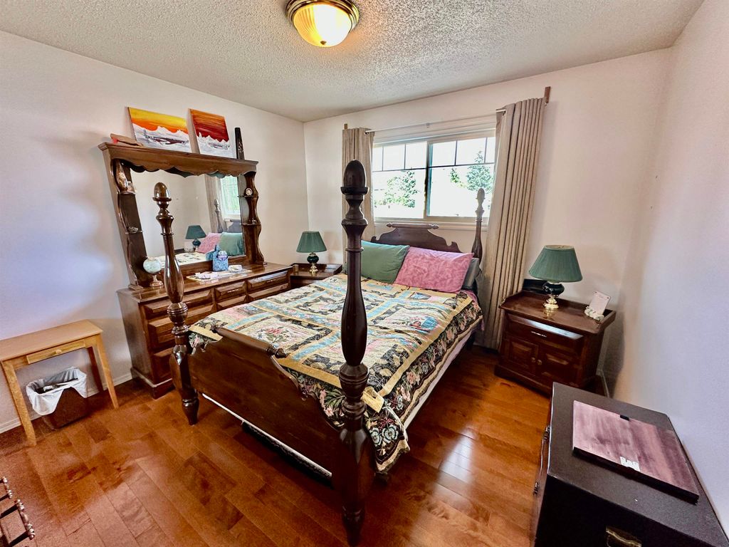 Welcome to this beautifully maintained 5-bed, 2-bath home located close to schools, parks & amenities. Ideal for the growing family, this property boasts 20x35 detached heated shop-perfect for extra storage, hobbies & outdoor toys. Step inside to discover attractive wood floors throughout, bright living area w/cozy gas fireplace. The fully finished basement offers extra living space. New garden doors in dining room. Landscaped yard w/fruit/maple trees, galvanized raised garden beds, firepit, huge concrete patio perfect for entertaining & RV parking. Updates-newly painted fence, new fridge, shingles, windows & HWT. Newer furnace providing peace of mind & energy efficient for years to come. With the blend of space, comfort & functionality, this home is waiting for you to make it your own!