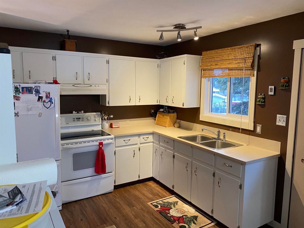 Take a walk into this fantastic 4 bedroom, 2 bathroom house located in Mathews Park. Being close to the high school, dog park, skate park and other amenities makes this the perfect family home. With new flooring, brand new windows in 2022 and a neat well cared for kitchen leading out to the backyard, this home is a must see! Includes RV parking and 3 sheds for all your storage needs. The backyard is landscaped with mature trees and has back alley access.