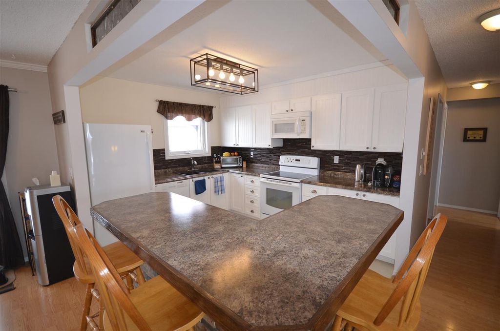 Lots of updates in this great 3 bedroom 2 bathroom home is quiet Camarlo Park neighborhood. Open concept kitchen with very nice eating bar. Newer flooring throughout. New hot water tank, new fence, newer windows, new vinyl siding with 1" SM insulation added. The basement is bright with lots of natural light. Huge rec room, bedroom and a workshop. All appliances and shed included, quick possession available.