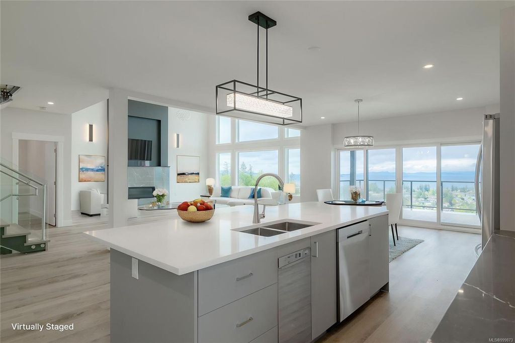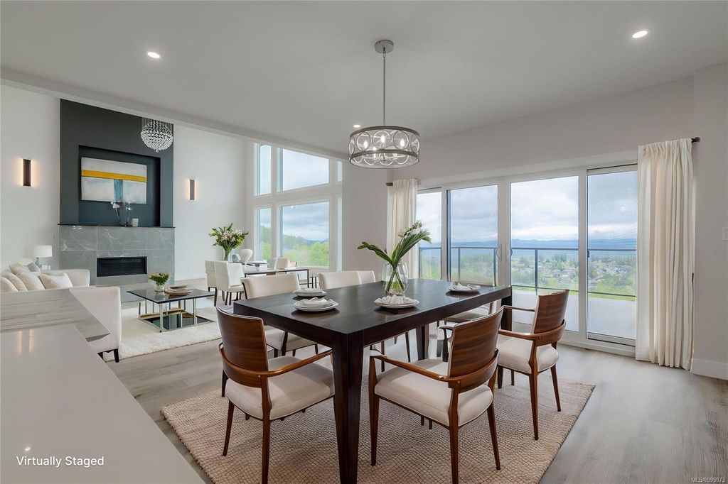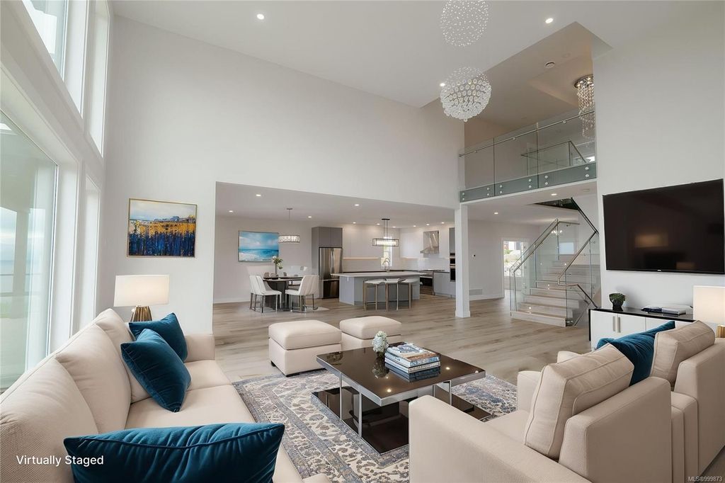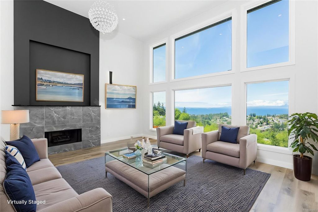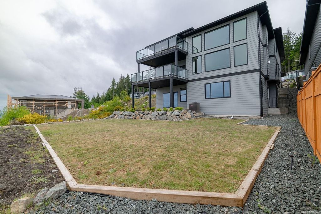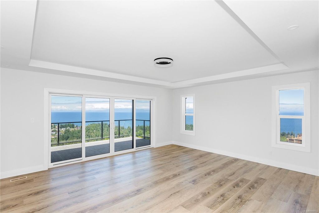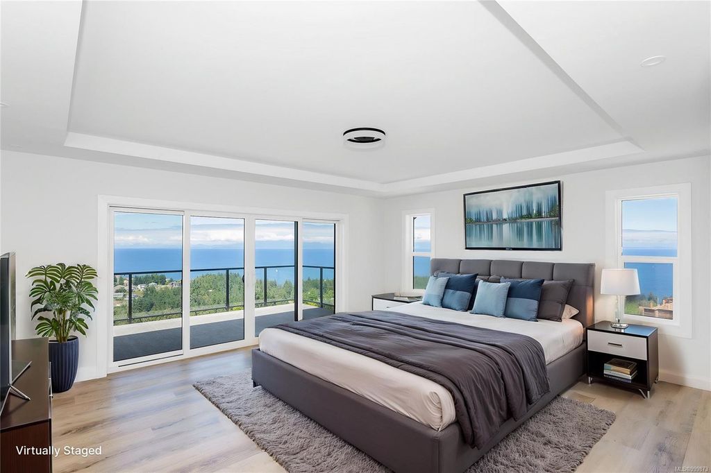 This stunning home is situated on top of Laguna Height's newest subdivision, offering breathtaking panoramic ocean views and a bonus 2 bed suite. Spread across 5,410sqft, this custom designed home boasts 7 beds and 7 baths, providing ample space for a large family or for accommodating guests. The great room on the main level features impressive 16' ceilings along with a towering glass wall that overlooks the straight of Georgia & the majestic mainland mountains. The heart of the home lies in this massive open concept main living area where the dining, living and kitchen seamlessly connect. A guest room, 3 pc bath and office complete the main floor. 3 beds, each with their own ensuite, are located on the upper level as well as a large bonus room. On the lower level you will find a theater room, another bed, 4 pc bath and the 2 bed suite. Enjoy the ever-changing oceanscape that can be viewed from the numerous covered sundecks or from your backyard.