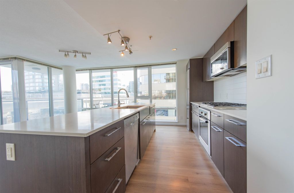 Quintet, in the heart of Richmond. This bright southeast facing unit over 950 sqft, features high-end Bosch appliances, gas range and quartz countertop. Huge open living and dinning area. New flooring and painting. Prime location steps to London Drugs, Richmond Shopping Centre, Lansdowne Mall, banks and Skytrain. Amazing amenities including indoor swimming pool, hot tub, sauna, fitness room, meeting rooms, and rooftop garden.