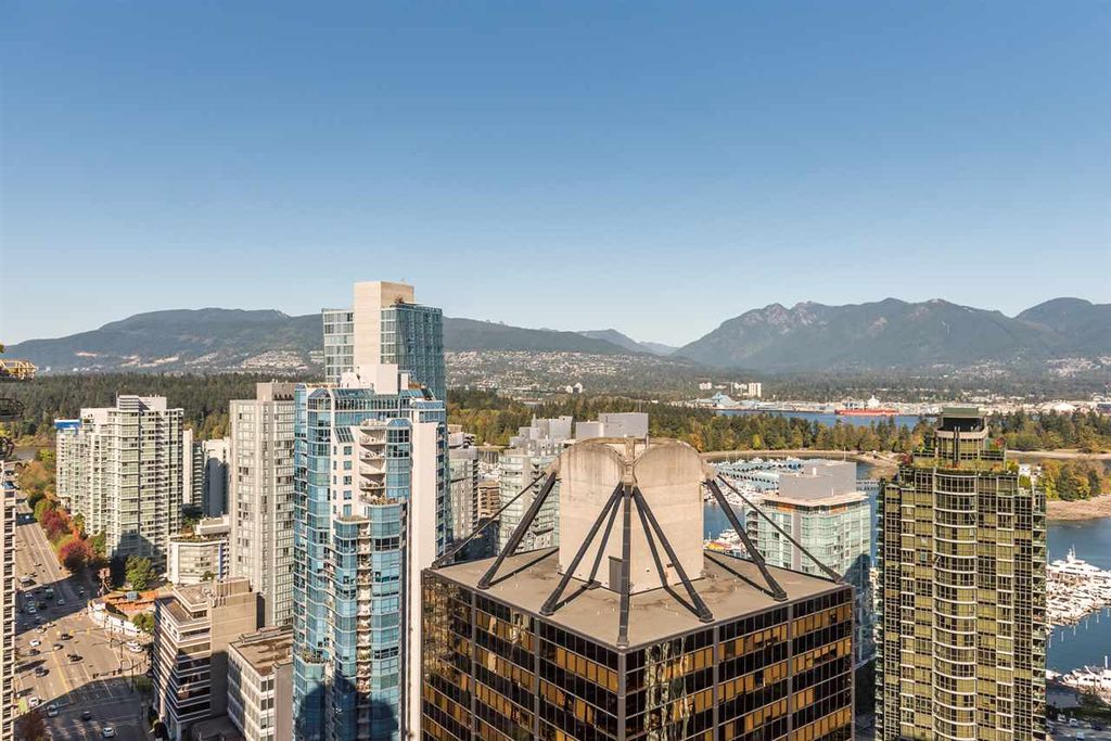 FULLY RENOVATED, with Stunning Ocean, Mountain, and City Views from all rooms in this spacious, 3 bed home. Open concept floorplan, with 9' ceilings, a gourmet kitchen featuring all built-in Bosch / Fisher& Peykal appliances, Carrera Style Counters, and custom cabinets. Top quality flooring with elegant modern lighting throughout. Spa-like ensuite and 2nd bath with fantastic tile work, rain showers, and modern vanities. The suite comes with 2 parking stalls and 1 storage locker. The Lions Towers are perfectly situated, only 3 blocks to the Seawall, yet only 1 block from the world class shops and restaurants of Robson St. The building features 24 hr. concierge service, fantastic fitness centre, large party room, and media room. Open House Sat/Sun Nov 11/12 2-4pm