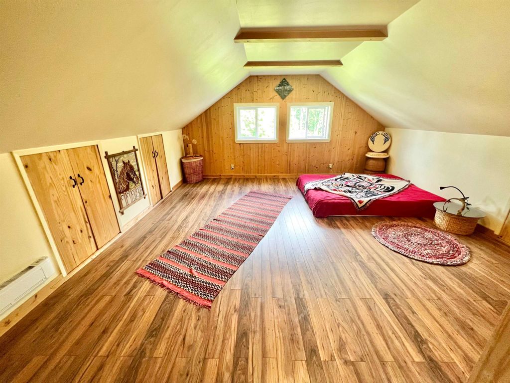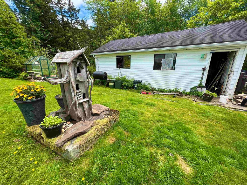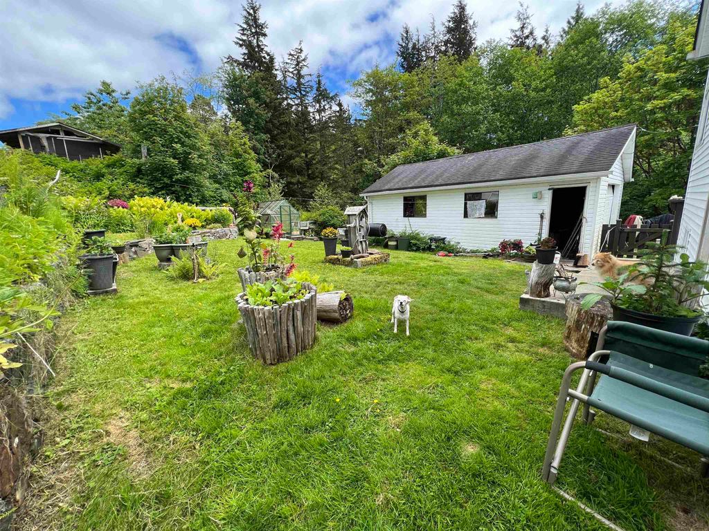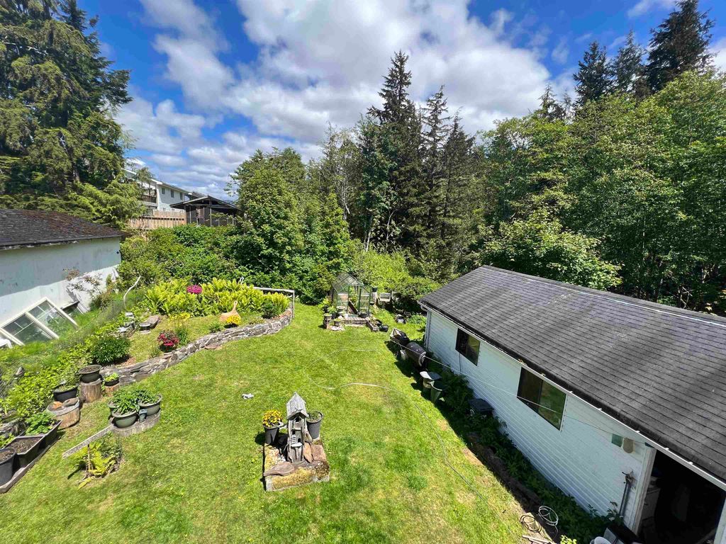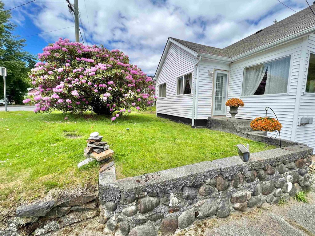 Looking for a private home on a quiet street? This 3/4 bedroom home comes with an extra long driveway that leads to a detached garage that includes a car pit for working on your vehicles. The fenced backyard is beautifully landscaped with a greenhouse, compost and all the sun exposure you can expect in Prince Rupert. Inside there is a rustic cabin vibe with wooden wall panels and a wood burning fireplace. Upstairs there are 3 bedrooms with an oversized master as well as a 4th bedroom on the main floor. The basement provides for great storage with inside and outside access. Quaint and affordable!