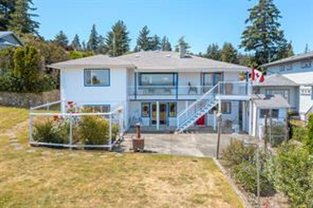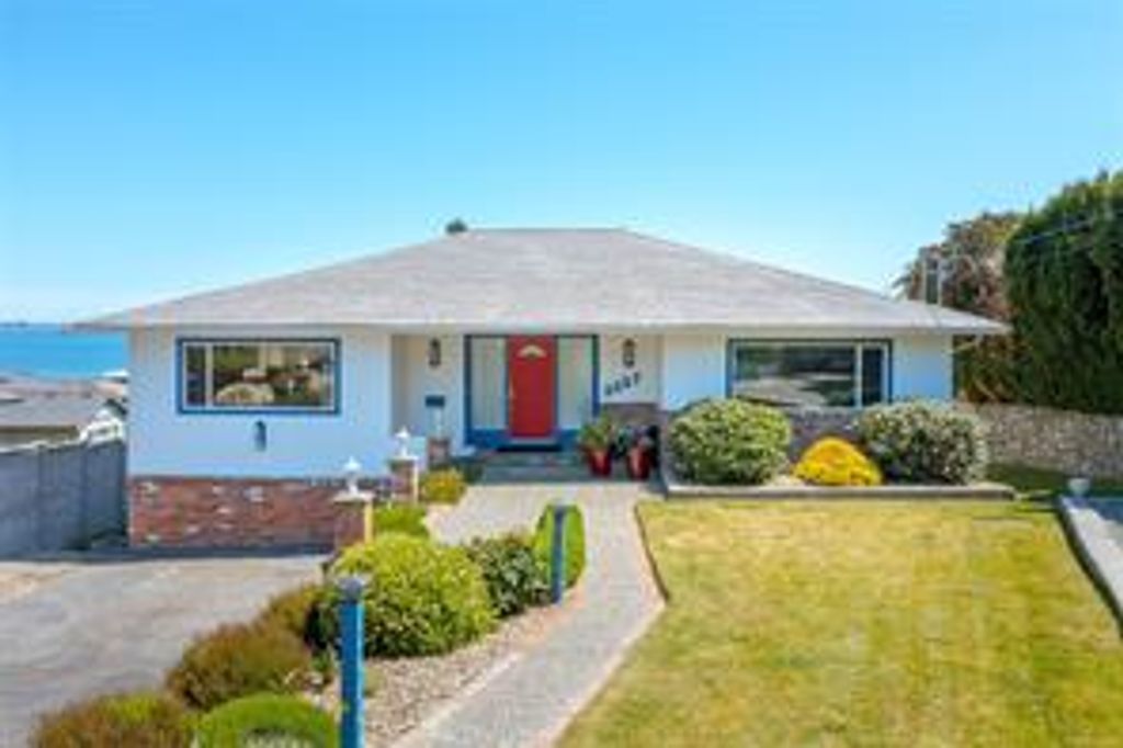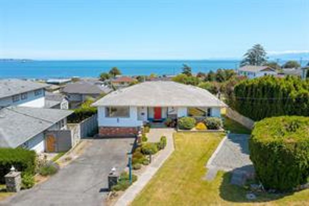 Lovely Ocean View property in the sought after Colwood Lagoon area. Located steps to the ocean with beautiful panoramic ocean, city and mountain views, you will not be disappointed. Quality built in 1967, this 3500 sq/ft, 2 level family is home situated on a large 12,000 sq/ft beautifully landscaped lot & the home is in immaculate condition inside and out. Upstairs boast nice oak hardwood floors, modern Ikea kitchen open to a cozy family room, spacious living room and dining area, wood fireplace, ocean views from most rooms, 3 spacious bedrooms, Primary Bdrm has 3 piece ensuite. Nice entertaining view deck off of the dining room. Lower level has a large separate accommodation that can be 1 or 2 bedrooms. Utility room with workshop and laundry leading to a large 900 sq/ft patio. Yard is beautifully landscaped with nice garden area and storage shed. Lot approximately 65'x185'(.28acres). Lots of parking including large RV or Boat pad. Short walk to the Ocean and Colwood Lagoon.