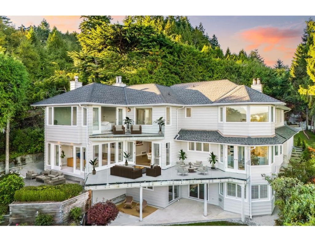 Gorgeous residence in prestigious Sentinel Hill. This spacious 5,000+ sf home sits just mins from downtown in one of West Vancouver’s most desirable neighbourhoods. Enjoy spectacular close-in panoramic city and mountain views from nearly every room. Features 5 beds (4 up), 6 baths, large entertaining areas, office, 4 gas F/Ps & a vaulted grand entrance foyer. The 12,750 sf level, private lot impresses w/ a long gated driveway, massive auto court, manicured gardens, patios & decks, and an oversized 2-car garage. Walk to Park Royal & Ambleside Beach. Views, location, privacy & lifestyle—all in one