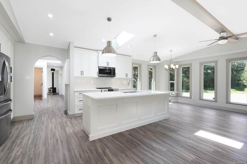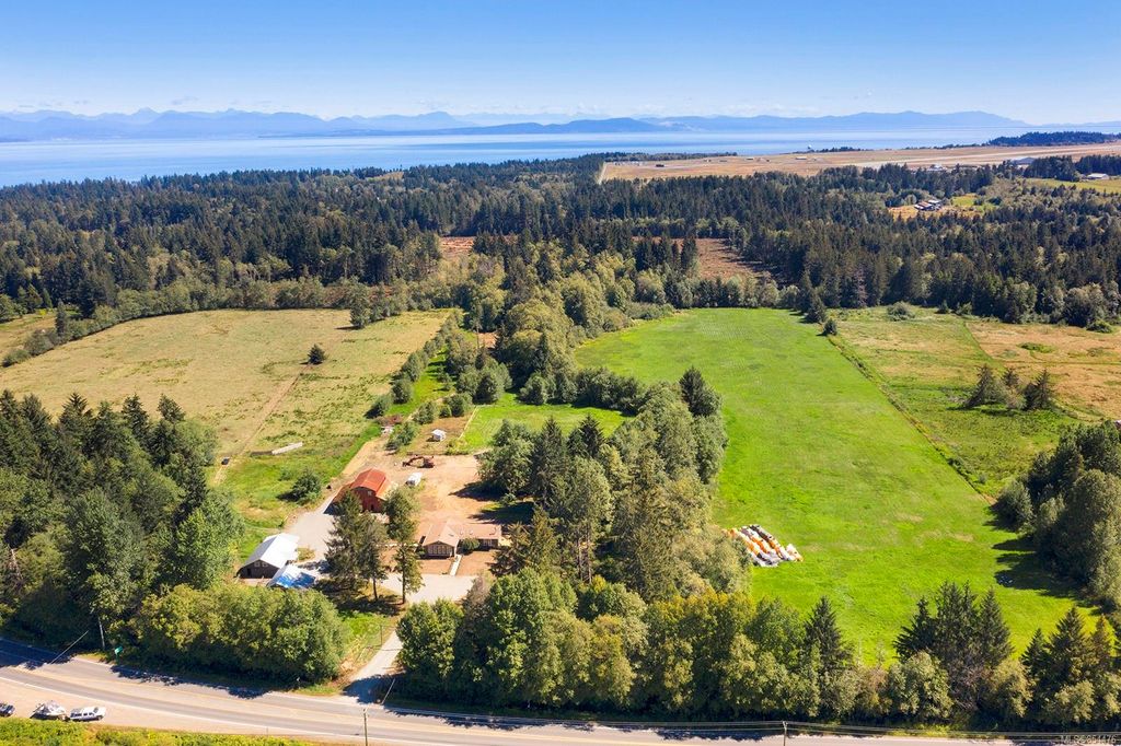 Looking for room to roam? This neat and tidy 19.4 acre level property on the Comox Peninsula is it! Starting with the renovated 3 bed/2 bath 1848sqft rancher featuring new windows, new Hardi plank siding, new lighting, luxury vinyl plank flooring throughout, updated bathrooms and a spectacular kitchen offering all new bright white cabinets, high end stainless steel appliances, large island with quartz countertops and pantry storage with roll-outs. Cozy WETT approved woodstove and new deck complete the main home. Outside, there are several outbuildlings, including detached workshop with 220 power and a new roof, 3 stall barn with new roof and 2410sqft auxiliary barn. Brand new septic system with 2 tanks, the convenience of municipal water and approximately 12 acres in pasture. This fabulous home and property is move-in ready. Terrific location only minutes to either Comox or Courtenay, hiking trails at Seal Bay Nature Park, CFB Comox, local beaches and so much more.