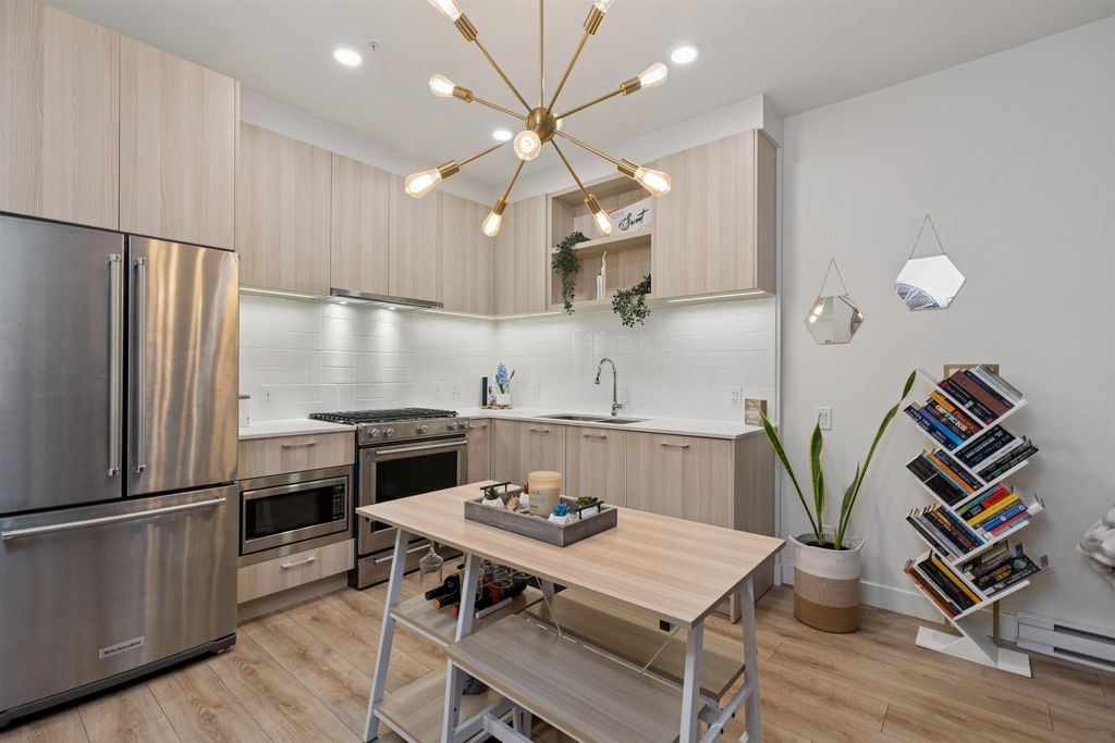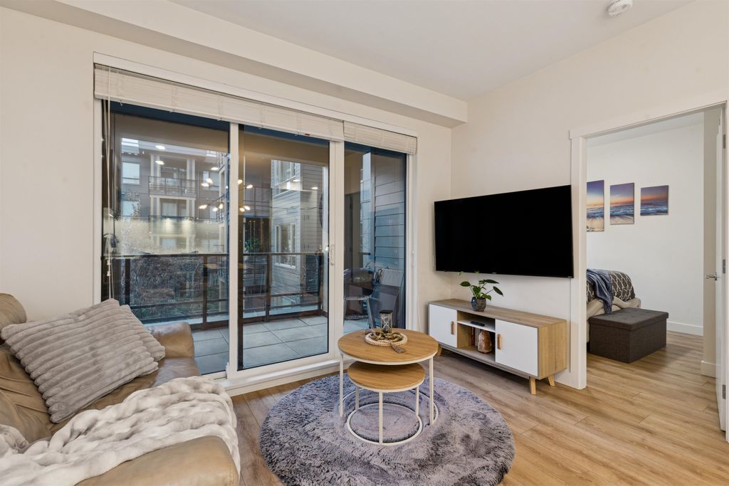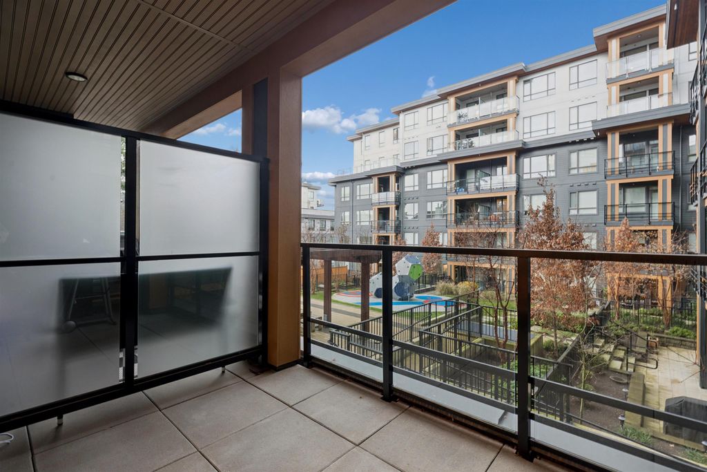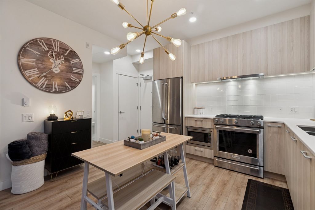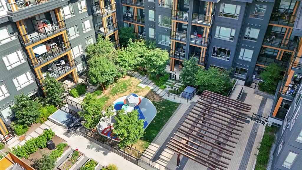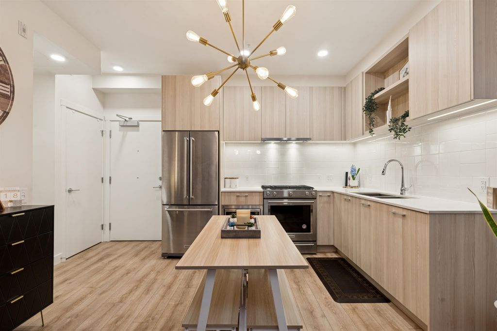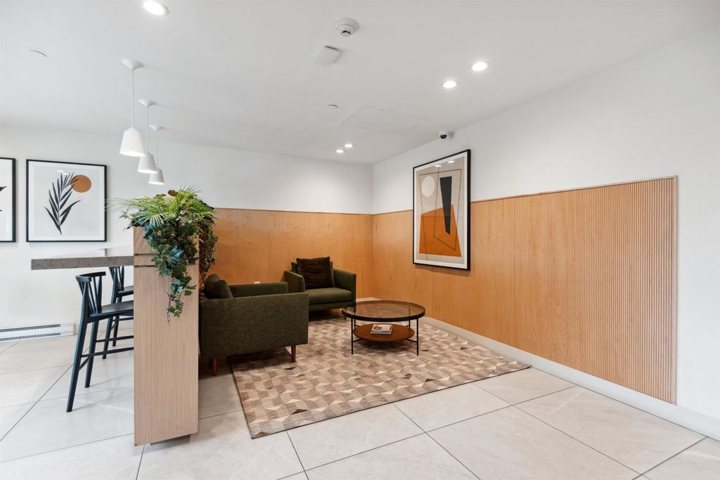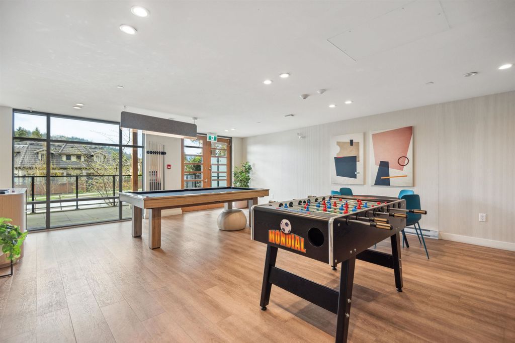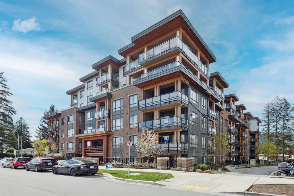 Introducing a quiet courtyard facing 1 bed, 1 bath condo at The Oaks. Inside, enjoy 9' ceilings in main areas, high-performance wide-plank laminate flooring, and a gourmet kitchen featuring soft-close laminate cabinetry, quartz countertops, and a premium KitchenAid appliance package. The spa-inspired bathroom offers quartz countertops, a deep soaker tub, and a Kohler quiet-close toilet. Building amenities are exceptional, including over 28,000 sq. ft. of private indoor/outdoor space, a fully outfitted fitness studio, and dedicated flexible workspaces. It's highly connected, just a 10-minute walk to Burquitlam Skytrain Station. The unit includes EV-ready parking and a storage locker. Shows like new! Furniture can be included.