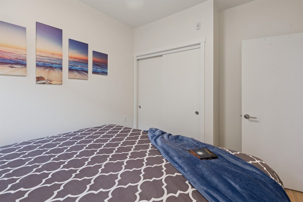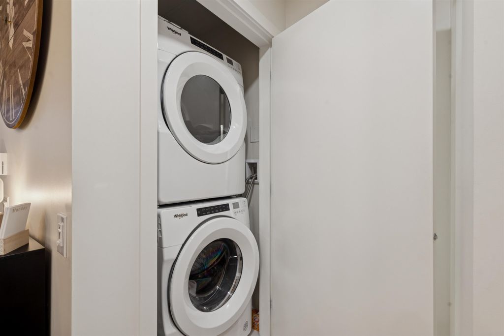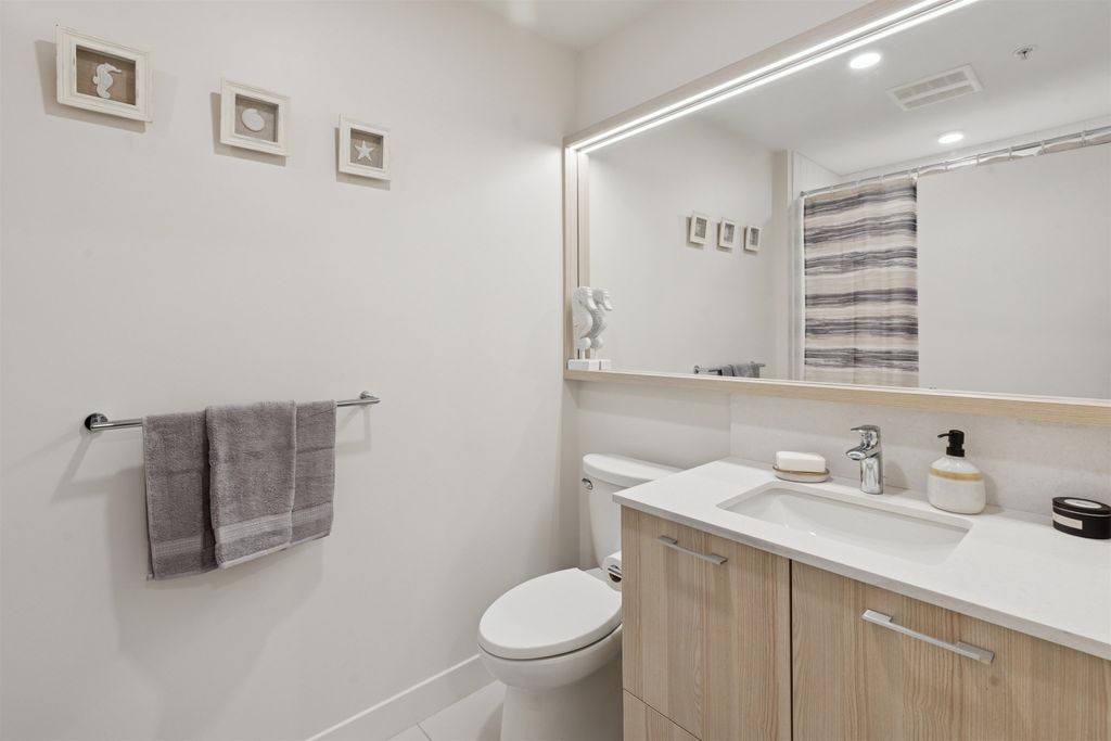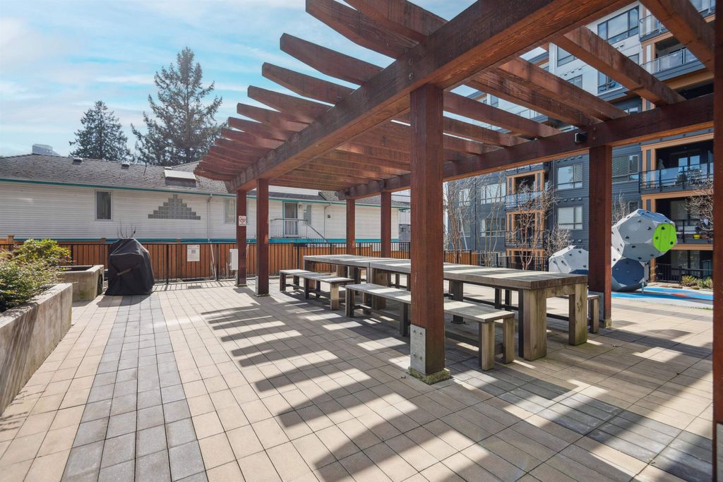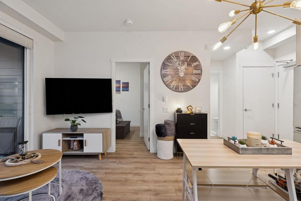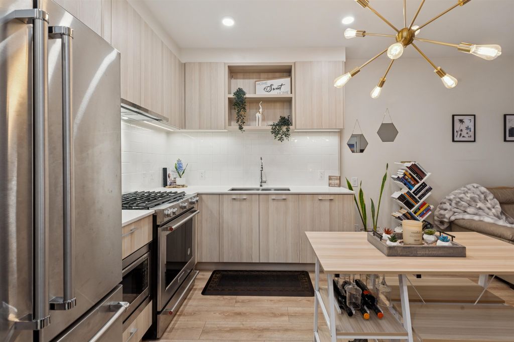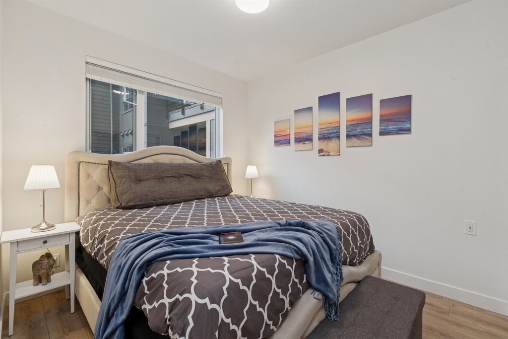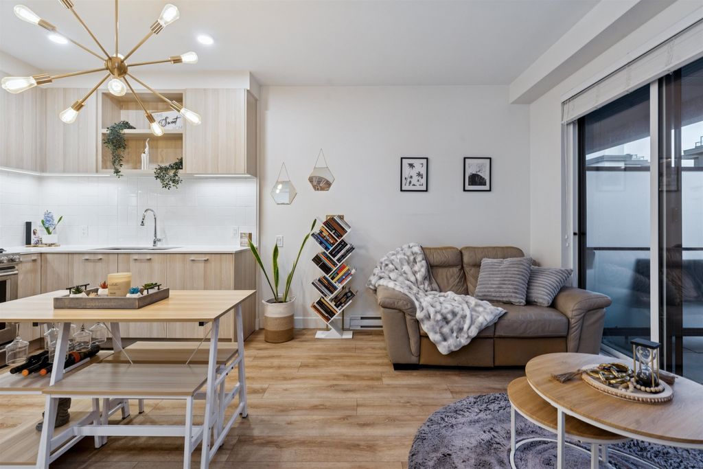 Introducing a quiet courtyard facing 1 bed, 1 bath condo at The Oaks. Inside, enjoy 9' ceilings in main areas, high-performance wide-plank laminate flooring, and a gourmet kitchen featuring soft-close laminate cabinetry, quartz countertops, and a premium KitchenAid appliance package. The spa-inspired bathroom offers quartz countertops, a deep soaker tub, and a Kohler quiet-close toilet. Building amenities are exceptional, including over 28,000 sq. ft. of private indoor/outdoor space, a fully outfitted fitness studio, and dedicated flexible workspaces. It's highly connected, just a 10-minute walk to Burquitlam Skytrain Station. The unit includes EV-ready parking and a storage locker. Shows like new! Furniture can be included.