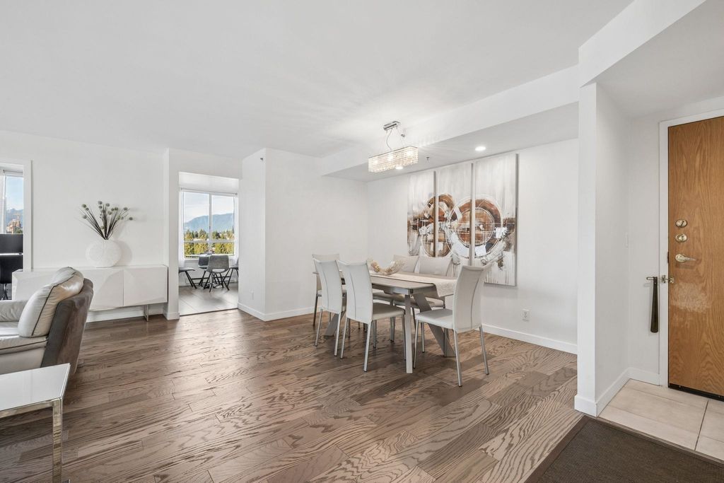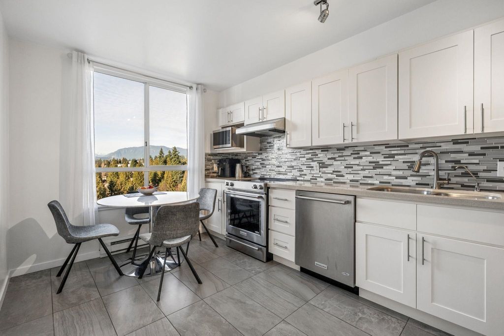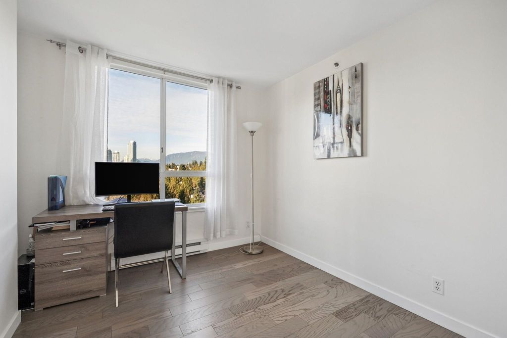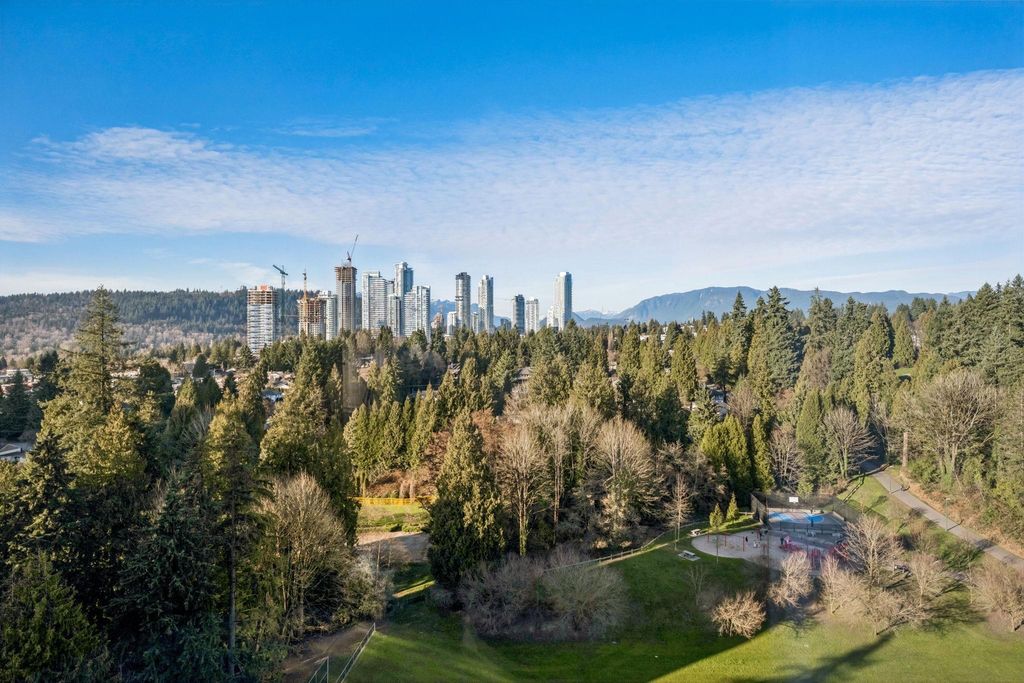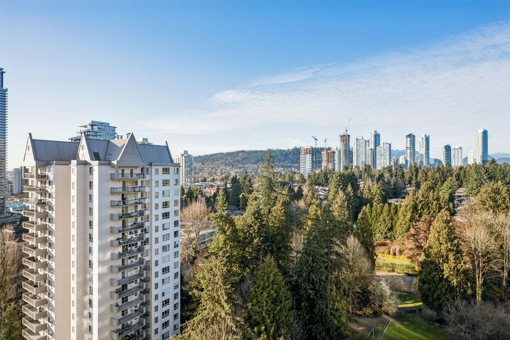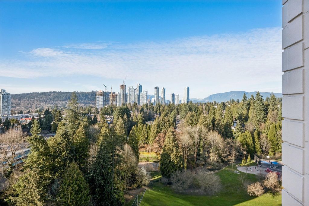 Walk to SkyTrain & Lougheed Mall! Welcome to Brookmere Towers — this bright, high-floor NW corner unit offers 3 bedrooms, 2 bathrooms, and 1,280 SQFT of house-sized living. Ideal for downsizers or families, the spacious layout accommodates full-size furnishings, with a large primary suite featuring an oversized walk-in closet and ensuite with tub/shower. Tastefully updated with real engineered hardwood flooring, refreshed bathrooms, a renovated kitchen with new cabinetry and KitchenAid appliances, and fresh paint throughout. Oversized Patio off of the livingroom. Enjoy resort-style amenities including an indoor pool, hot tub, steam room, fitness centre, and meeting room. Steps to Lougheed Mall, SkyTrain. 1 Parking 1 Locker included