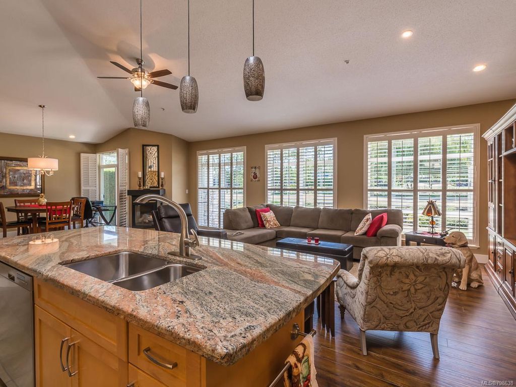 Golf course vista awaits you in your spacious southern facing patio home located in sought after Quails Landing. Extensive use of glass create a dramatic outlook over the inviting patio (35 X 14), pond areas and 17th Fairway of Morningstar Golf Course. Entertain or relax in comfort in this beautiful open plan residence. The kitchen is waiting for your culinary expertise. Expansive granite countertops and extensive quality cabinetry add to the feel. The natural light radiates through the living and dining areas while the three sided natural gas fireplace will add comfort in the cooler seasons. The floor plan was created with privacy in mind and it delivers. The double garage plus additional parking is an added bonus. The heat pump system provides efficiency with heating and cooling throughout the year. Enjoy the clarity, convenience and efficiency of the extensive use of LED lighting throughout the home. Whether year round living or your island escape this home is ready for you.