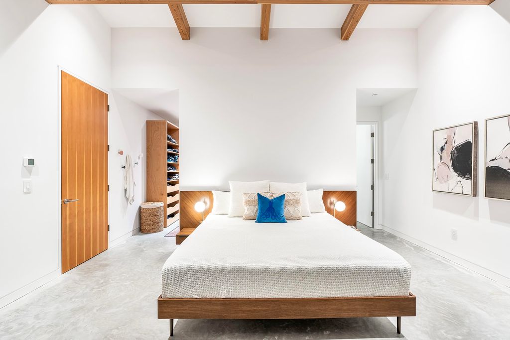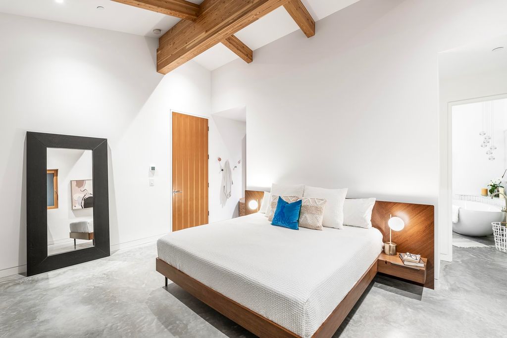 Impressive Randy Bens designed 4732 SF residence, sophisticated design & cutting-edge functionality on 3 levels. Triple-glazed tilt & turn Josko windows w/durability & aesthetic appeal. Living & dining with floor-to-ceiling sliding doors, chef’s kitchen, top-of-the-line appliances incl Sub- Zero fridge & freezer, Fulgor range w/six burners, AEG steam oven, dual Asko dishwashers, black walnut cabinetry by Paradigm Kitchen Design. Enrique Morales nook & dining table, 4 bed incl primary, 6 bath, skylights add brightness & openness to upper level. Down incl family rm & 3 beds, radiant heating & A/C. Polished concrete floors, staircase w/black walnut steps & unique handrail, 9ft solid core doors. Outdoor amenities incl 15’ x 30’ pool w/spacious deck & grassy backyard. Architectural brilliance!