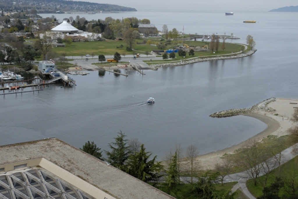 Outstanding Views! OCEAN, BEACH, ENGLISH BAY, CITY & MOUNTAINS. South, West and North. The 'ALVAR' by Concert Properties built in 2004 is a waterfront location, adjacent to the Aquatic Centre. Open design with excellent floor plan. Floor-to -ceiling windows, roller blinds, air-conditioned, hardwood floor, granite counters, granite top, island, gas range, stainless steel appliances. 2 PARKINGS, 1 locker. Gym, swirlpool & theatre. Balance of 2-5-10 Warranty.