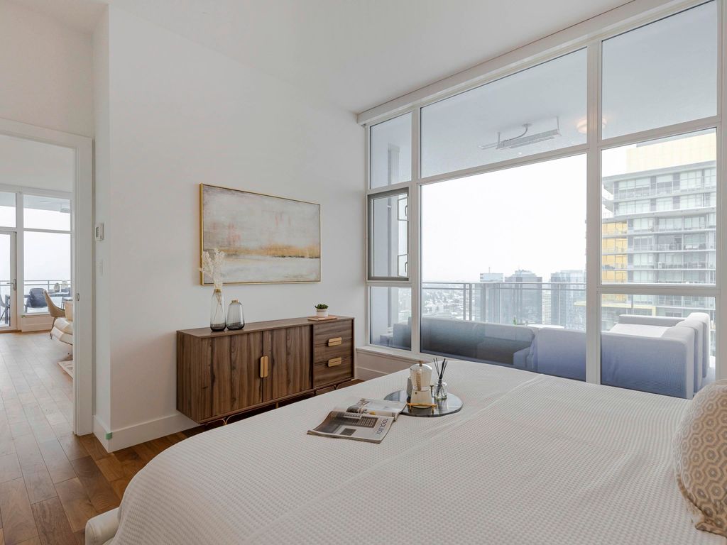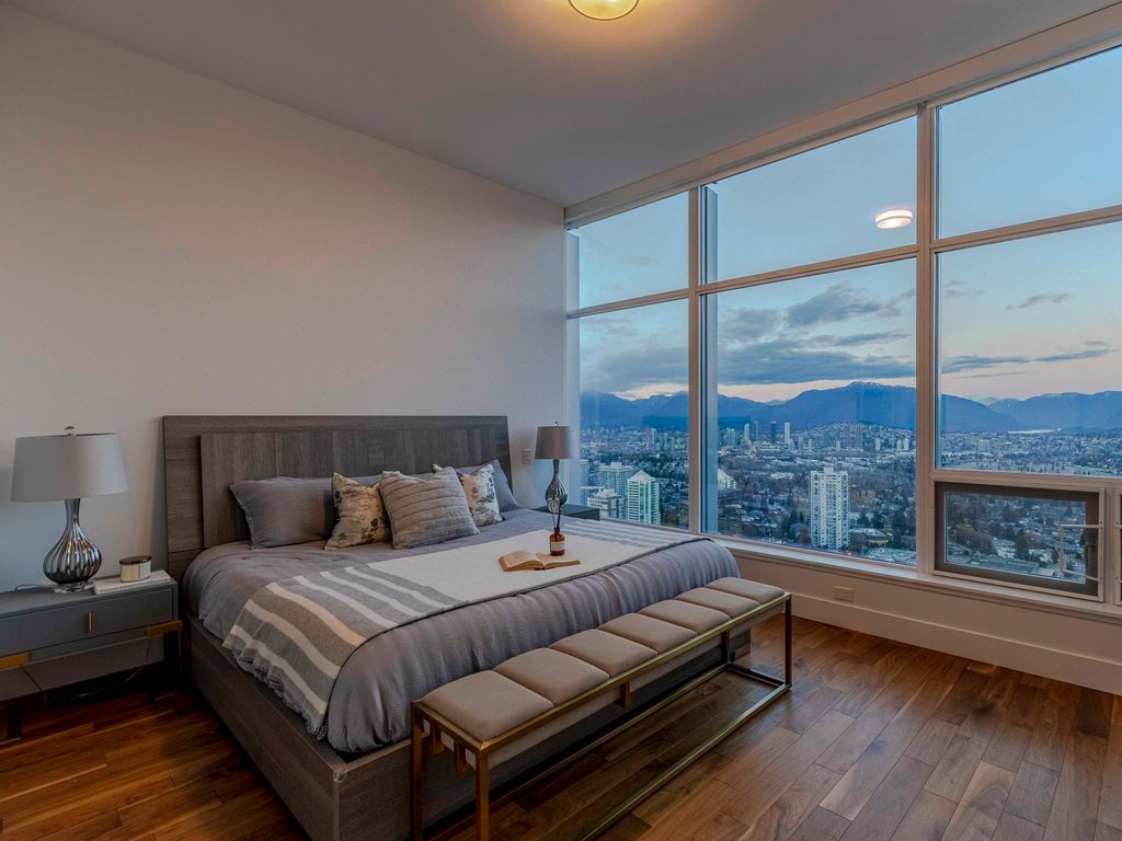 First time on the market, North-east corner penthouse with 270 degree of sweeping view of City, Mountain, Ocean and River in MODELLO by BOFFO. Luxury1640 square feet in one level , featuring 10' ceilings, Huge 489 SF double balconies, top of the line Miele appliances, 48" Sub Zero fridge & full size wine cooler, light Oak floor, heated marble bathroom floors, marble countertops, central A/C and much more! Five star private residence club with outdoor hot tub/BBQ/lounge/fire pit/gardens, exercise room, yoga studio, party room and 24/7 concierge service. Parking stall #35 & #36. Locker #P405-23. Steps to Metrotown Mall, 2 minutes to Metrotown Skytrain, public library, Central Park, Crystal Mall and Bonsor rec centre all nearby! Top of the line! A MUST SEE!!