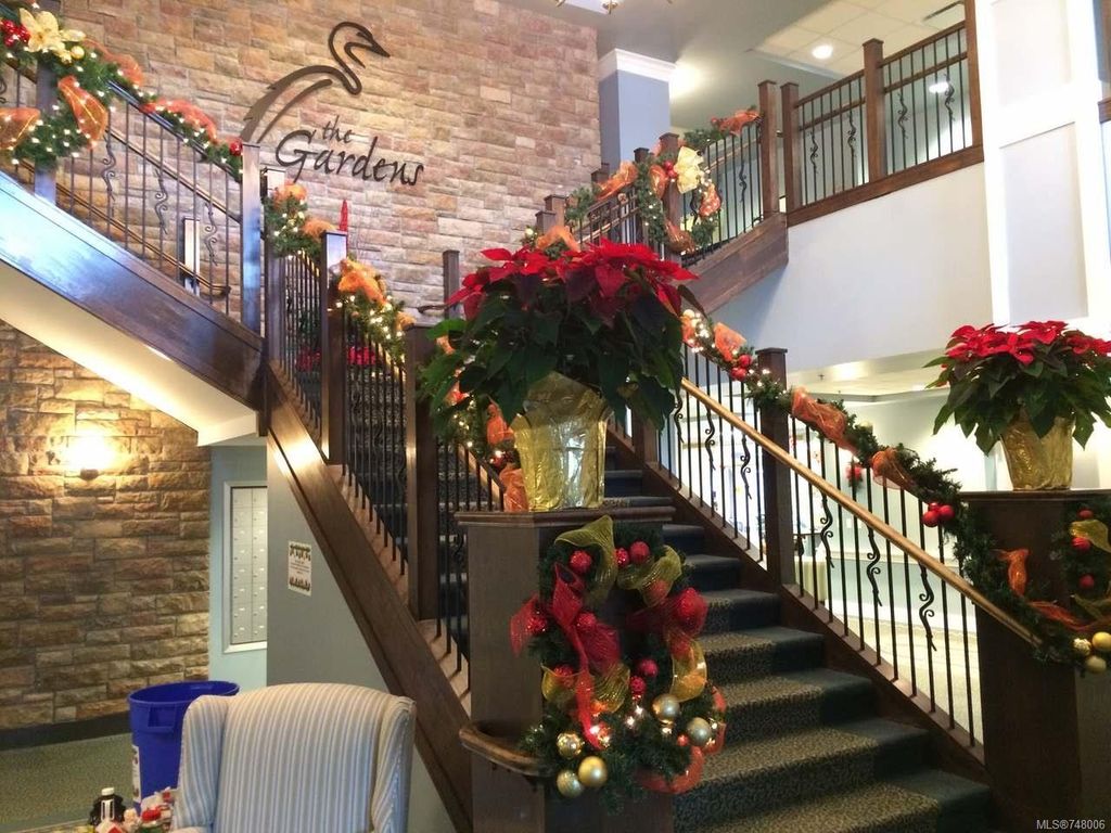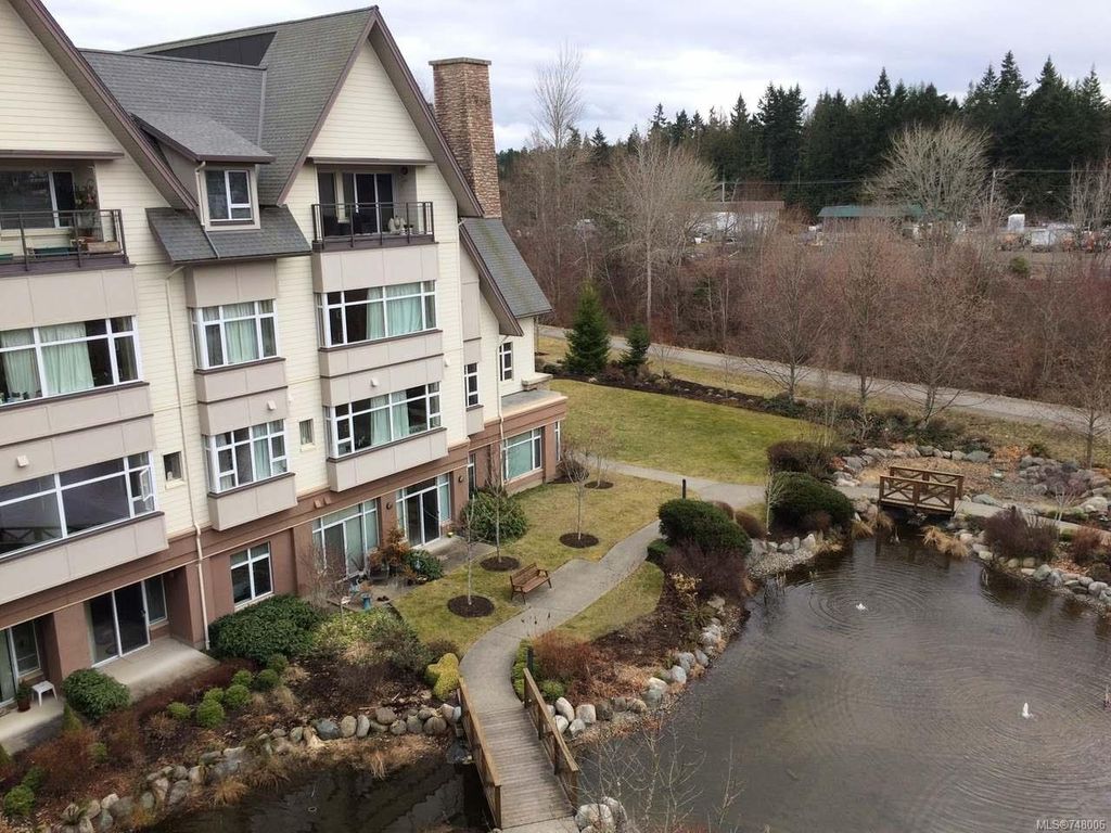 Here is The Gardens, Qualicum Beach's finest retirement facility. This particular suite offers a pleasant southfacing aspect overlooking beautifully manicured ponds, gardens & a distant snow-capped Mt. Arrowsmith vista. Convenient proximity to the Village centre is handy for outings with your guests. Spacious 1 bedroom & 4 piece bath with open floor plan for easy care living. Additional personal storage unit, underground parking with elevator access & secure entrance. Excellent dining facilities & lounge are available. In-suite laundry for personal use. Cozy electric fireplace. A mandatory service fee of $537 per month offers full membership to numerous social, recreational & wellness programs, scheduled outings, emergency services & more. Strata fee is currently $260.13 per month. The Gardens affords the opportunity to truly enjoy retirement living in a relaxing & beautiful setting with options for an active lifestyle.