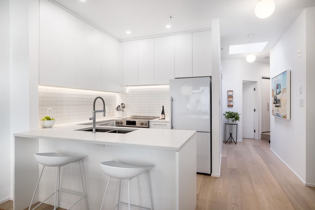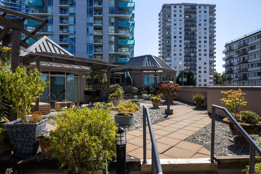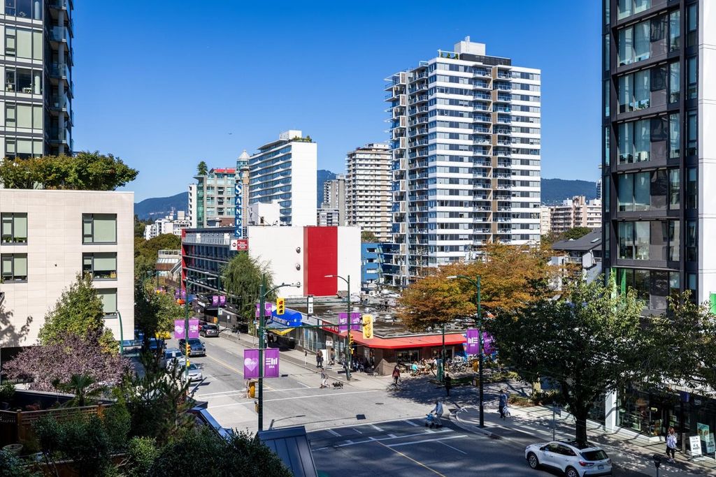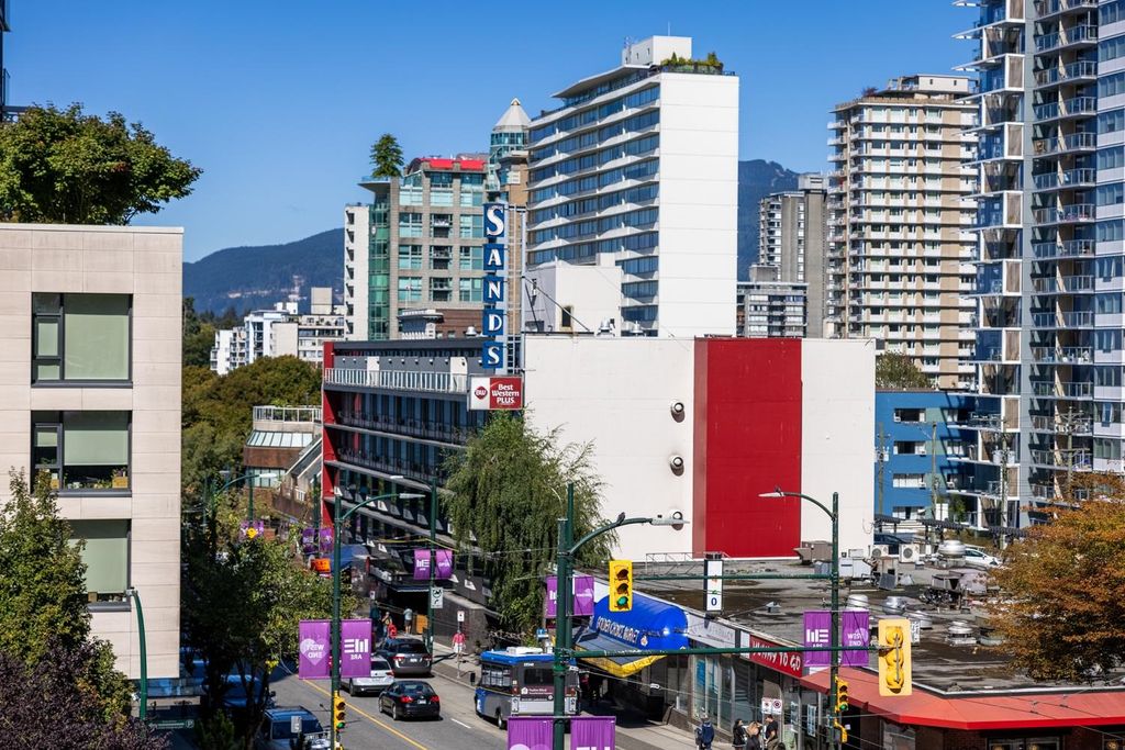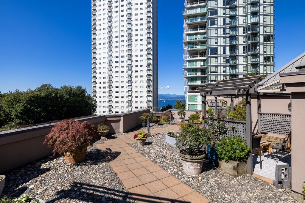 Beautifully renovated, stylish Penthouse located in desirable English Bay area. It is sure to impress you from the moment you walk through the rooftop courtyard. The open floor plan boasts 9’ ceilings, wide plank white oak flooring, custom drapery, gas fireplace, a powder room, a large den/second bedroom plus two balconies. The chef-inspired kitchen features European appliances, Caesarstone counters and full height lacquered cabinetry with ample storage. The king-sized bedroom has custom closets with a gorgeous spa like bath complete with porcelain tile clad walls, walk-in shower, soaker tub, walnut vanity, designer hardware & Bocci lighting. Baybreeze is a proactively managed rainscreened building steps to English Bay, Stanley Park, local eateries, cafes and shopping for your every need.