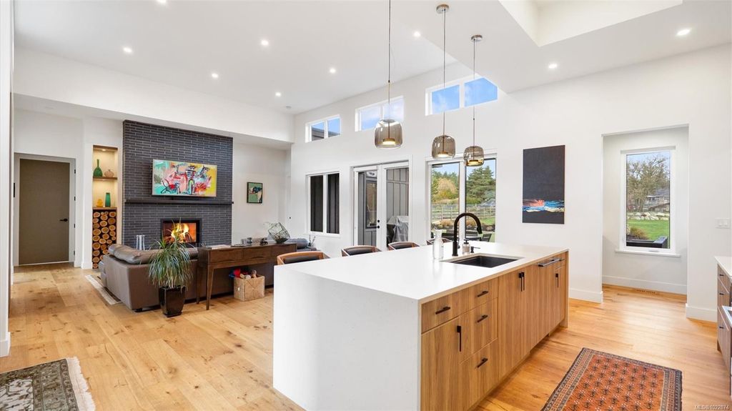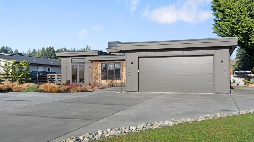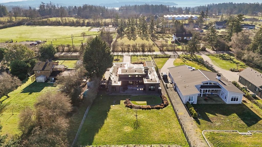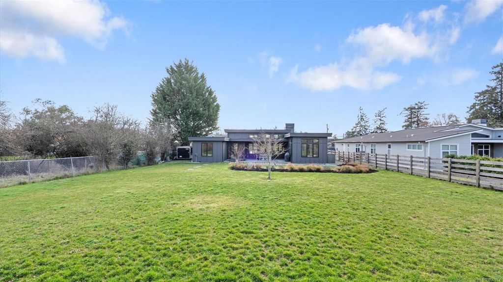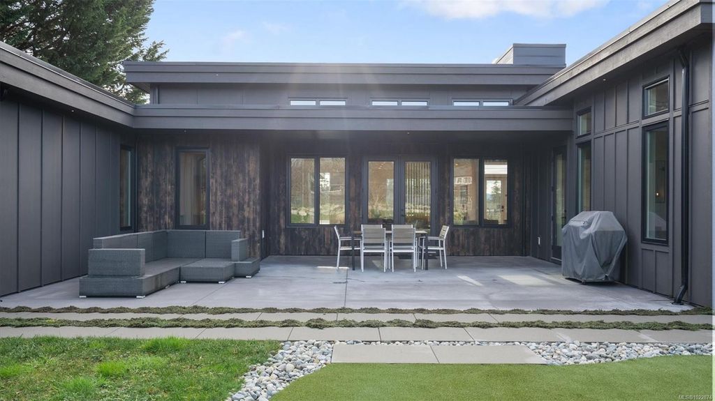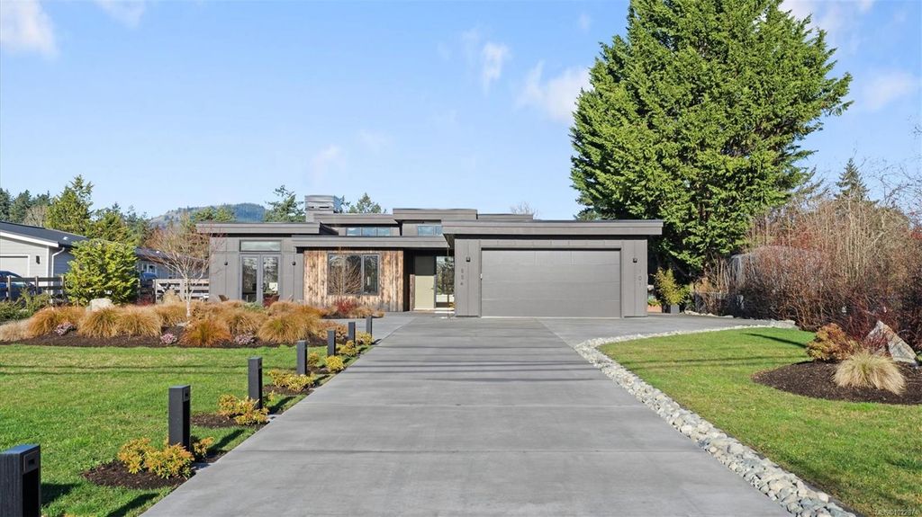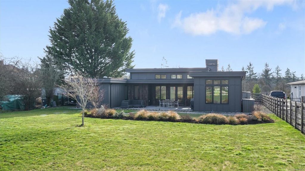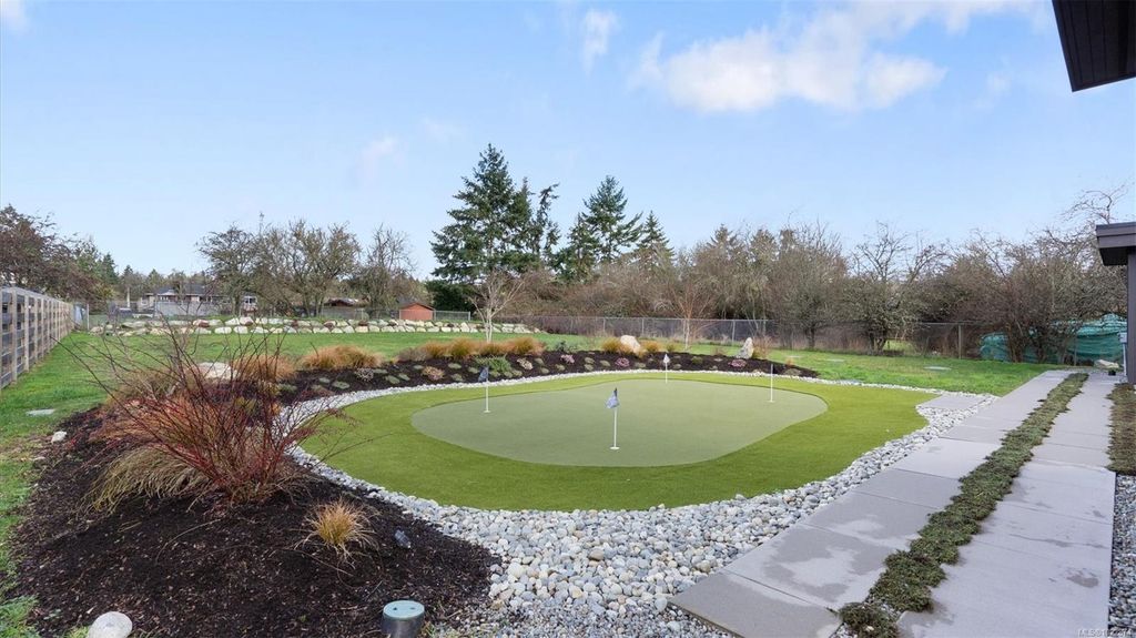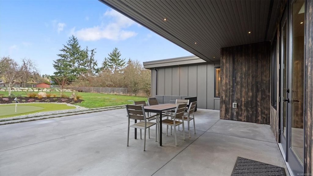 Exceptional custom-built rancher in a quiet North Saanich neighbourhood, surrounded by beaches, parks, and scenic outdoor spaces. Completed in 2022 and designed by the builder/developer for their own residence, this home showcases thoughtful design, quality craftsmanship, and timeless mid-century modern styling. Set on a private, south-facing half-acre lot, the home offers nearly 2,800 sq ft of bright, one-level living. The open floor plan is filled with natural light and designed for both comfortable everyday living and effortless entertaining. Energy-efficient construction and clean architectural lines provide modern, low-maintenance living. Outdoor spaces include expansive patios and a private putting green, ideal for relaxing and hosting. Peacefully located yet close to amenities, this is a rare opportunity to own a nearly new, custom home in one of North Saanich’s most desirable areas.