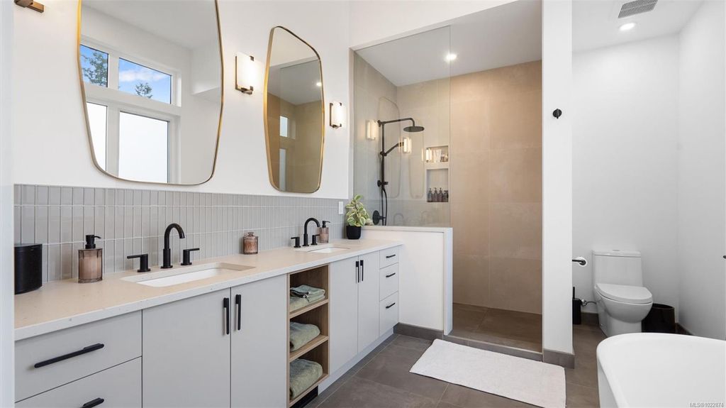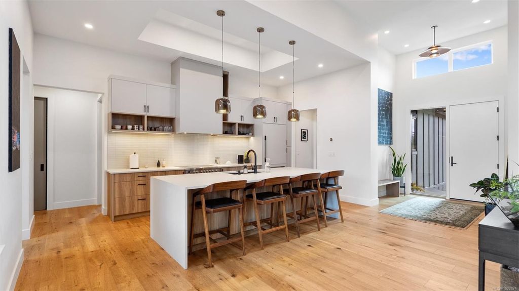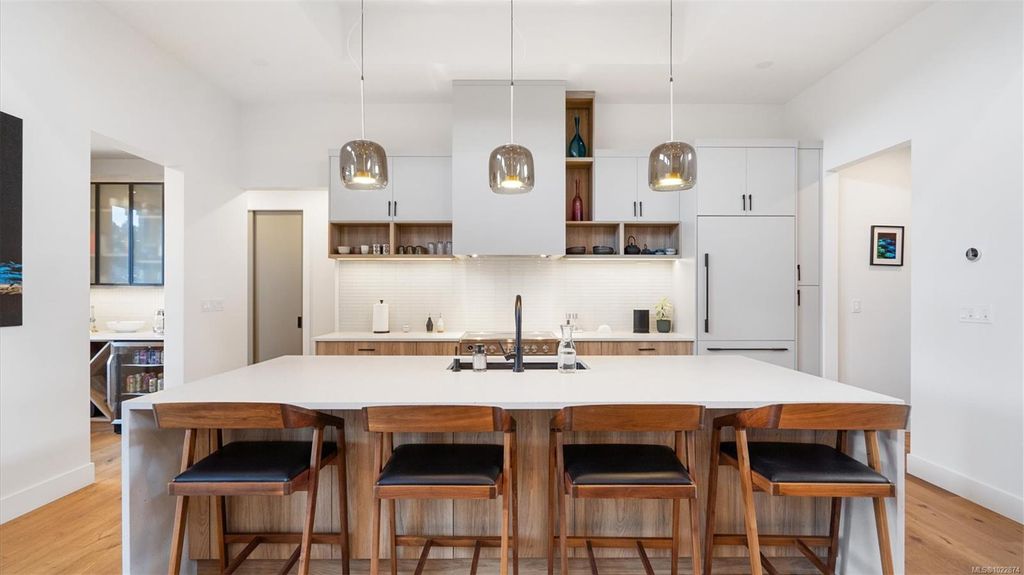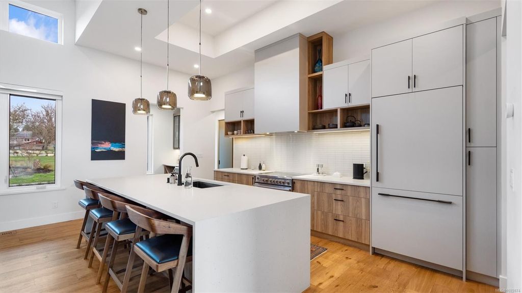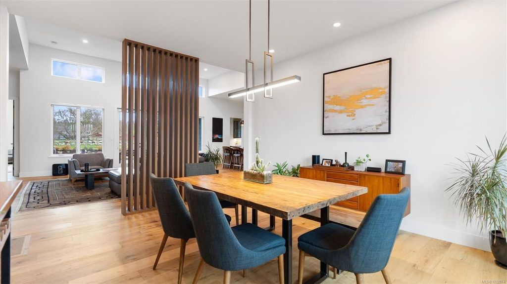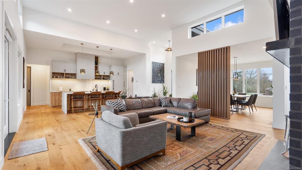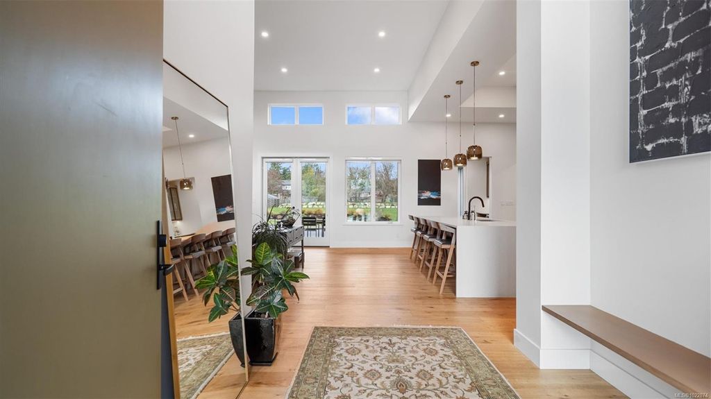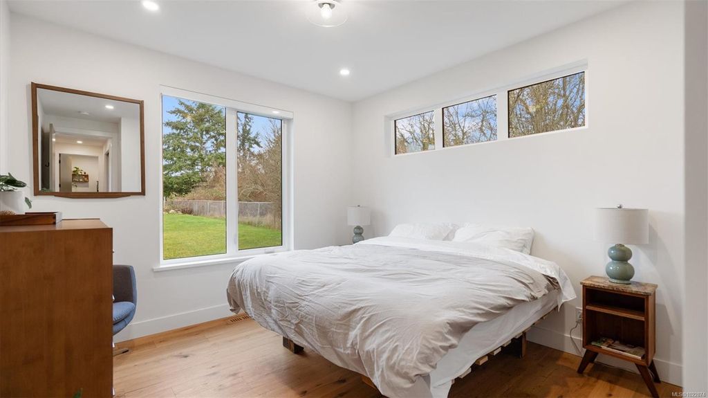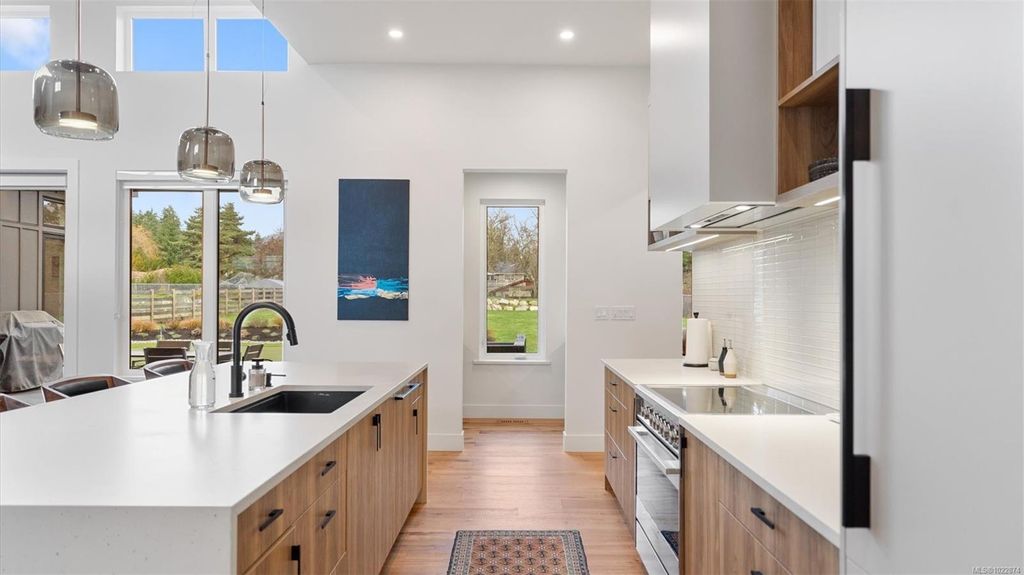 Exceptional custom-built rancher in a quiet North Saanich neighbourhood, surrounded by beaches, parks, and scenic outdoor spaces. Completed in 2022 and designed by the builder/developer for their own residence, this home showcases thoughtful design, quality craftsmanship, and timeless mid-century modern styling. Set on a private, south-facing half-acre lot, the home offers nearly 2,800 sq ft of bright, one-level living. The open floor plan is filled with natural light and designed for both comfortable everyday living and effortless entertaining. Energy-efficient construction and clean architectural lines provide modern, low-maintenance living. Outdoor spaces include expansive patios and a private putting green, ideal for relaxing and hosting. Peacefully located yet close to amenities, this is a rare opportunity to own a nearly new, custom home in one of North Saanich’s most desirable areas.