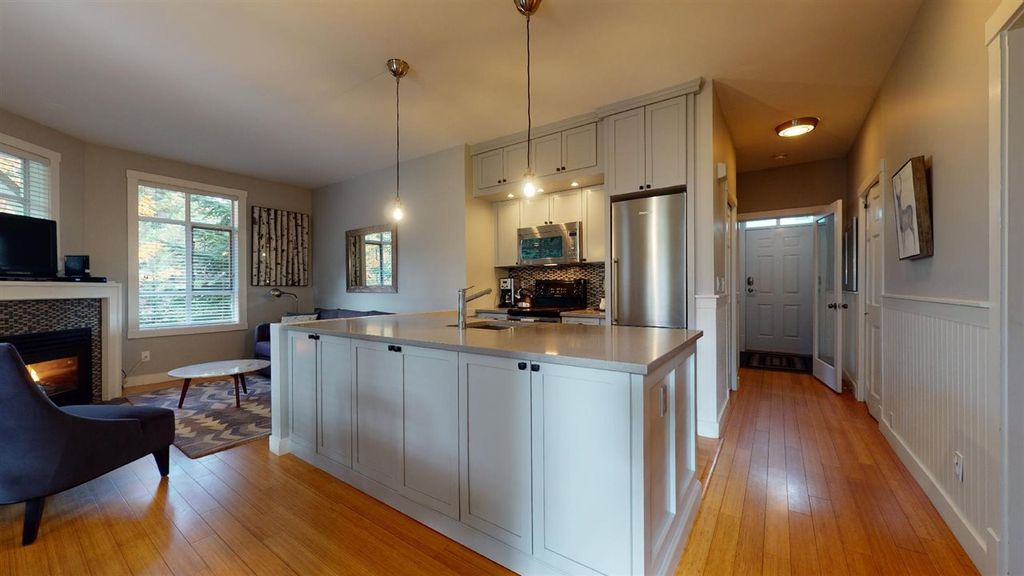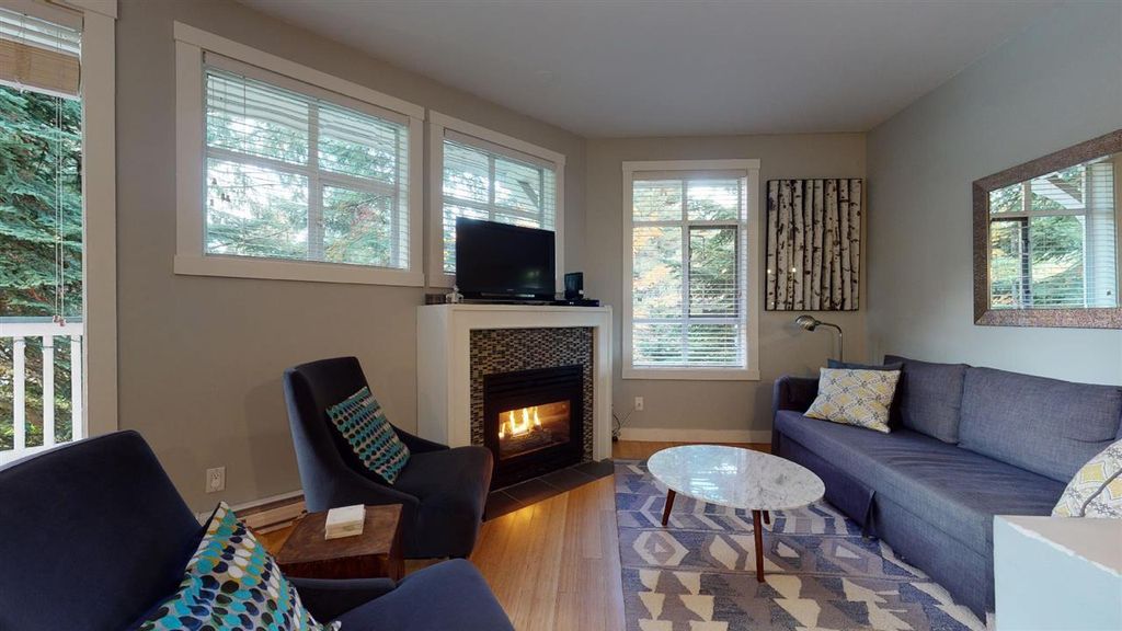 Beautifully appointed, renovated 2 bedroom, 2 bathroom, end unit townhome is located in a quiet treed location with peekaboo views of both Whistler & Blackcomb Mountains. Fully furnished with gas fireplace, full kitchen, granite countertops, and outdoor deck space. Walk to Whistler Village, shops and restaurants. Full time living or nightly rental options available.