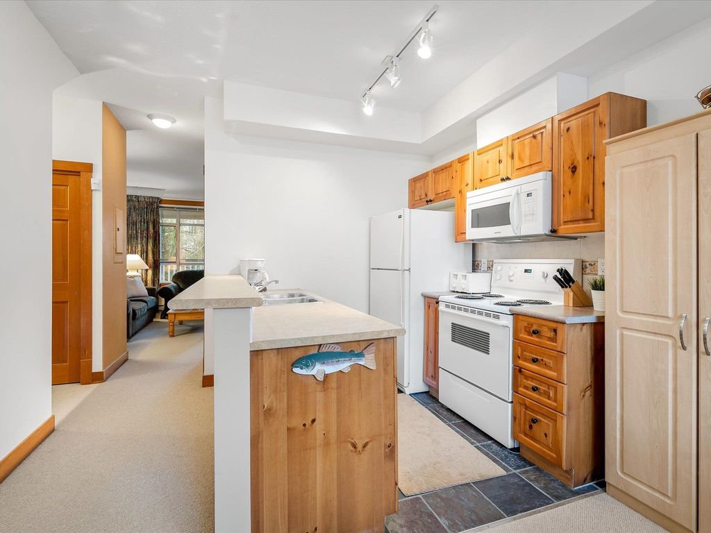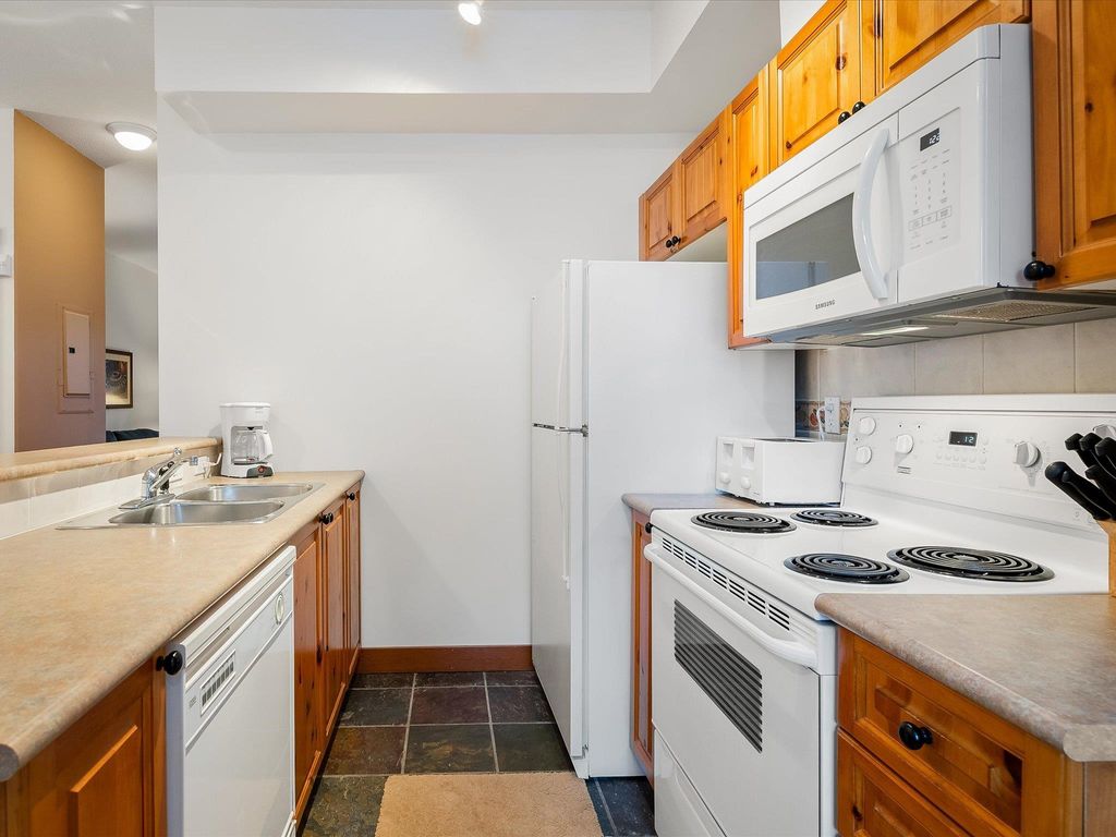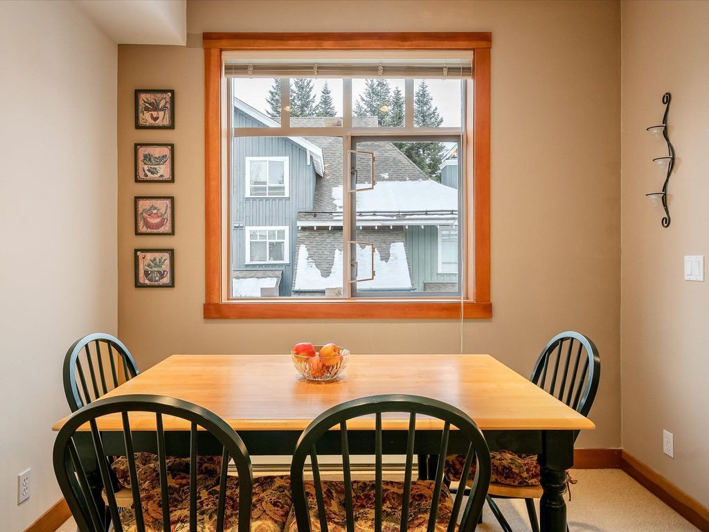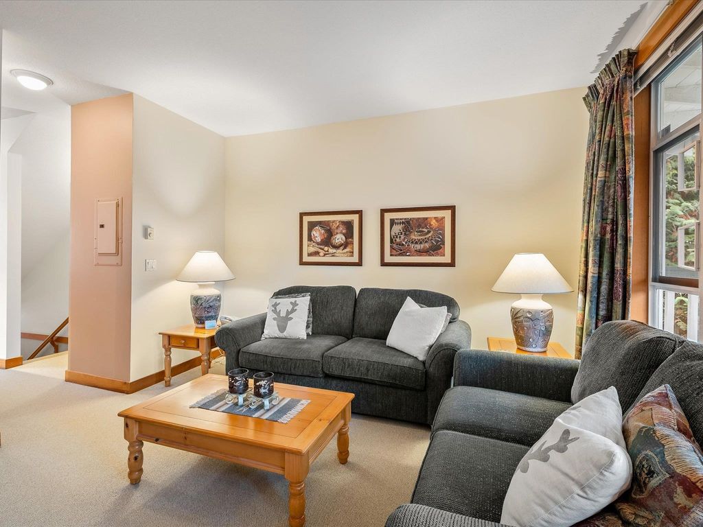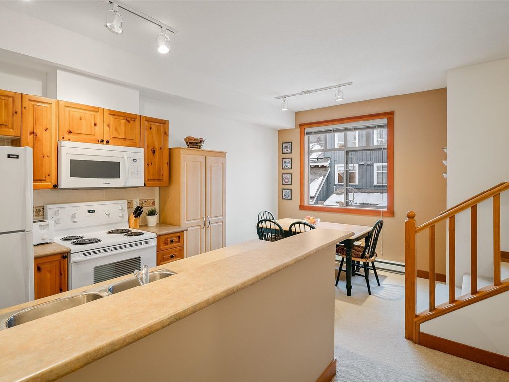 Welcome to Granite Court 203, a beautiful and cozy 2 bedroom, 2 bth townhome with mountain views! Granite Court is a fabulous village location just on the outskirts so owners or guests are close enough to all the action but enjoy a private, quiet and well maintained complex. Ideal floor plan has the 2 bedrooms and bathrooms on the top floor with vaulted ceilings. The main floor has the kitchen, living and dining where you can gaze at the runs over dinner! This townhome is being sold furnished & offers secured underground parking and bike/ski storage. Flexible phase 1 zoning allows for nightly rentals or unlimited owner use. Revenue projections available upon request. Original owners occupy this immaculate unit part time and have never rented. GST is not applicable.