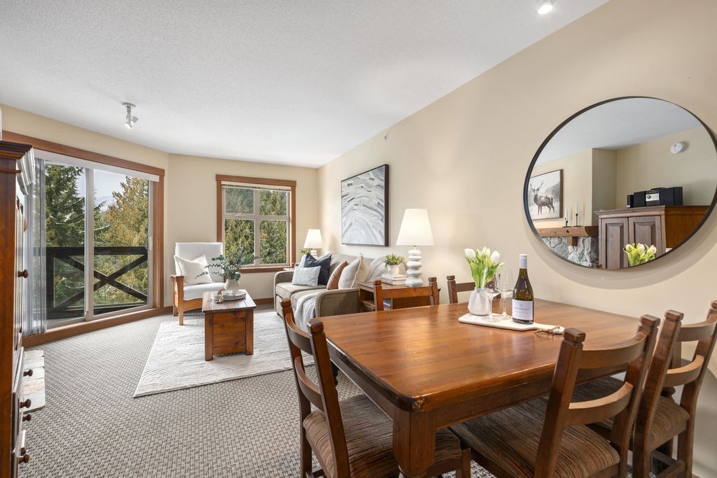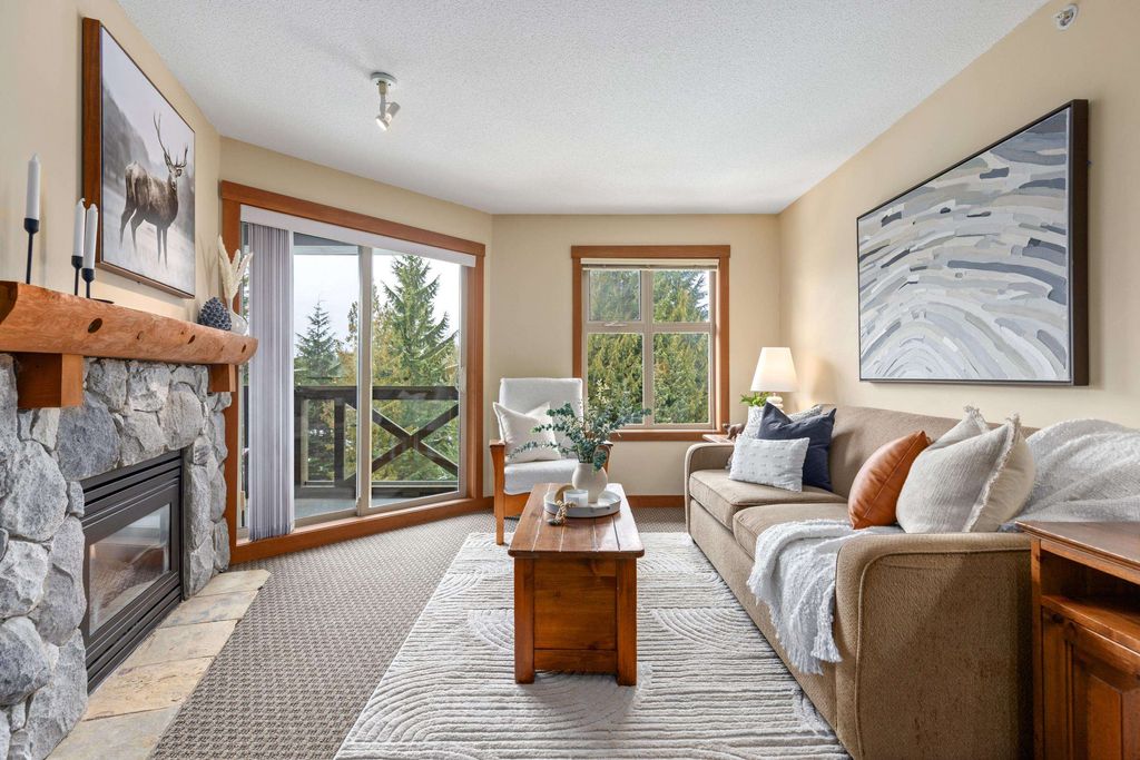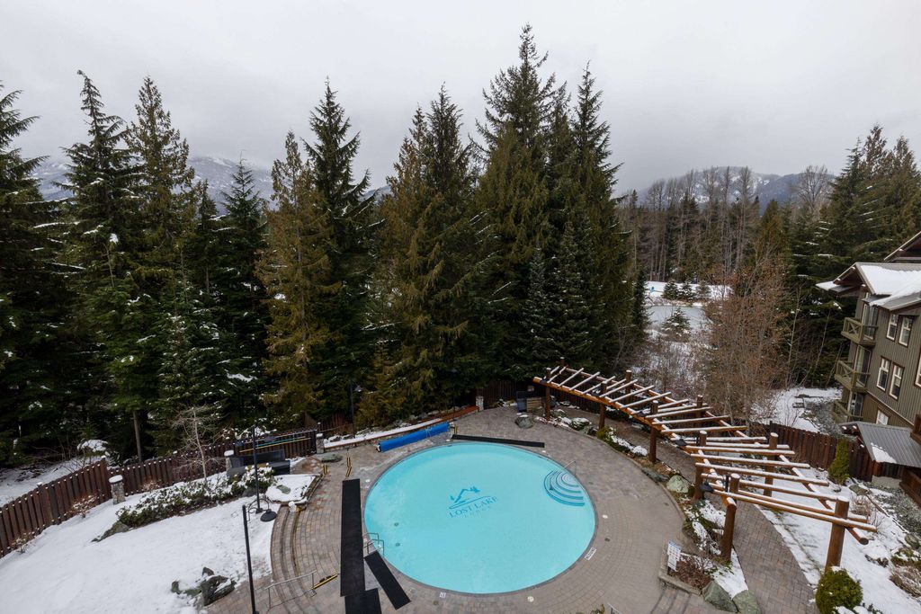 Experience the ultimate alpine lifestyle in this immaculate top-floor retreat at Lost Lake Lodge. This 560 sq. ft. 1-bedroom, 1-bathroom residence offers a bright and airy atmosphere. The open-concept living area features a cozy gas fireplace, perfect for relaxing after a day of mountain adventures. Step out onto your private balcony to enjoy serene views overlooking the year-round heated pool and hot tub, framed by mountain views. Located in the prestigious Benchlands, you are steps from Lost Lake trails and the free Village shuttle. This property features Phase 1 zoning, allowing for nightly rentals or unlimited personal use. Building amenities include a fitness center, hot tub, pool, and secure parking. Whether seeking a turn-key investment or a personal getaway, this suite delivers.