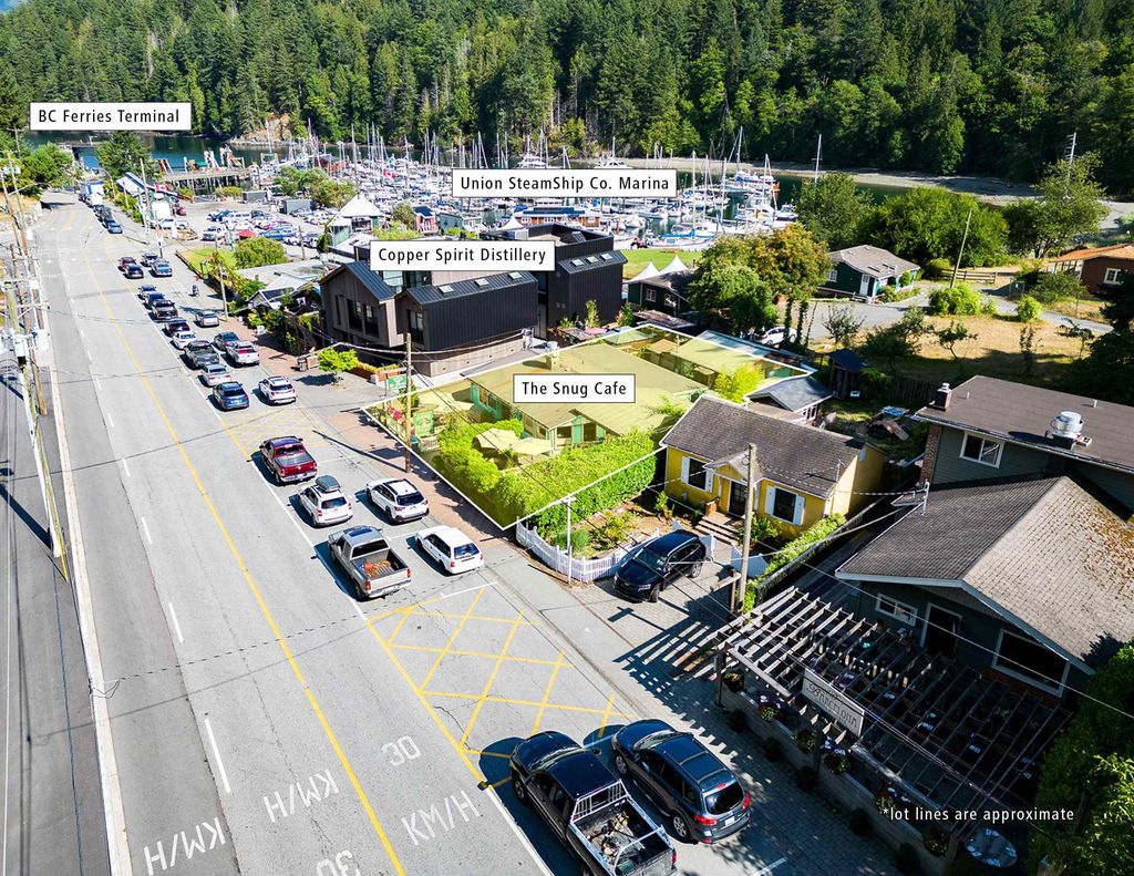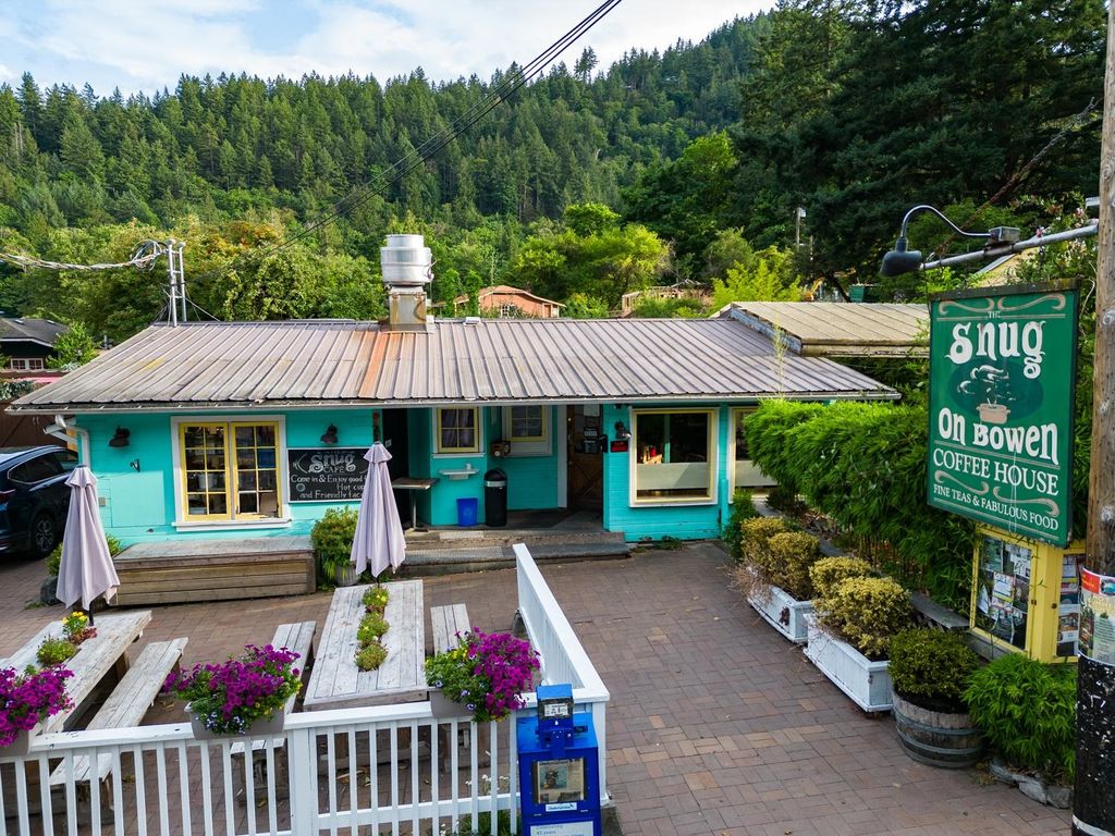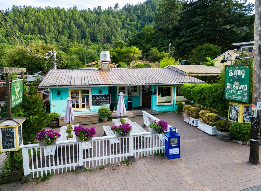 Rare offering and investment opportunity in the heart of Snug Cove. A double sized commercial zoned property within easy walking distance to the ferry, marinas and other Snug Cove amenities. Well established and storied business, The Snug Cafe, currently occupies the property plus a seasonal garden & landscaping business sits behind a fenced and gated area. An on-site housing option with an existing one bedroom, one bath cottage is tucked behind the main building. A prime property for future development into a mixed use space (retail, office, restaurant, guest accommodations, dwelling). The Snug Cafe is also 'For Sale' allowing for added investment options. A new Medical Centre & Community Centre nearby, further adding to the vibrancy of Snug Cove.
