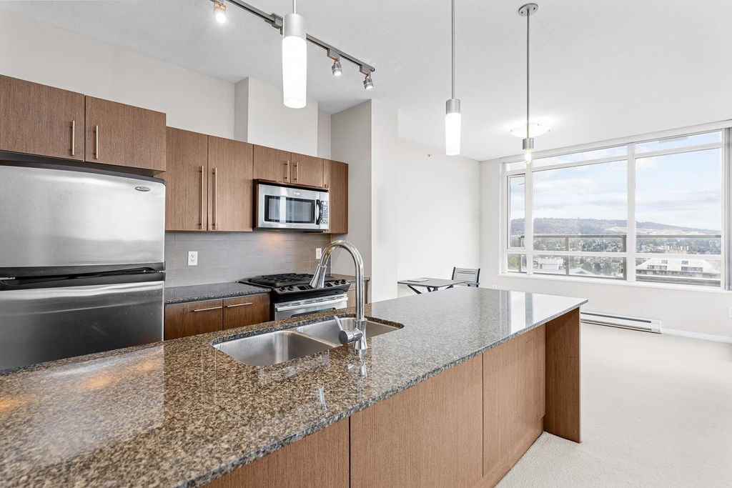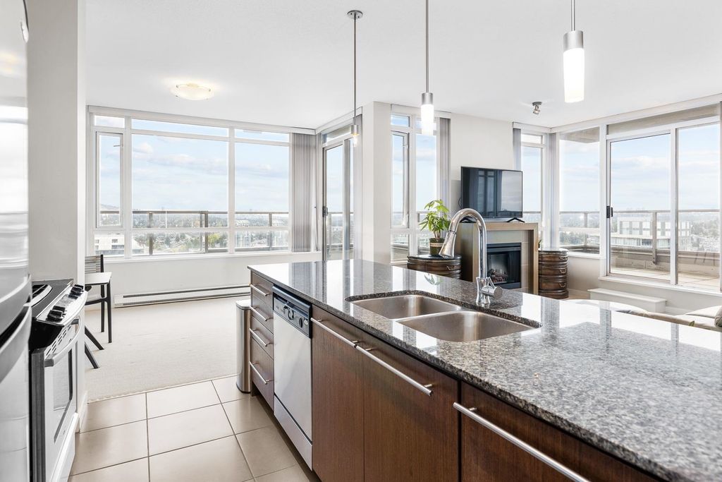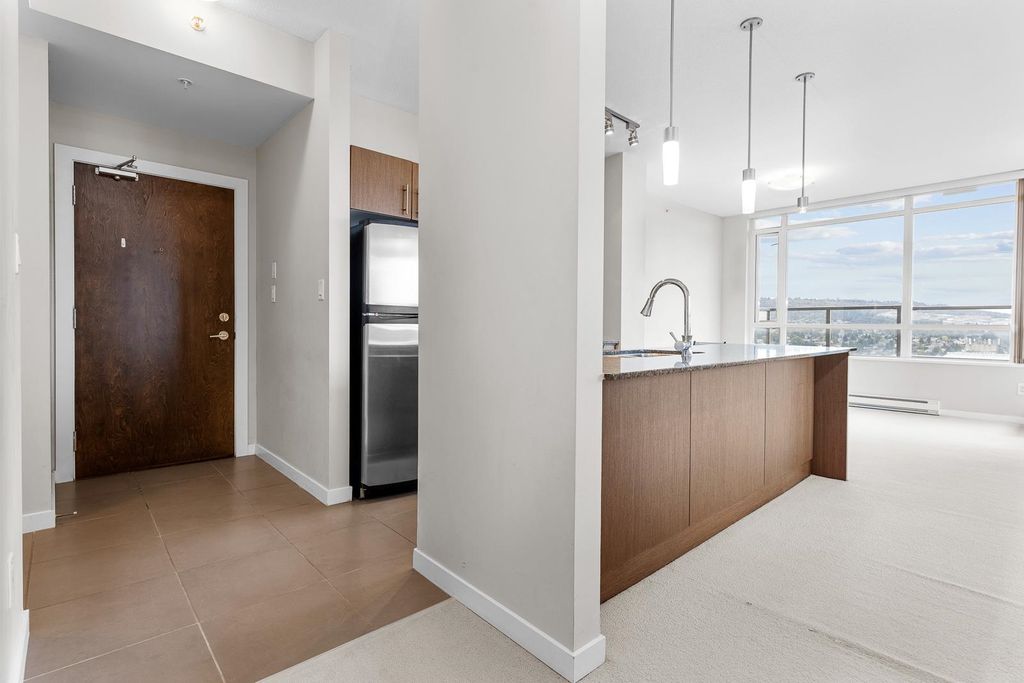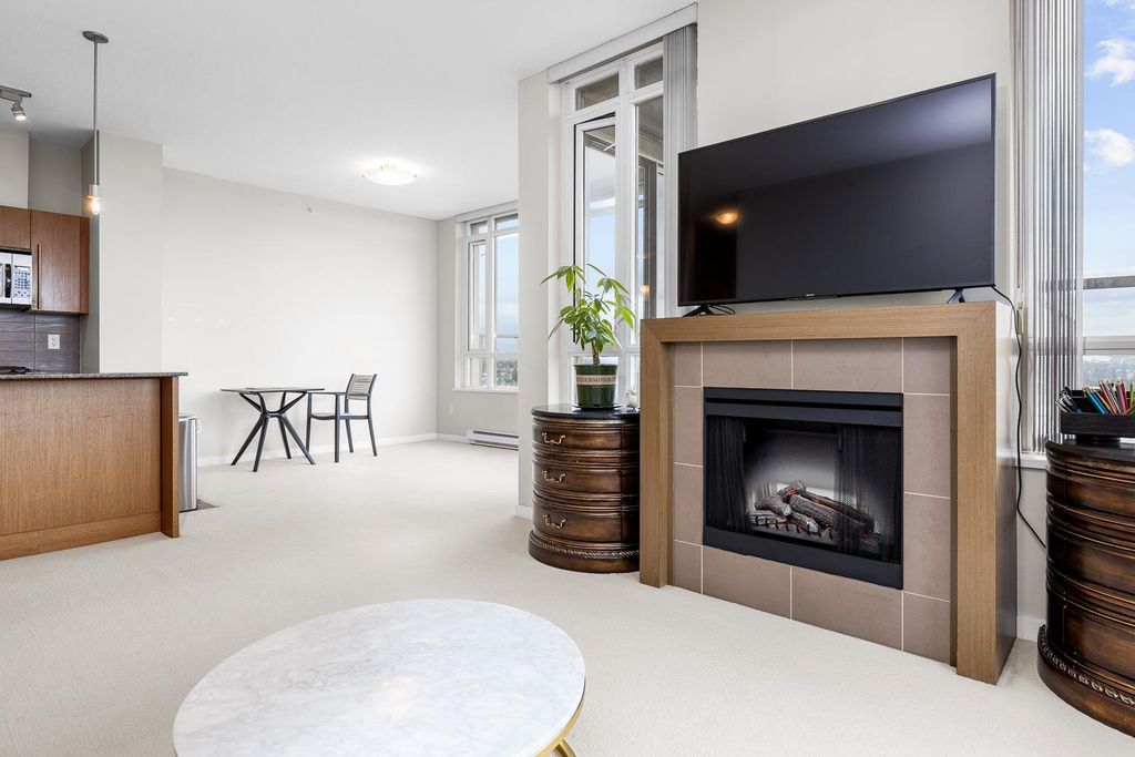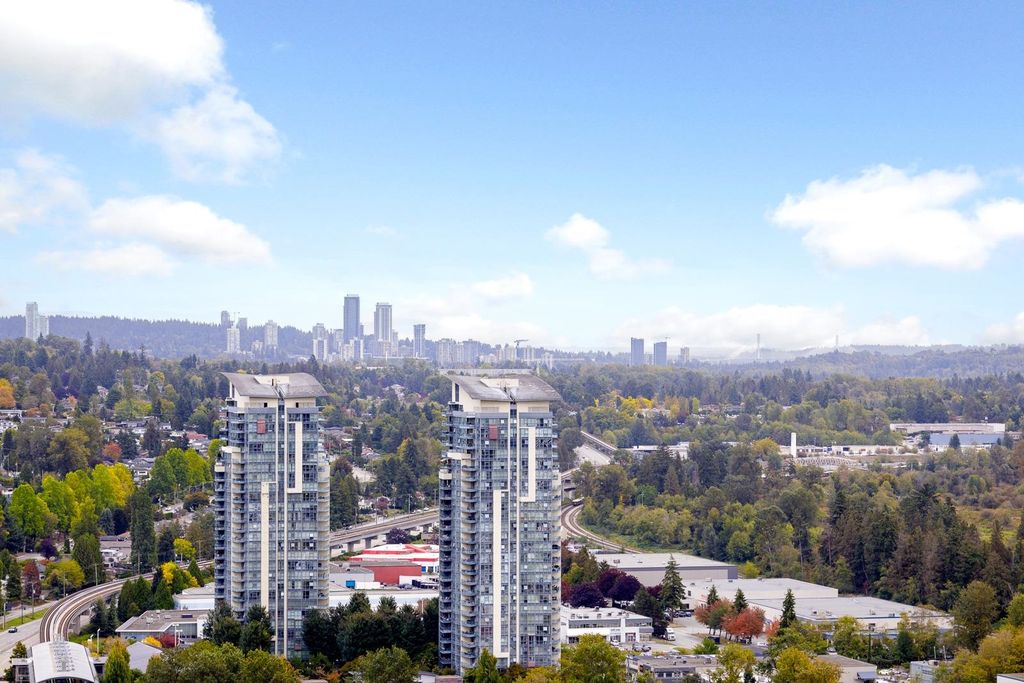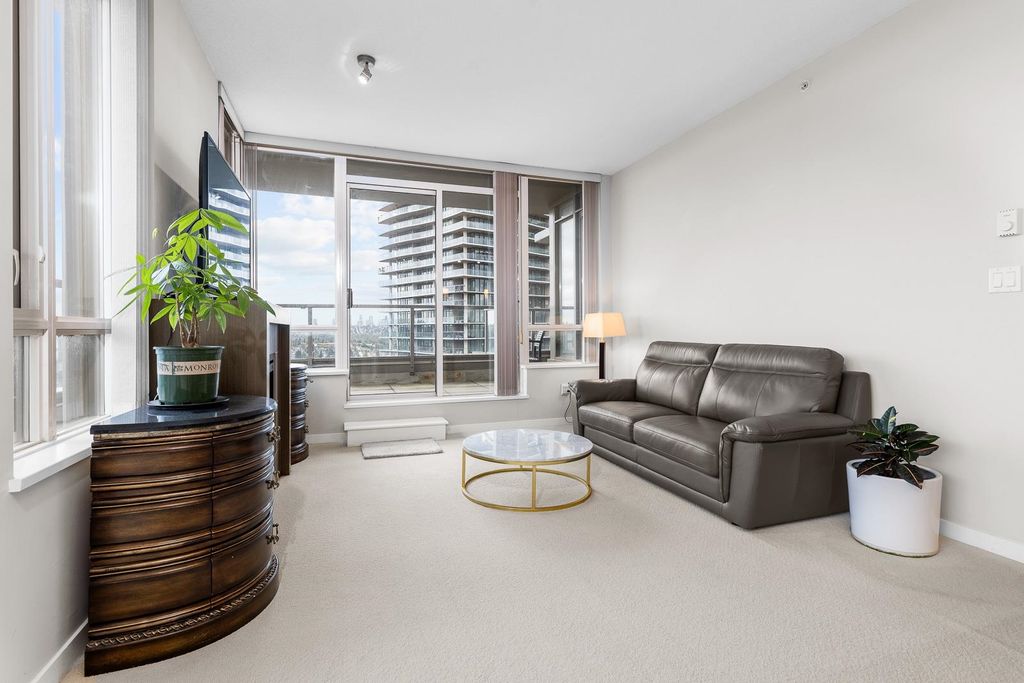 Discover pure luxury in this 2-bed, 2-bath sub-penthouse, where a captivating south-east corner unit offers mesmerizing views of Mt. Baker from its oversized terrace. Elegance abounds in this pristine space, maintained to perfection by its owner. The generous living and dining areas are tailor-made for grand entertaining. This architectural gem by Ledingham McAllister is conveniently located near Brentwood Mall. This sub-penthouse is sparingly used as a vacation home, feels brand new — a rare find in the real estate market. Your slice of timeless luxury awaits. NEW carpet and painting. Elementary School: Brentwood Park Elementary Secondary School: Alpha Secondary