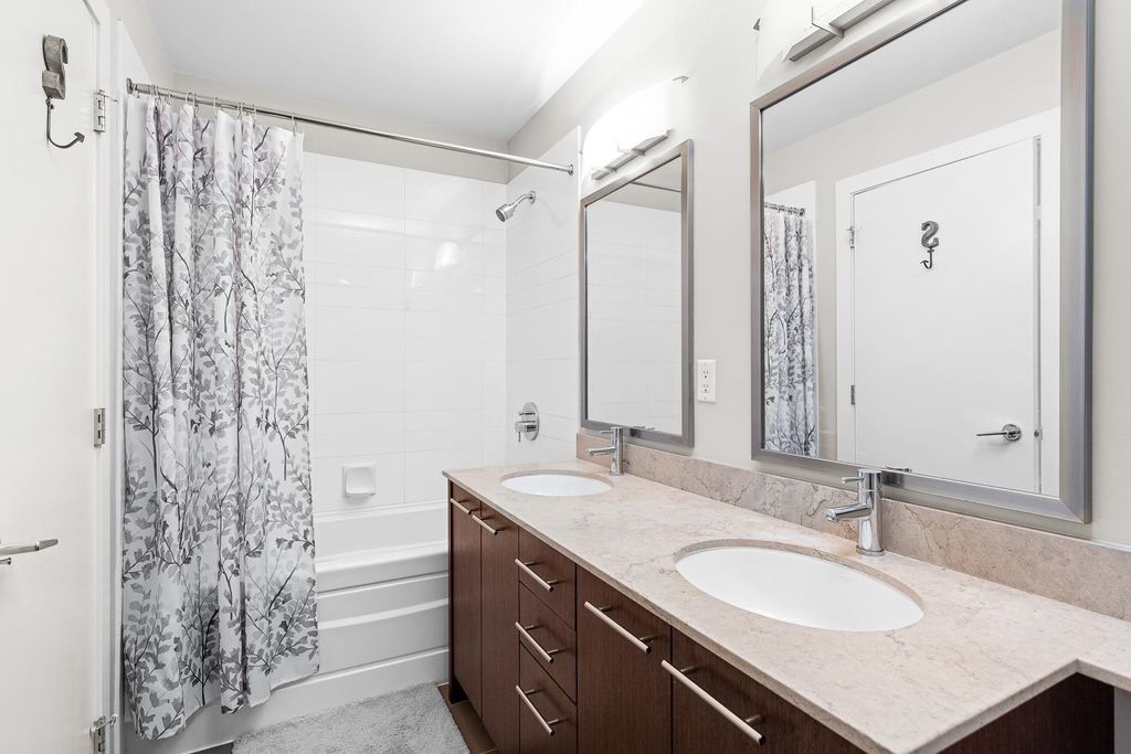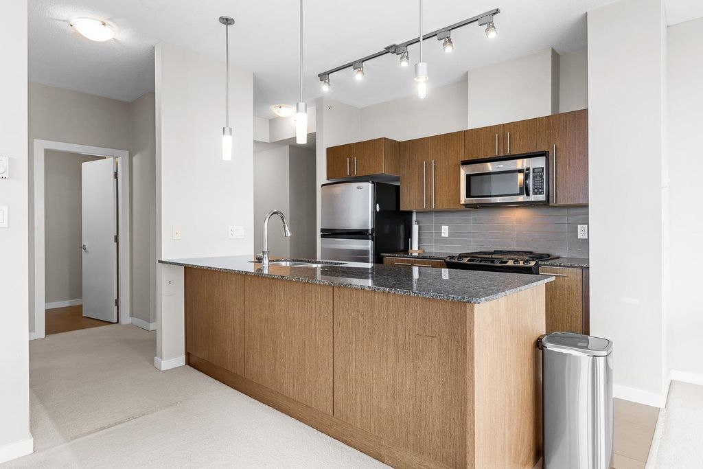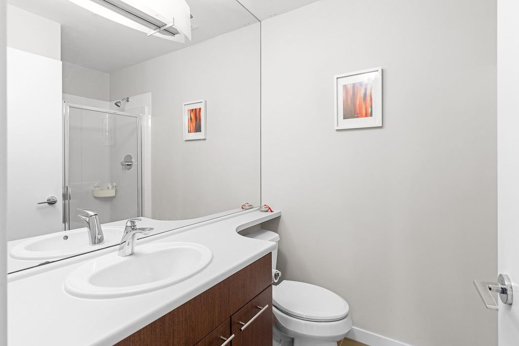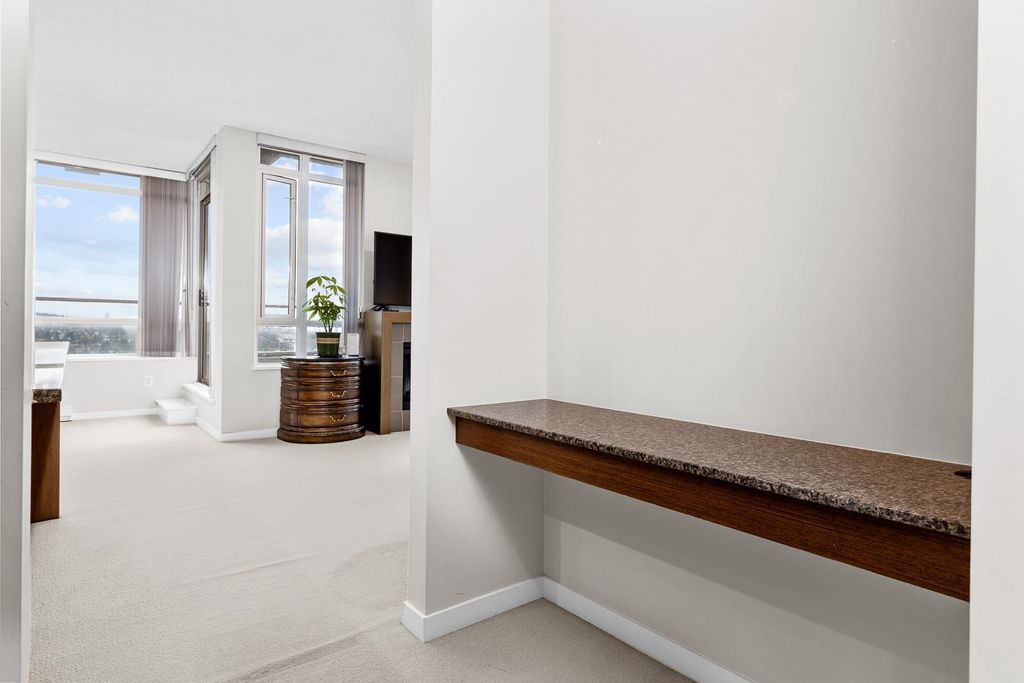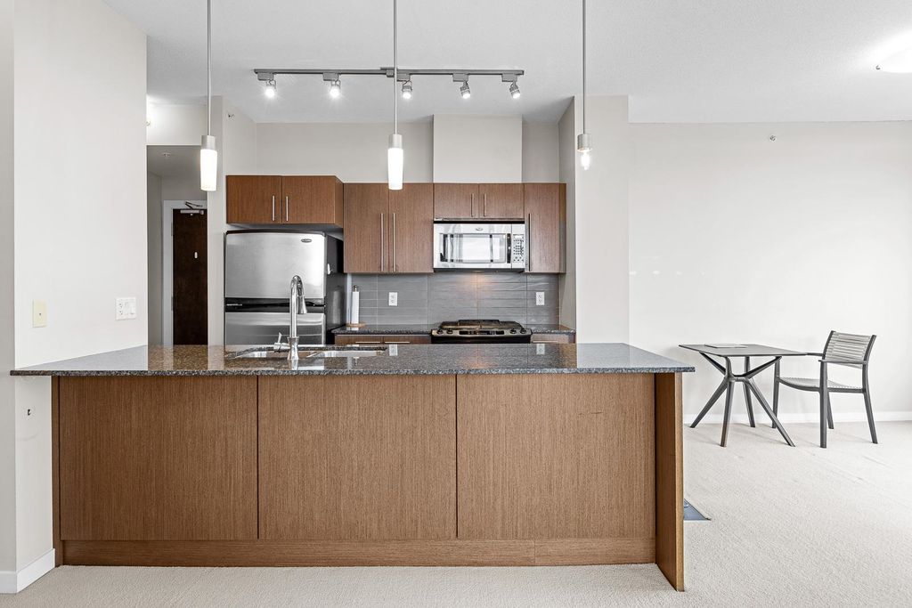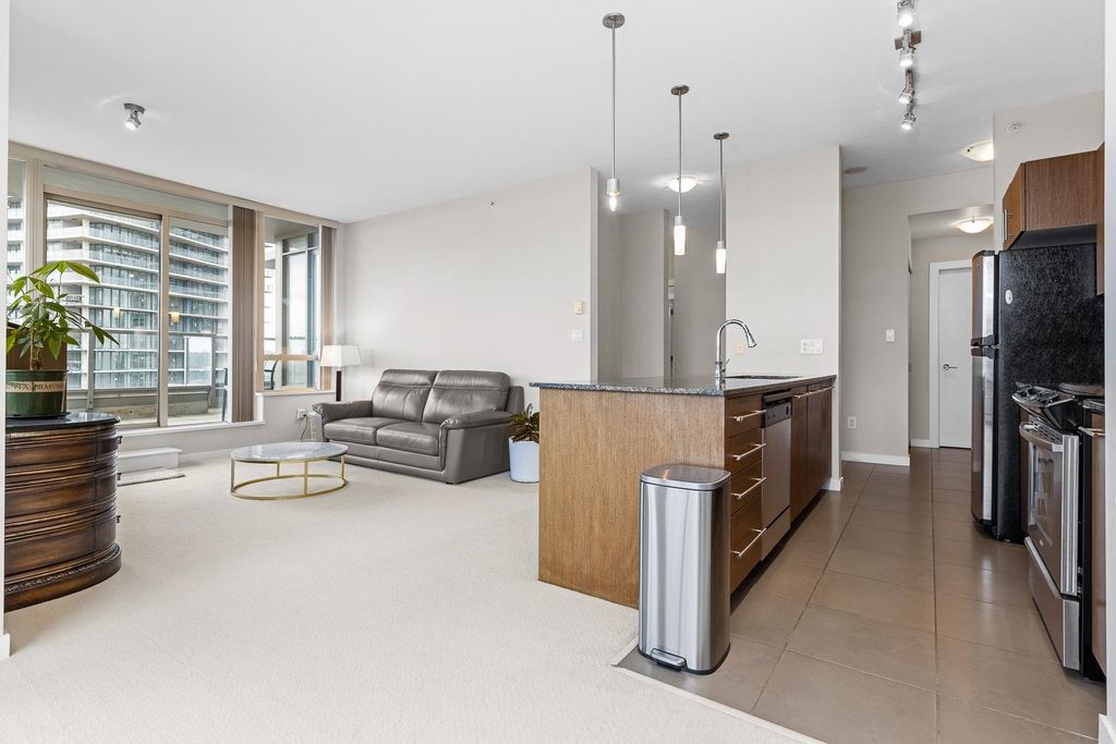 Discover pure luxury in this 2-bed, 2-bath sub-penthouse, where a captivating south-east corner unit offers mesmerizing views of Mt. Baker from its oversized terrace. Elegance abounds in this pristine space, maintained to perfection by its owner. The generous living and dining areas are tailor-made for grand entertaining. This architectural gem by Ledingham McAllister is conveniently located near Brentwood Mall. This sub-penthouse is sparingly used as a vacation home, feels brand new — a rare find in the real estate market. Your slice of timeless luxury awaits. NEW carpet and painting. Elementary School: Brentwood Park Elementary Secondary School: Alpha Secondary
