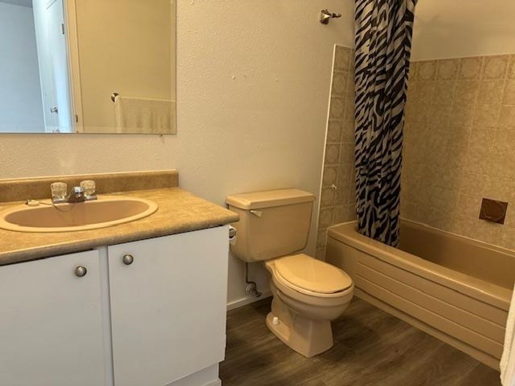 Brand new floors and paint and ready for the new owners! Terra Vista is home to this spacious 2 BDRM apartment style condo with a sunny city view. Almost 900 sq. ft.! This development has recently completed major building upgrades including windows, deck sliding door, siding, deck/railings. Air conditioner in living room is included to keep you comfortable. Handy storage room in unit for your belongings. Designated parking spot included for your use only. Great location close to many walking trails, park, shopping, even Starbucks! Pet allowed for owner occupied residents (upon approval). Rental pool available for investors.
