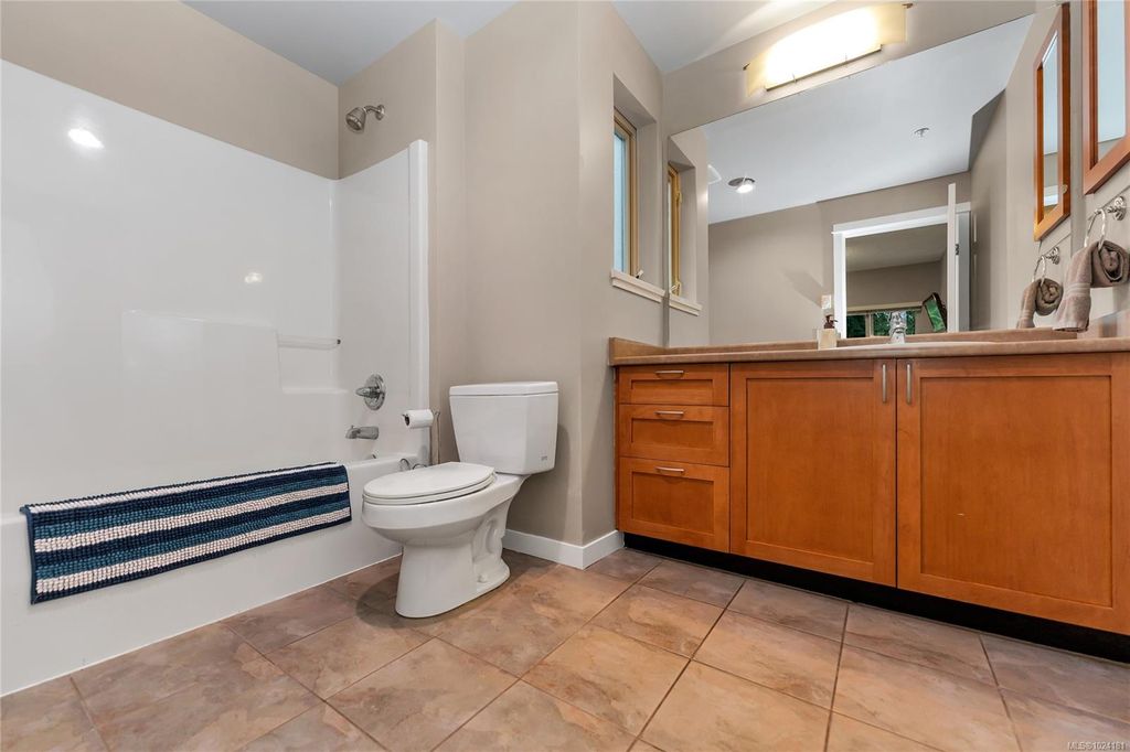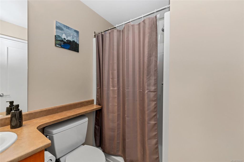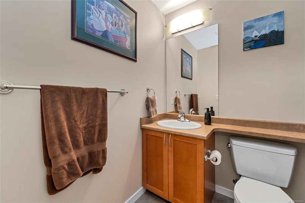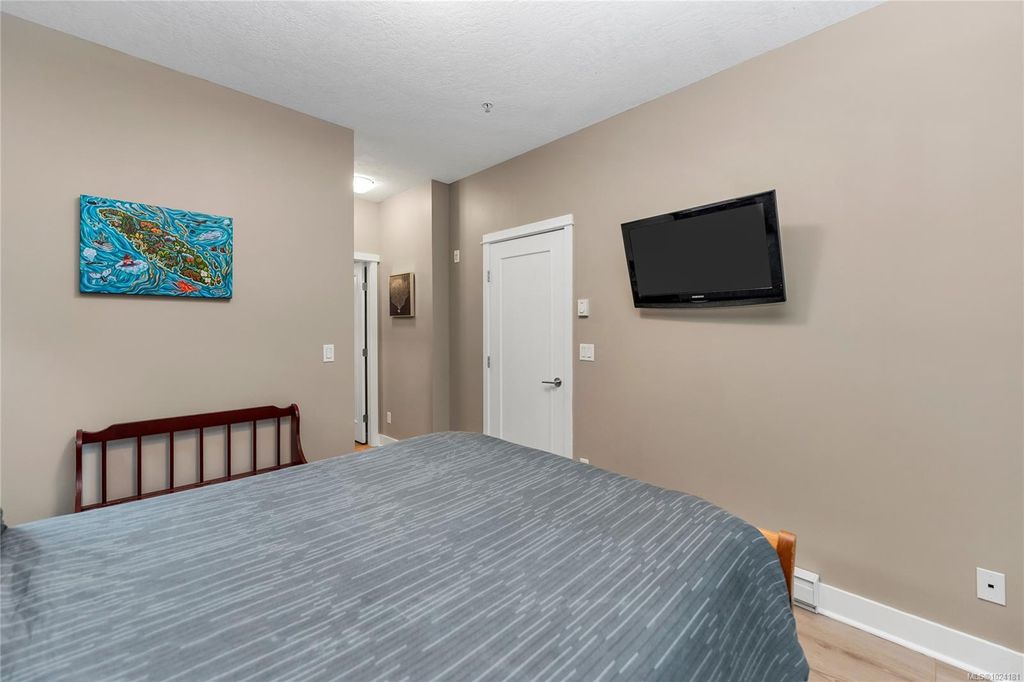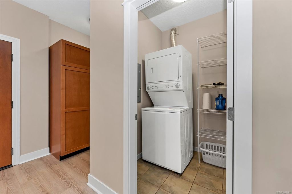 This 2 bedroom 2 bathroom home offers over 850 sq ft. Spacious Kitchen with maple shaker cabinets, stone counters with tile backsplash, stainless appliances, and breakfast bar. Good sized living room with access to the covered deck. Generous master bedroom with walk in closet and full ensuite. Second bedroom and bathroom, insuite laundry room, Fresh paint and flooring. Cozy SOUTH facing corner suite overlooking the bucolic pedestrian wildlife corridor. Steps to the Red Barn Market, Pharmacy, and Olympic View Golf Course. Short stroll to the vibrant Beach Lands Waterfront. Your Realtor can access more information and assist you on your private showing. Please have them call.