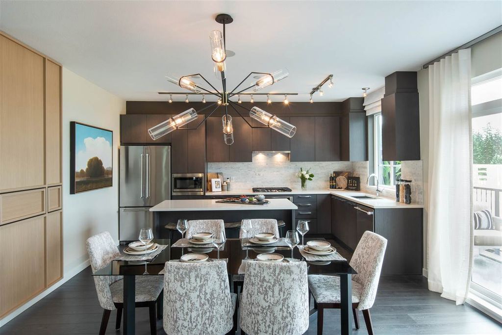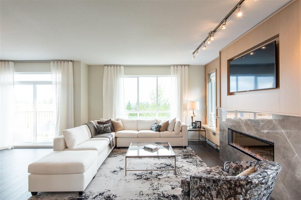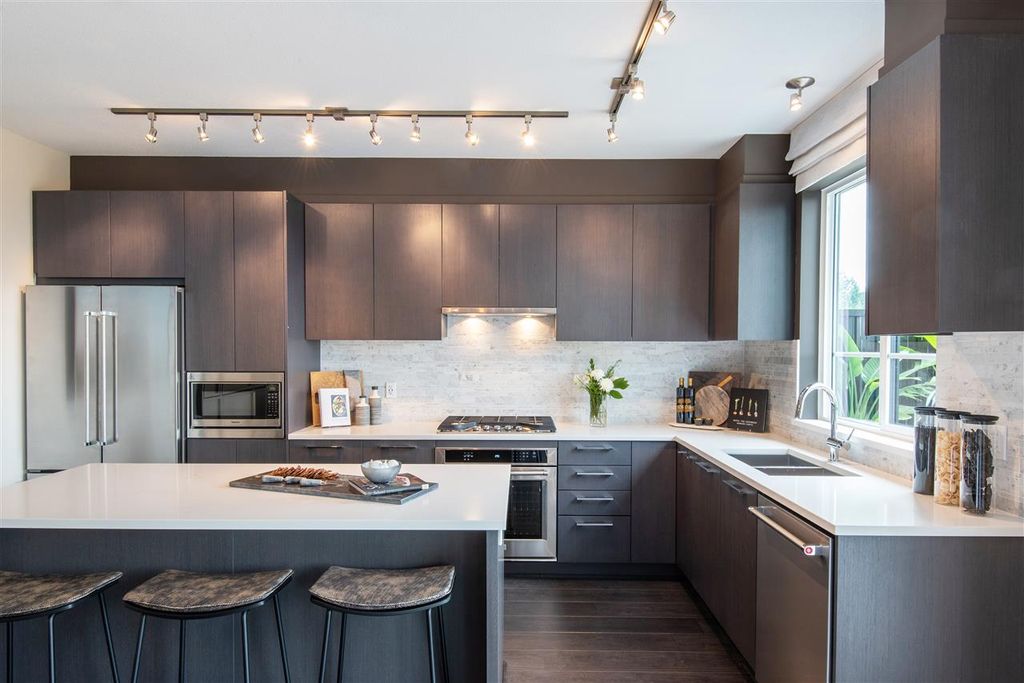 This 4 bed 3.5 bath townhome at Polygon's Kentwell belongs to a collection of Tudor-style townhomes nestled in Coquitlam's Burke Mountain neighbourhood. Enjoy 2,153 sq.ft. of living space with overheight main floor ceilings, laminate wood flooring, expansive windows, and your own deck and patio. Come home to your ground level side-by-side double car garage. The gourmet kitchen boasts custom-designed cabinetry, stainless steel appliances, stone countertops, full-height marble tile backsplash, and a generous island. Upstairs, the luxurious master ensuite features both a spa shower and a luxurious soaker tub. Visit our sales office at 3500 Burke Village Promenade, open noon - 6pm daily (except Friday), to learn more.