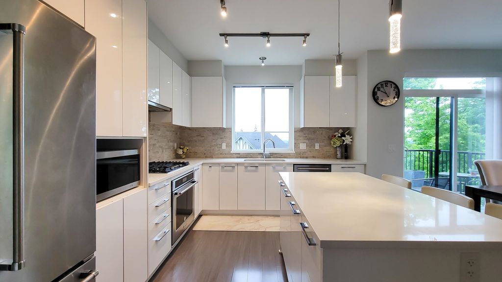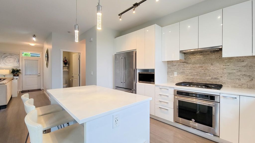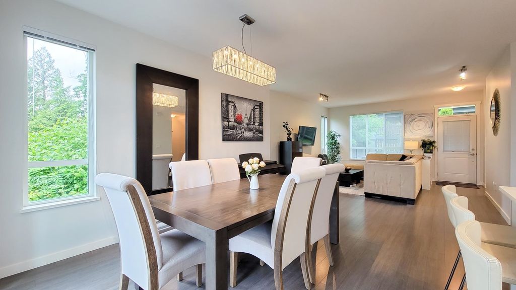This well kept 1,713 sq.ft. 4 bed 2.5 bath corner home belongs to a collection of townhomes nestled in nature at Polygon's Kentwell in Coquitlam's Burke Mountain. This home boasts an open-concept layout, over height ceilings, expansive windows with views overlooking a protected natural habitat and the park. Spacious chef's kitchen with full entertainment Island and sleek appliances matches custom-designed cabinetry - perfect for gatherings! Enjoy a side-by-side double car garage with convenient storage. https://youtu.be/urs1JYZiYX8