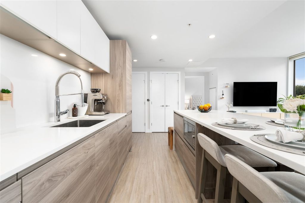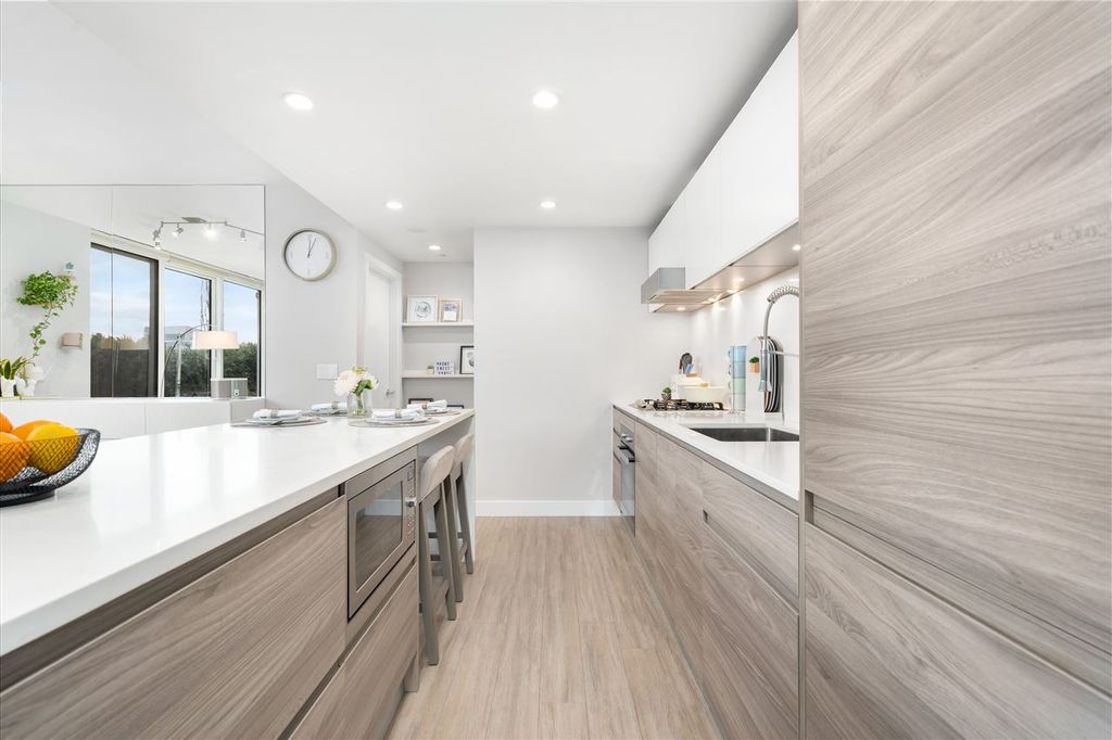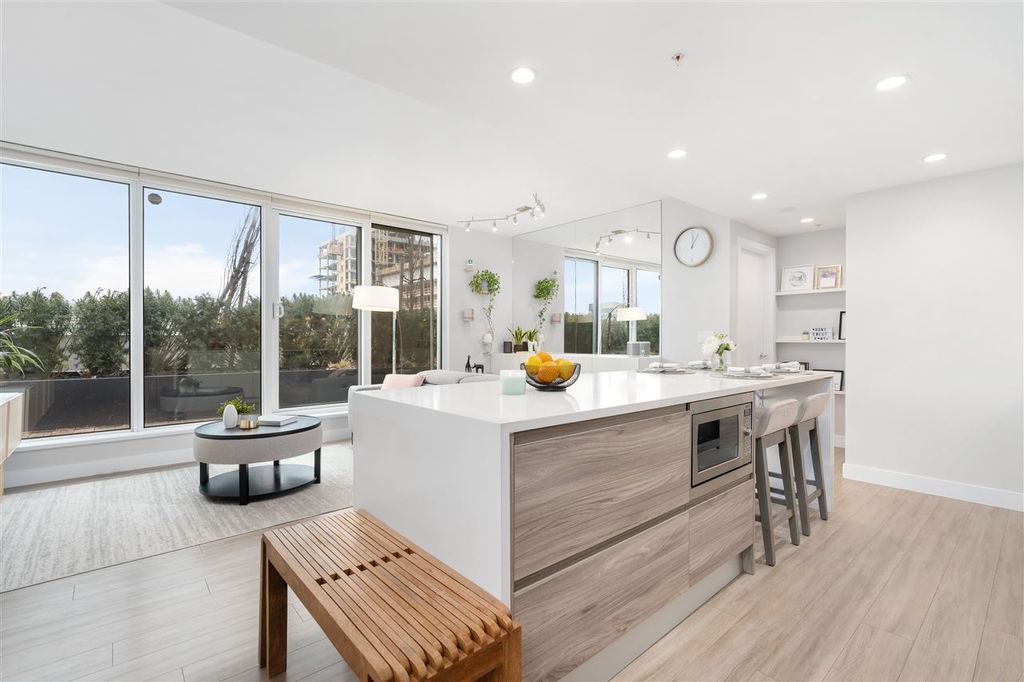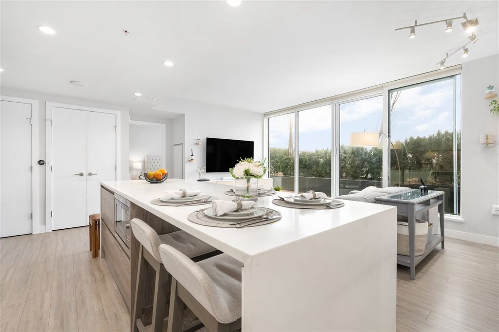 Welcome to ‘ELLE’ Find true Boutique living here with only 65 residences in the heart of Richmond downtown. This corner-unit home is uniquely situated on the garden podium with no wasted space. The AIRY floor-to-ceiling windows faces NORTH & WEST, perfect for afternoon/sunset-lovers! Comes with a well-equipped kitchen with Miele appliances featuring gas cooktop. Amenities include gym, meeting room, community garden, and playground. This is a unit with $50k of added upgrades and Developer VIP Perks + Smart-homed (light switches and motorized blinds), custom 9-foot "Social" Kitchen Island, 2 Lockers + 2 Parking stalls, both are arranged side by side (RARE)! Pet and Rentals Allowed. Call to book your appointment today!