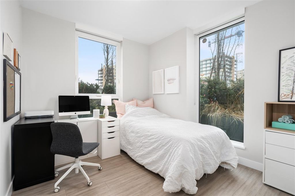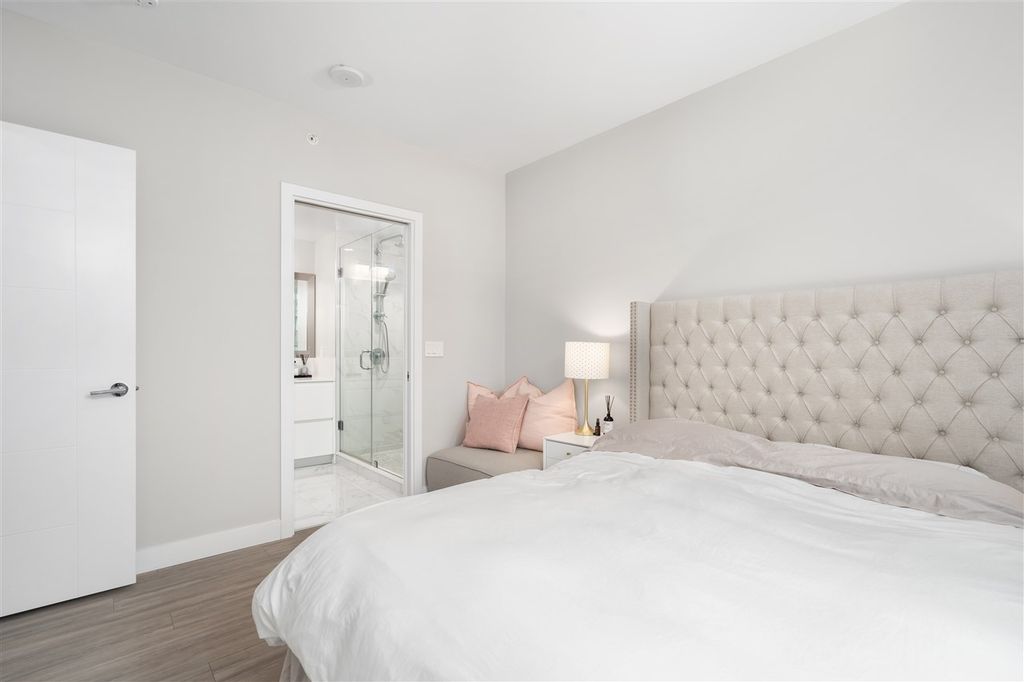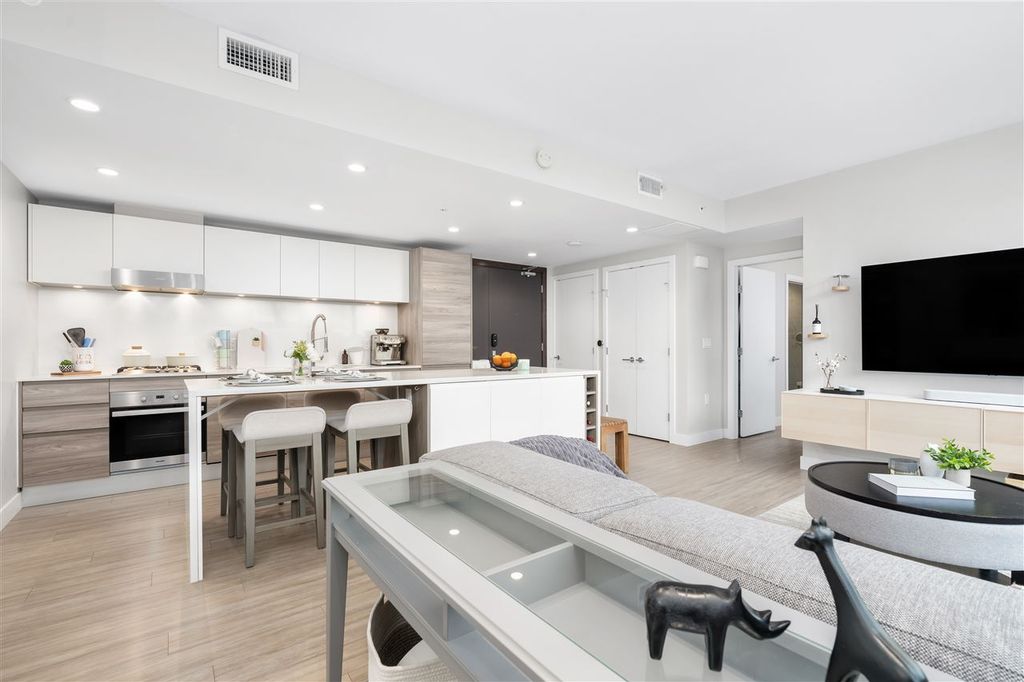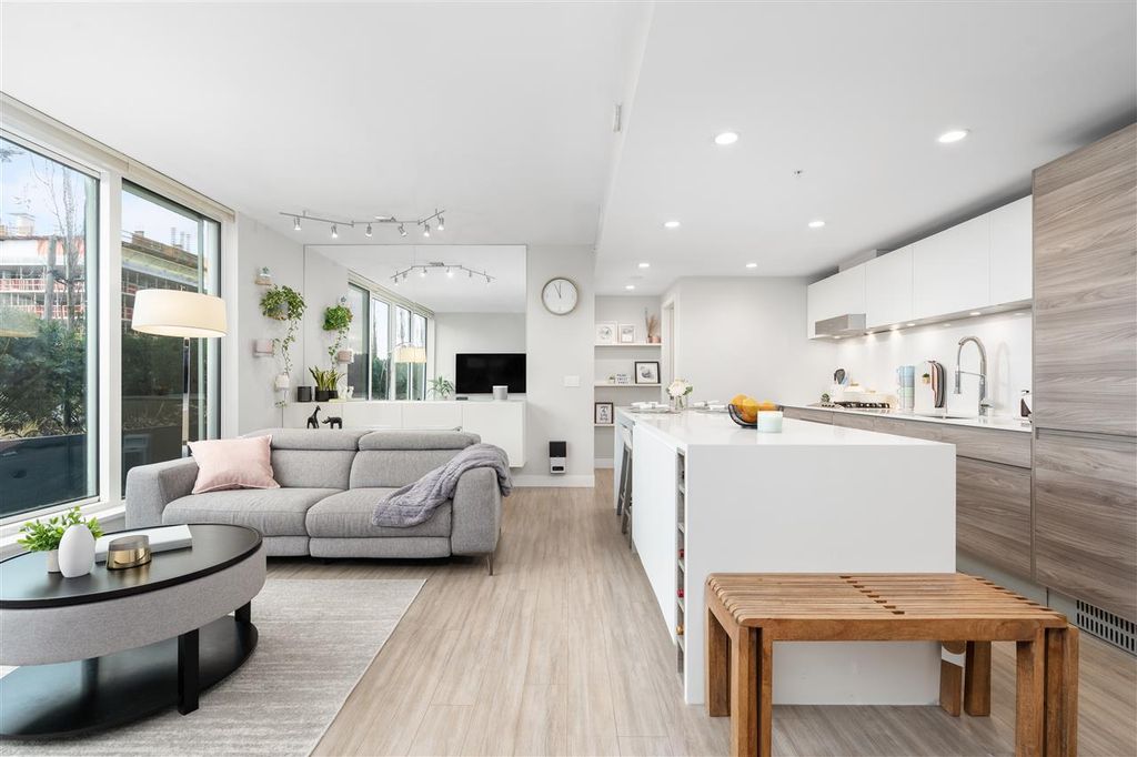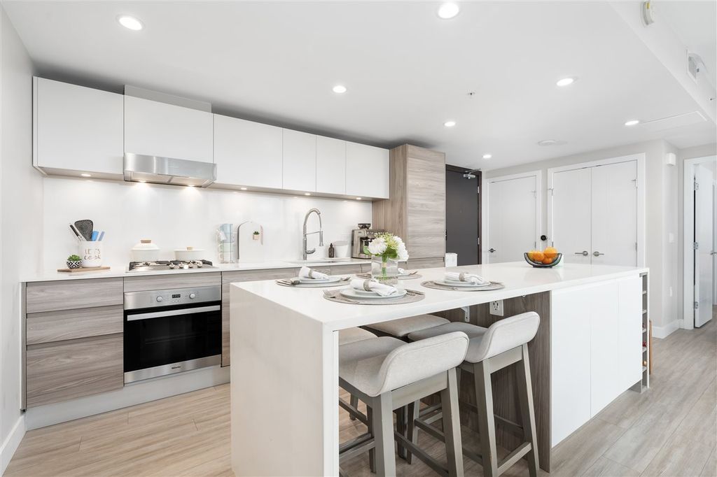 Welcome to ‘ELLE’ Find true Boutique living here with only 65 residences in the heart of Richmond downtown. This corner-unit home is uniquely situated on the garden podium with no wasted space. The AIRY floor-to-ceiling windows faces NORTH & WEST, perfect for afternoon/sunset-lovers! Comes with a well-equipped kitchen with Miele appliances featuring gas cooktop. Amenities include gym, meeting room, community garden, and playground. This is a unit with $50k of added upgrades and Developer VIP Perks + Smart-homed (light switches and motorized blinds), custom 9-foot "Social" Kitchen Island, 2 Lockers + 2 Parking stalls, both are arranged side by side (RARE)! Pet and Rentals Allowed. Call to book your appointment today!