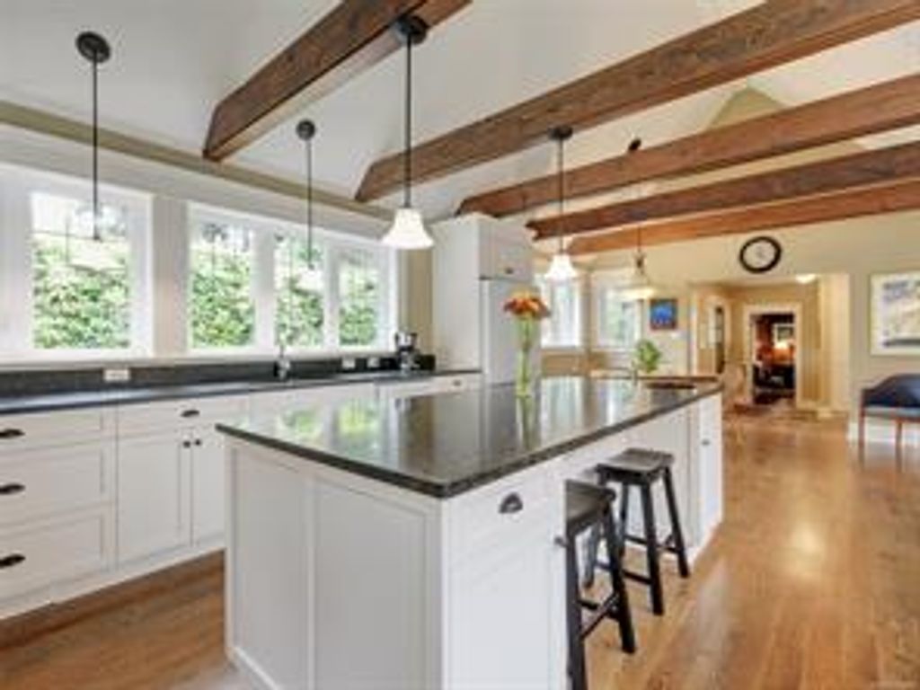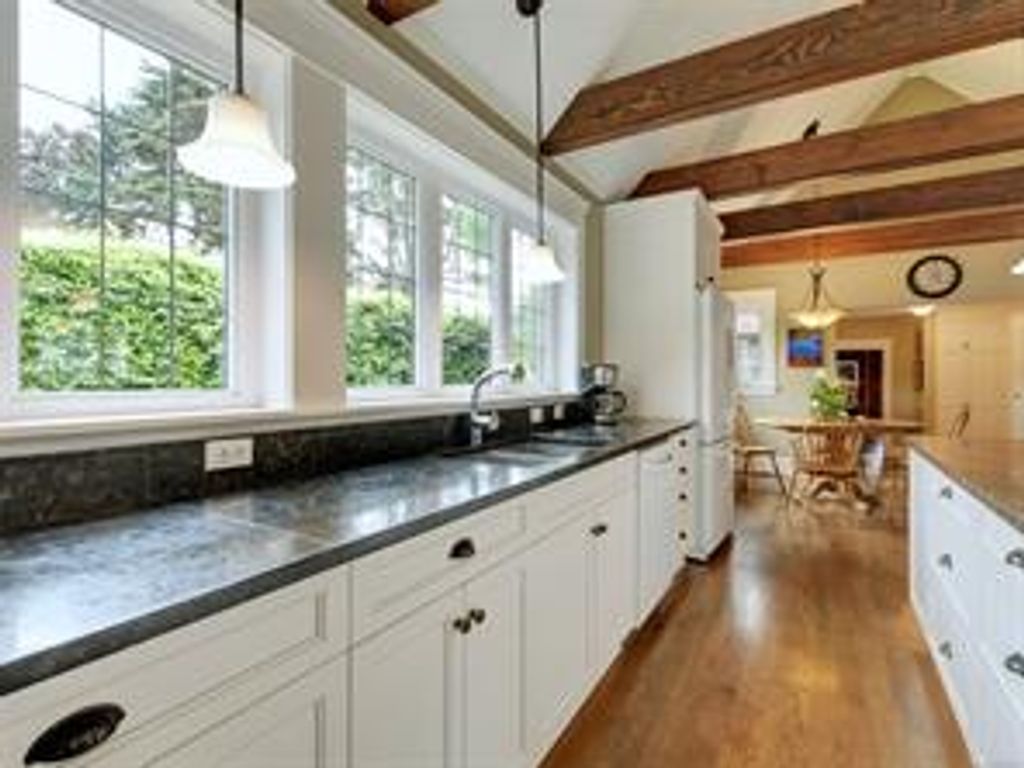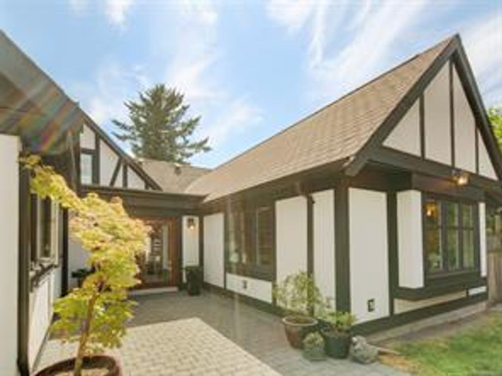 An inviting, thoughtfully renovated, Tudor home awaits you at September Cottage – in desirable Cadboro Bay. This warm, elegant, well maintained, MOVE IN READY home features BRIGHT AND SPACIOUS WEST COAST KITCHEN/DINING ROOM & MAIN FLOOR PRINCIPAL BEDROOM RETREAT with ensuite. Living room showcases fir beams, high ceilings, wood burning FP in surrounds of nature and natural light. Spacious foyer, mudroom, laundry, powder room and large office/den with Murphy bed including gas FP complete the main floor. Upstairs, 2 bedrooms and a 3-piece bath provide space and privacy for teens/guests. Renovated in 2010 to extend the main floor, September Cottage includes: custom cabinetry/ blinds, wood & tile floors throughout; updates to 200 amp electrical service, plumbing, heat pump, natural gas furnace and perimeter drains. Property is level with south facing mature park/garden in front, quiet/private patio/courtyard in middle and detached double garage [with add'l 2 parking] in back.