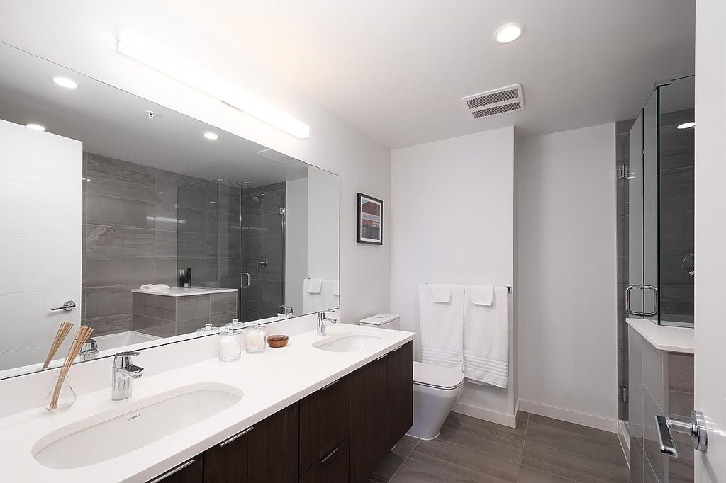 NOT YOUR TYPICAL CONDO! This 2 BED, 2 FULL BATH + open DEN at the SPOT is the home you've always dreamed of. Situated on the quiet side of the building and completely renovated this open layout home features stunning hardwood floors throughout, a new chefs dream kitchen with large pantry & Wolf gas range, new blinds...the list goes on. Additional features include floor-to-ceiling windows, balcony, Air conditioning, in-suite laundry, 1 parking stall & 1 storage locker. Steps to Canada Line, shops, cafes, groceries, plus easy access to downtown. This extremely well maintained building features concierge, a roof top deck to enjoy forever stunning views of downtown. This home is a must see!