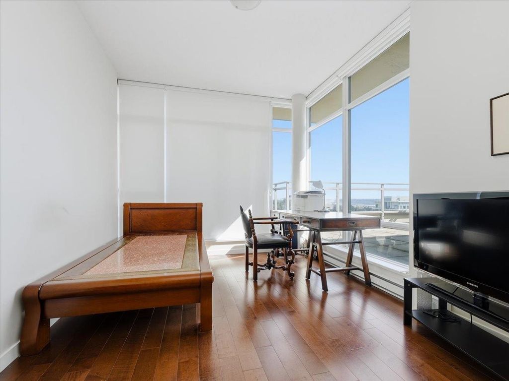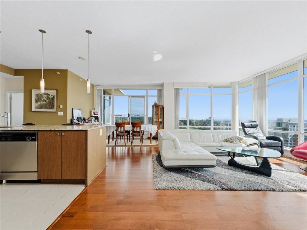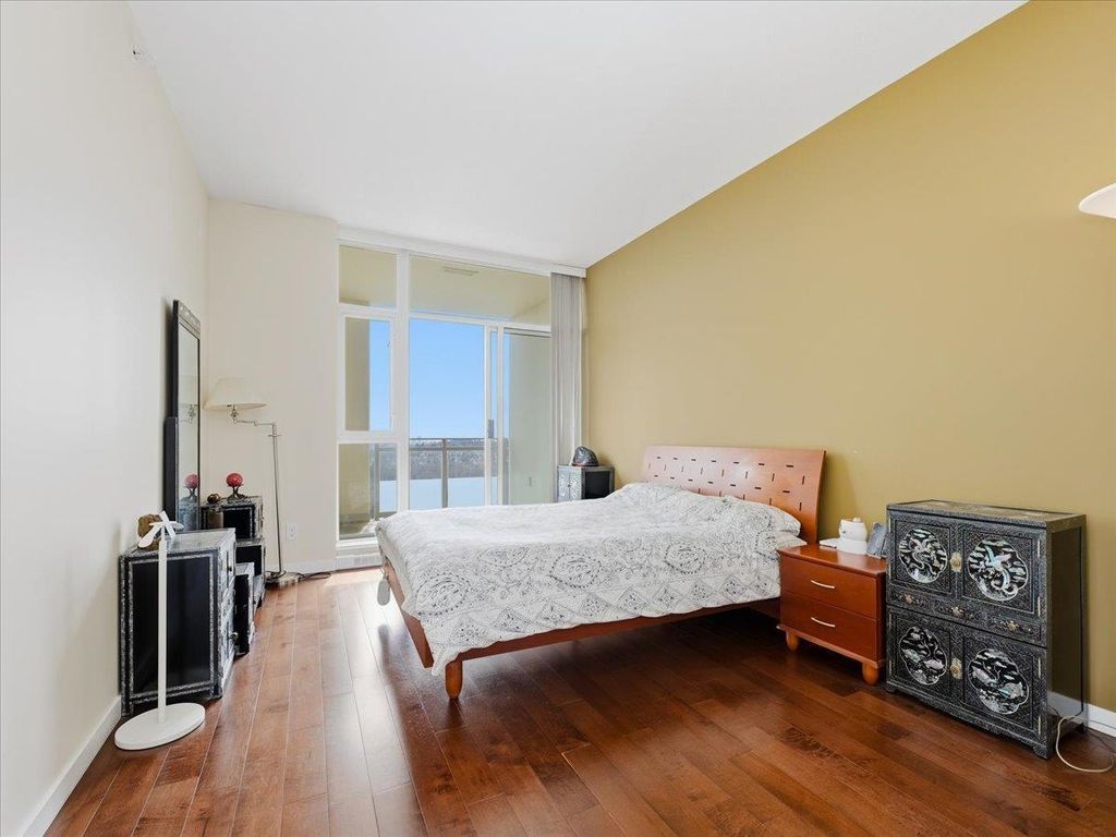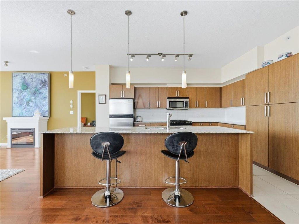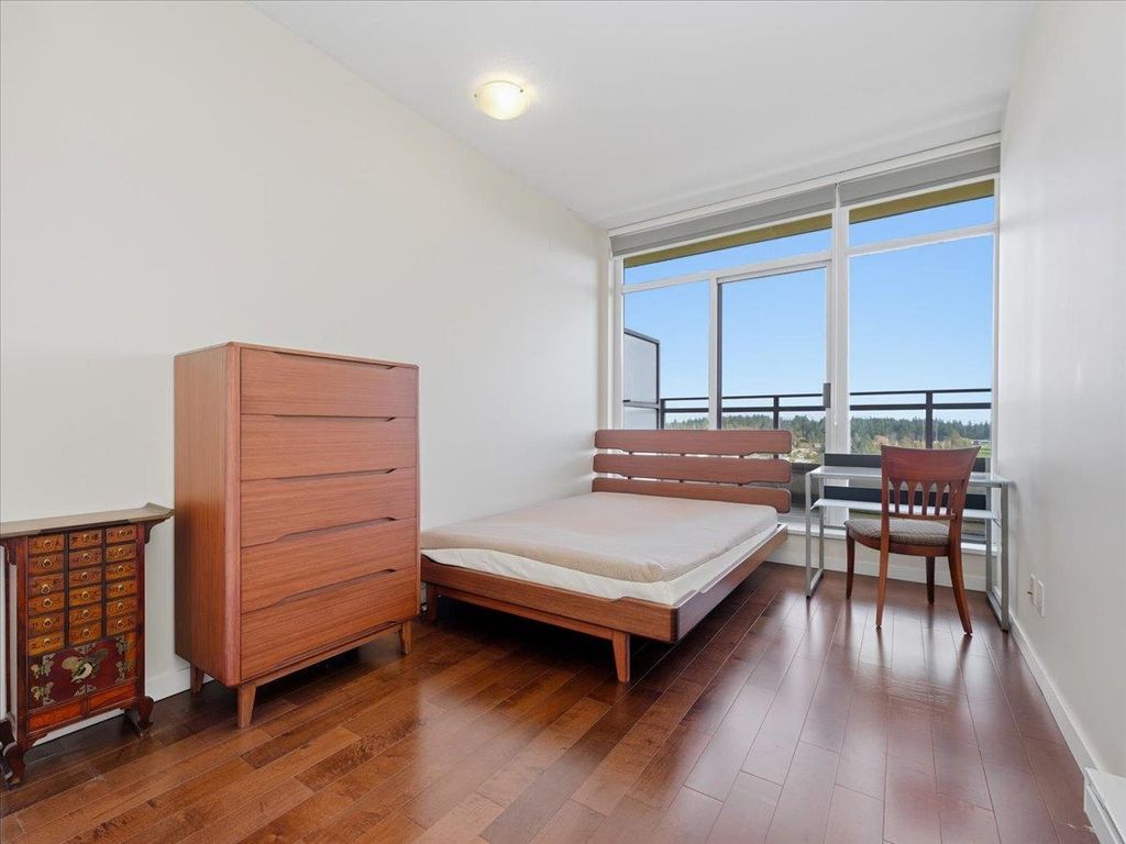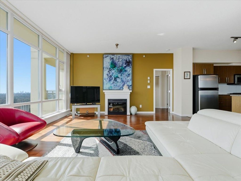 An exceptional 1,544 sqft open-concept penthouse that defines elevated living. Designed with remarkable scale and presence, this residence showcases a seamless, expansive layout enhanced by soaring ceilings and abundant natural light. Commanding breathtaking, unobstructed southeast panoramic views of Mount Baker and the river, it delivers a truly iconic outlook from every angle. Elegant hardwood flooring runs throughout, complemented by a refined gourmet kitchen with stainless steel appliances and granite countertops. A generous garden-style balcony extends the living space, while each bedroom features its own private balcony access. Includes two side-by-side parking stalls and a storage lockers. Steps to SkyTrain, Lougheed Mall, and every amenities.