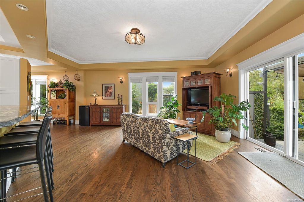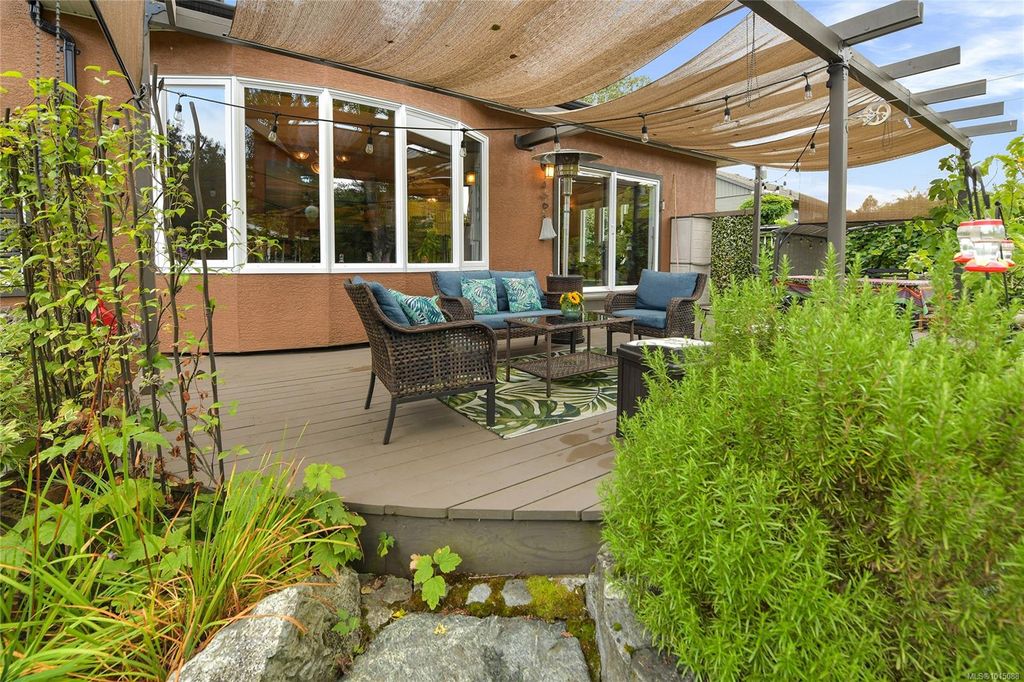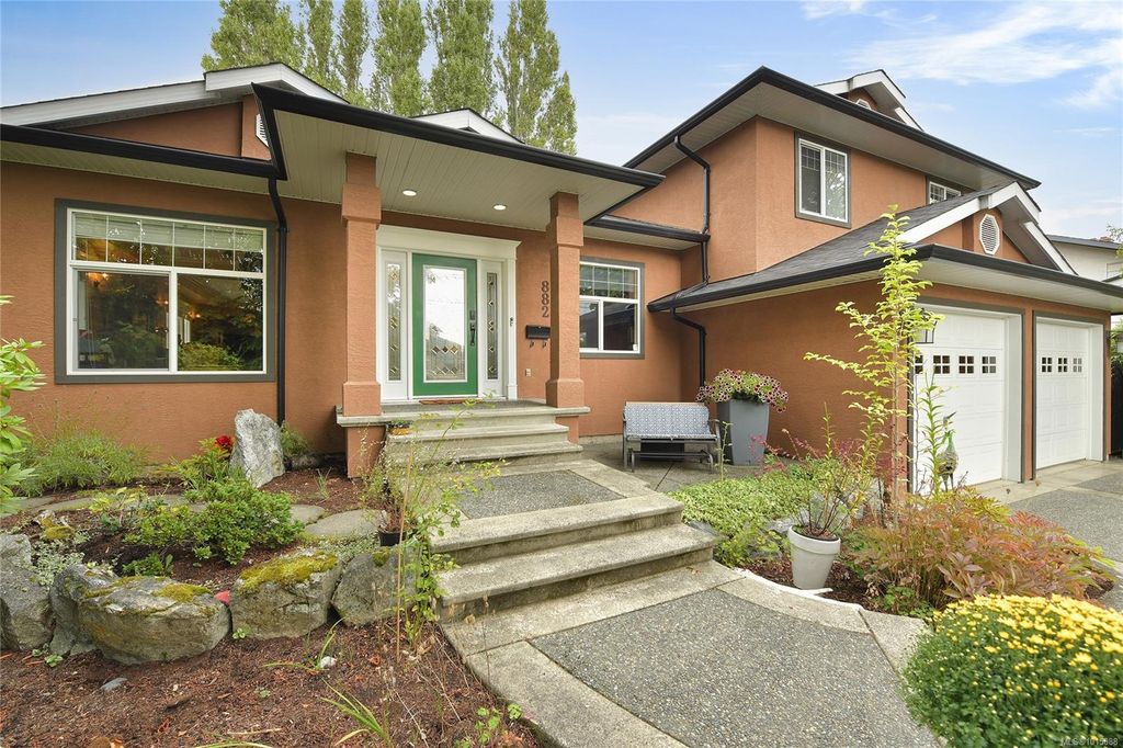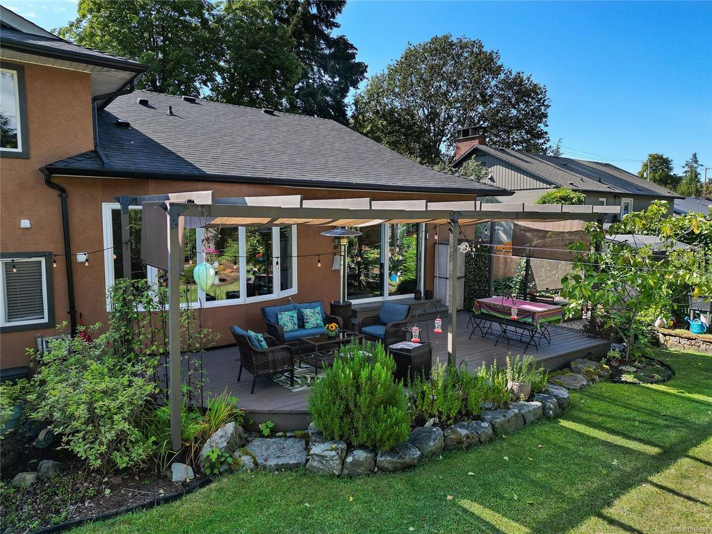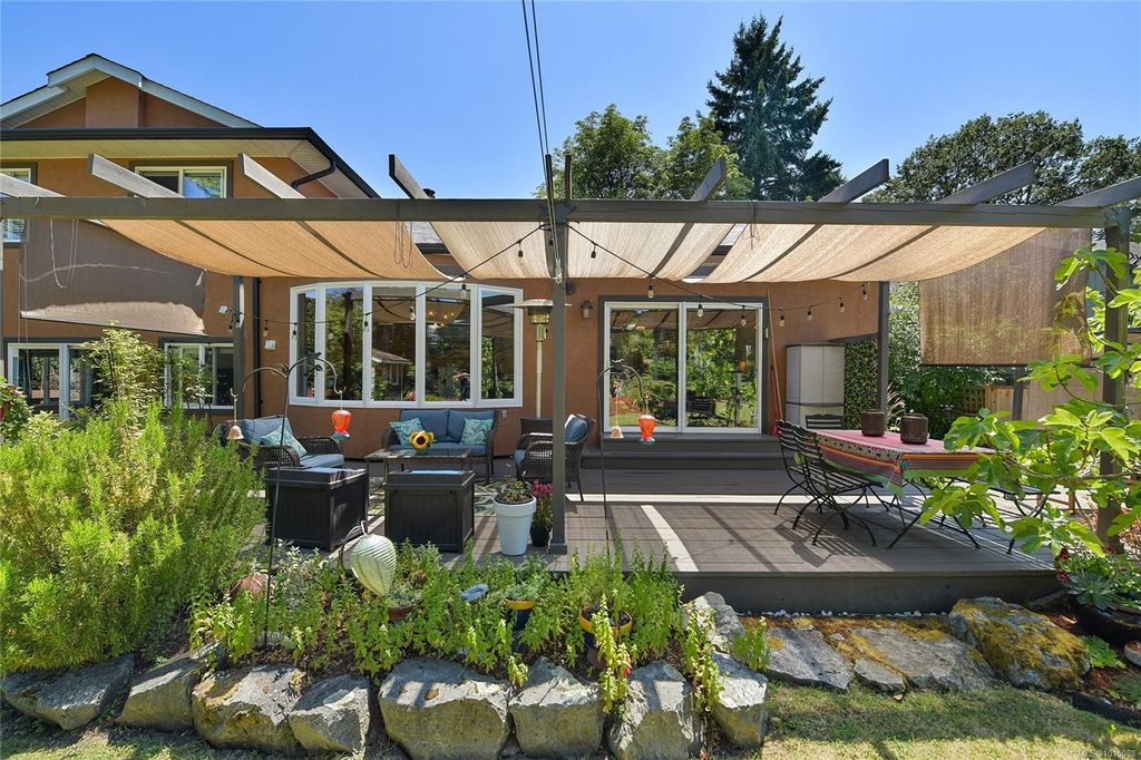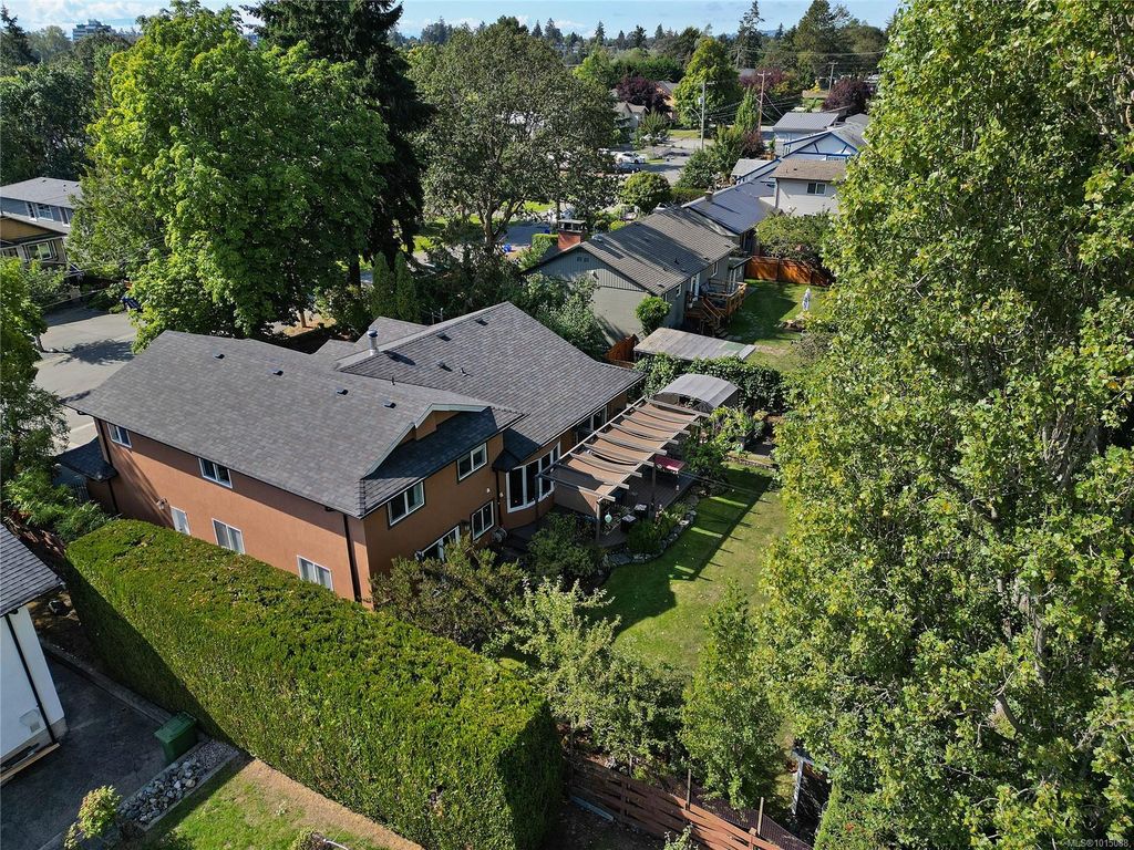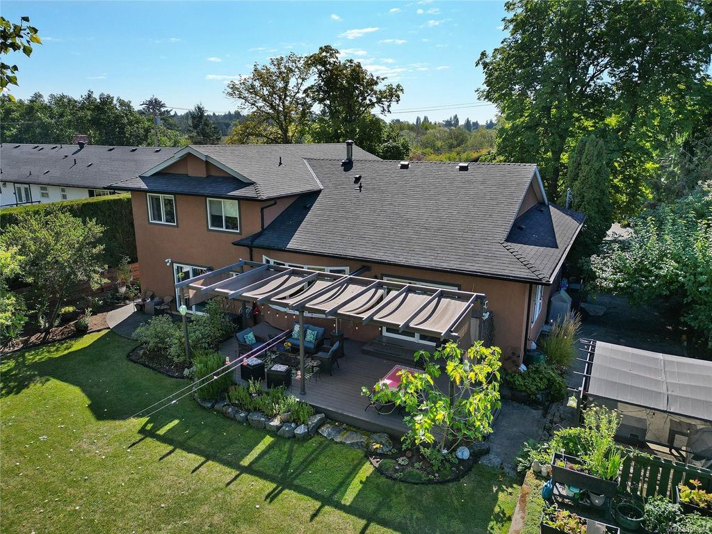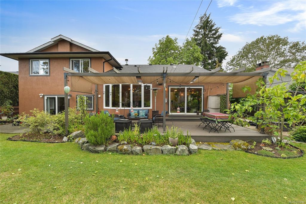 This special property is located at the end of a quiet no-through street adjacent to tranquil Swan Lake Nature Sanctuary. With nearly 2,800 square feet of living space boasting an open-concept main floor with 2 sitting rooms, home office, living room, dining, and thoughtfully designed kitchen with quartz countertops, breakfast bar and an array of cabinets equipped with wall oven, warming drawer and refrigerator. Wood floors throughout the main. The oversized deck seamlessly extends living space outdoors with pergola and a peaceful view of the landscaped yard including garden areas and storage shed. FOUR bedrooms located up including primary suite with ensuite as well as a lower level for additional storage. Also featured is a ground-level one-bedroom suite ideal for a nanny, in-laws, teenagers, or extended family. Conveniently situated, providing easy access to the Peninsula, Westshore, downtown Victoria and close to shopping, parks, and the Galloping Goose Trail.